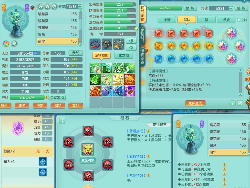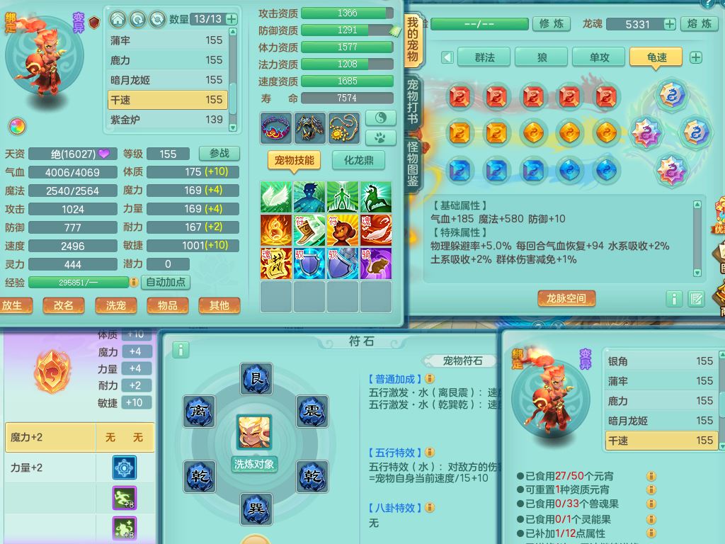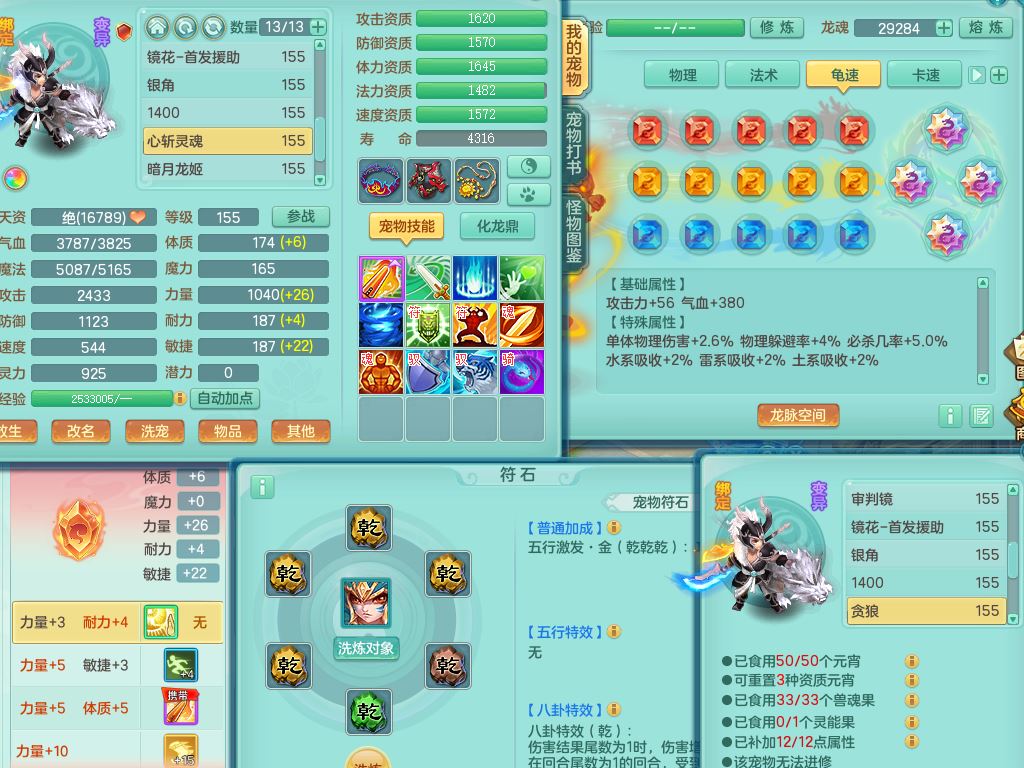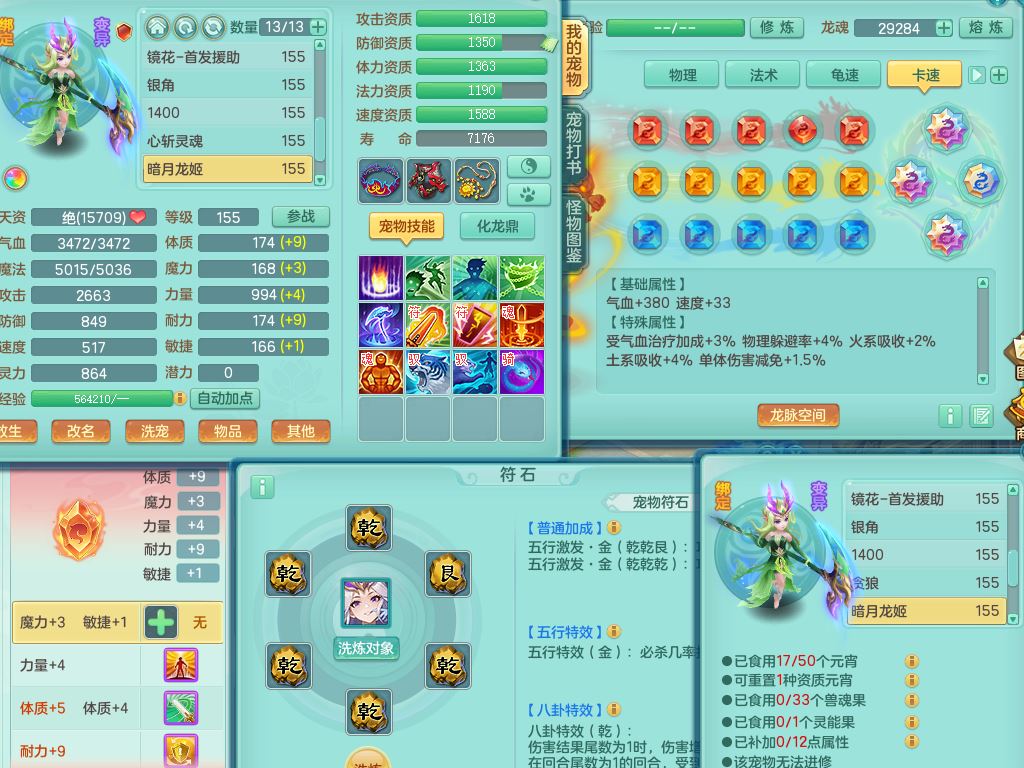 xa10064笑傲江湖159男万兽【潜龙号】精灵歌,2内1皮1特殊(月光兽决),4镜花灵1龙姬,10只满果子8觉醒7个纯6字,917单加Y武器,崩山衣服,鼎5.5+70+280,125天月卡,37内丹碎片,万兽精灵舞,1内丹青蛇(破境)3镜花灵1龙姬,满攻单加Y绝幻武器,崩山衣服,愤怒四海腰带,单加迅捷鞋,鼎5.0+280,159佛门精灵舞,1内丹龙马2特殊(破碎/雷光兽决)9觉醒,4镜花灵1龙姬,单加回春武器,迅捷Y鞋,鼎5.5,方寸精灵舞,1内(破境)特殊(双星)封印头,愤怒双红腰带,8觉醒,3镜花灵1龙姬