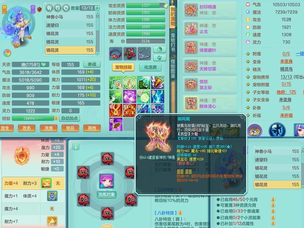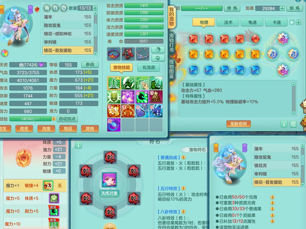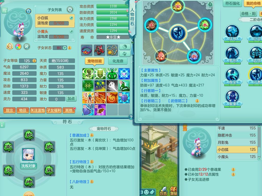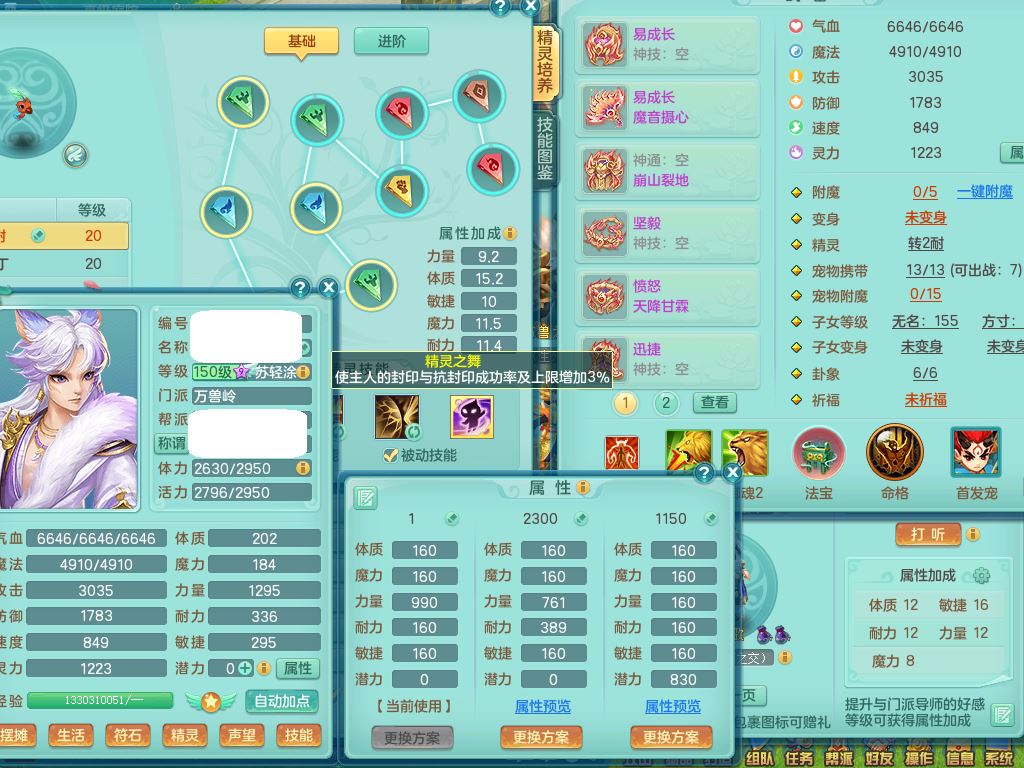 xa10064笑傲江湖159男万兽【潜龙号】精灵歌,2内1皮1特殊(月光兽决),4镜花灵1龙姬,10只满果子8觉醒7个纯6字,917单加Y武器,崩山衣服,鼎5.5+70+280,125天月卡,37内丹碎片,万兽精灵舞,1内丹青蛇(破境)3镜花灵1龙姬,满攻单加Y绝幻武器,崩山衣服,愤怒四海腰带,单加迅捷鞋,鼎5.0+280,159佛门精灵舞,1内丹龙马2特殊(破碎/雷光兽决)9觉醒,4镜花灵1龙姬,单加回春武器,迅捷Y鞋,鼎5.5,方寸精灵舞,1内(破境)特殊(双星)封印头,愤怒双红腰带,8觉醒,3镜花灵1龙姬