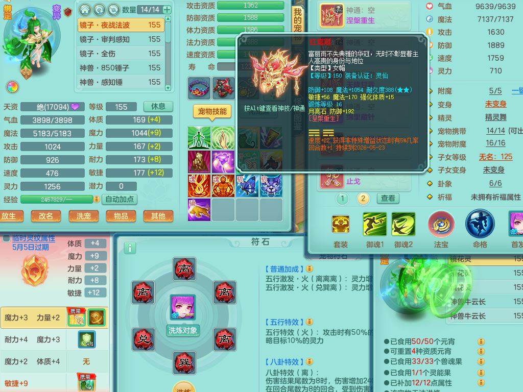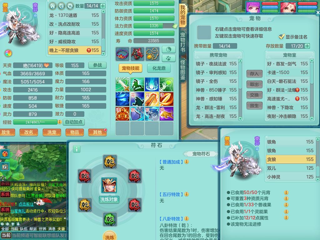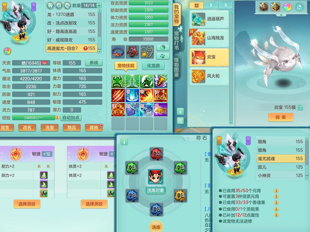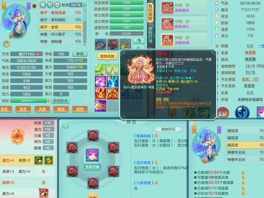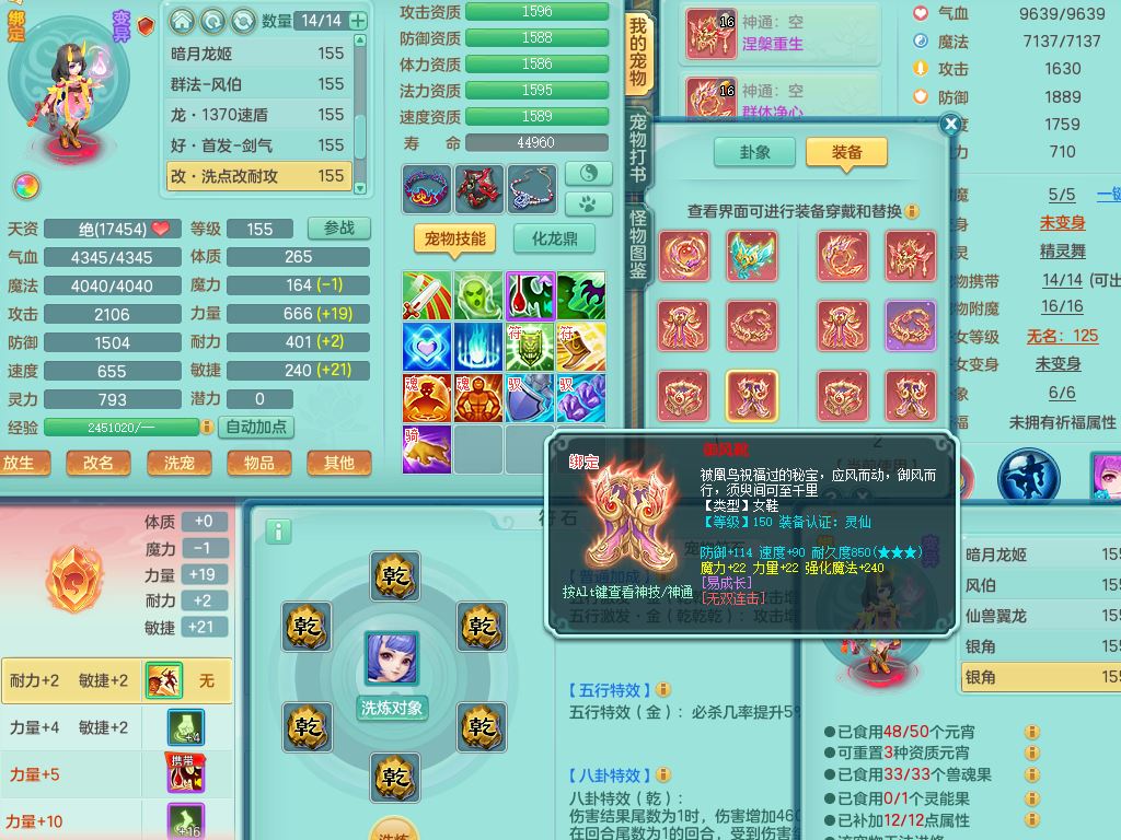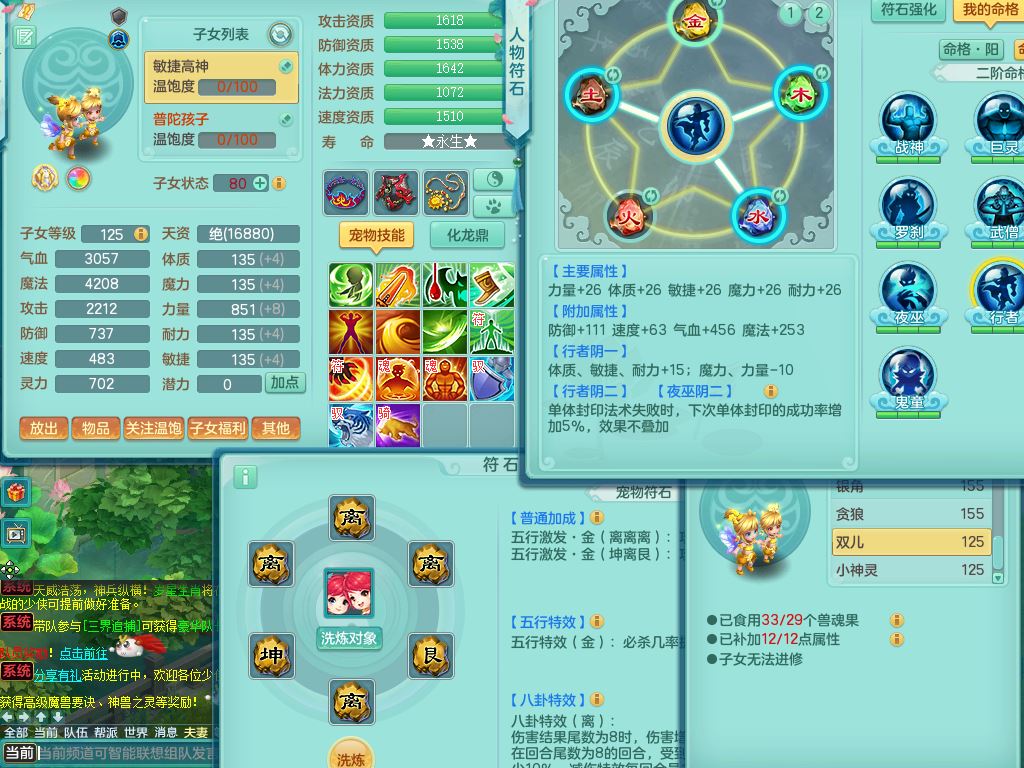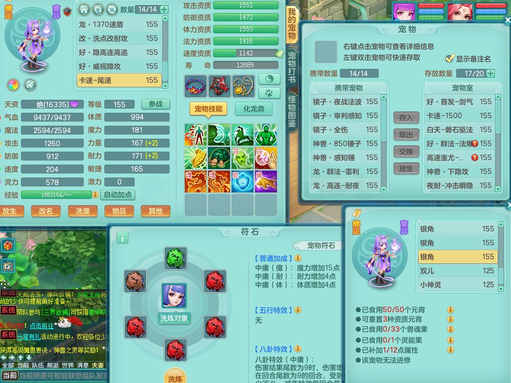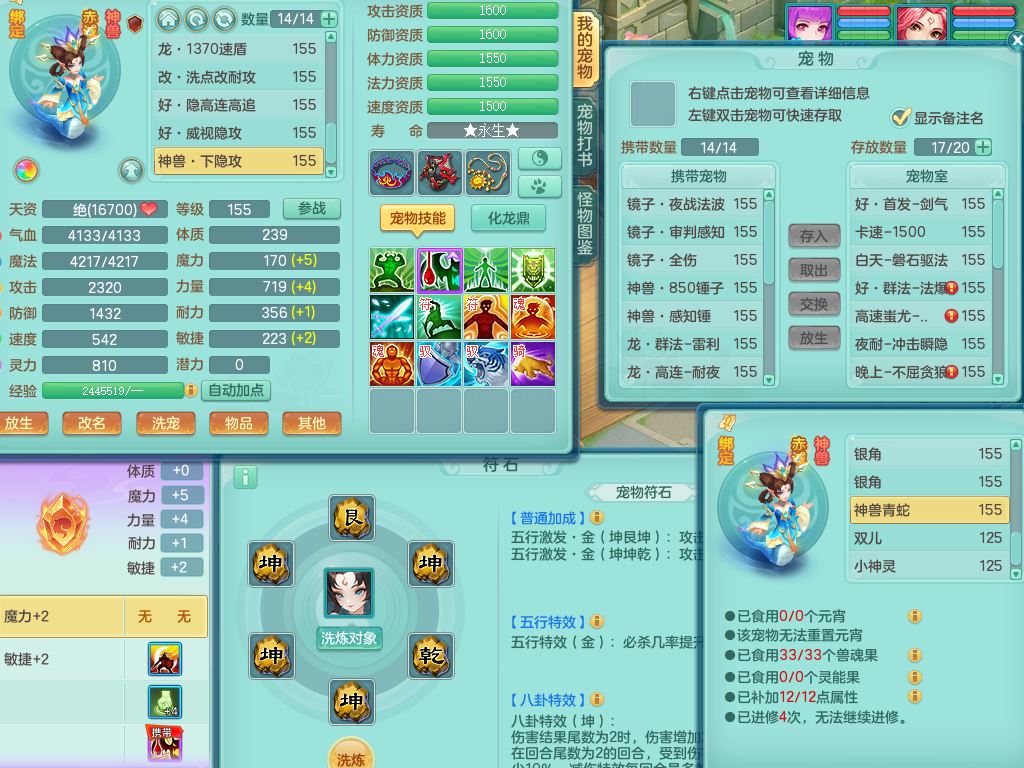 jn10079今年勇159女天魔【潜龙号】精灵舞,2内丹龙1龙(换,无内)3内(1青蛇)特殊(墨守)4镜花灵1龙姬,18只满果子9觉醒7个纯6字,愤怒5特,单加愤怒Y腰带,鼎5.5+70+280,永久外观精灵皮肤,823W神武币,宠排在榜,3坐骑(1只双人)
