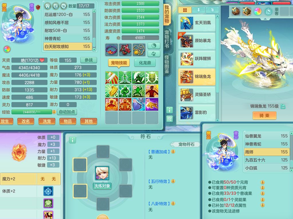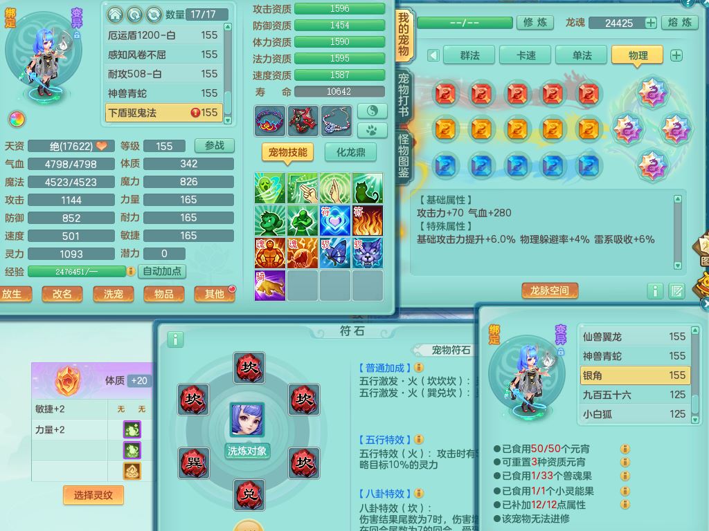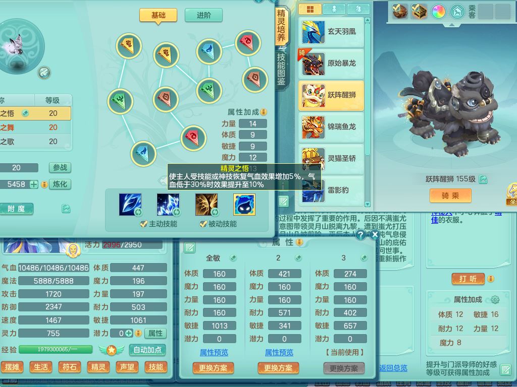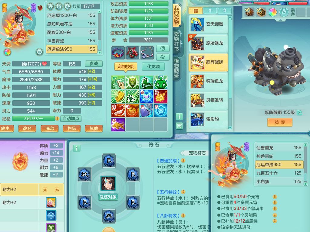 lt10080龙腾九州159女五庄【潜龙号+暴龙逍客+西瓜冰】精灵歌+舞+悟,2套星穹,3内丹龙(换)3内丹神9皮,4特殊(风卷/雷厉/烈焰/琴音兽决)6镜花灵1龙姬,17格子27只满果子17觉醒14个纯6字,11红,愤怒6特,Y晶清头,Y慈航武器,愤怒Y3红腰带,Y野兽鞋,法系星辰之拥,法爆慈航武器,法缭水清鞋,274单加Y项链,鼎6.0+70+280,冰晶庭院233房屋173,永久外观精灵皮肤,900W神武币,宠排在榜,7坐骑(5只双人)