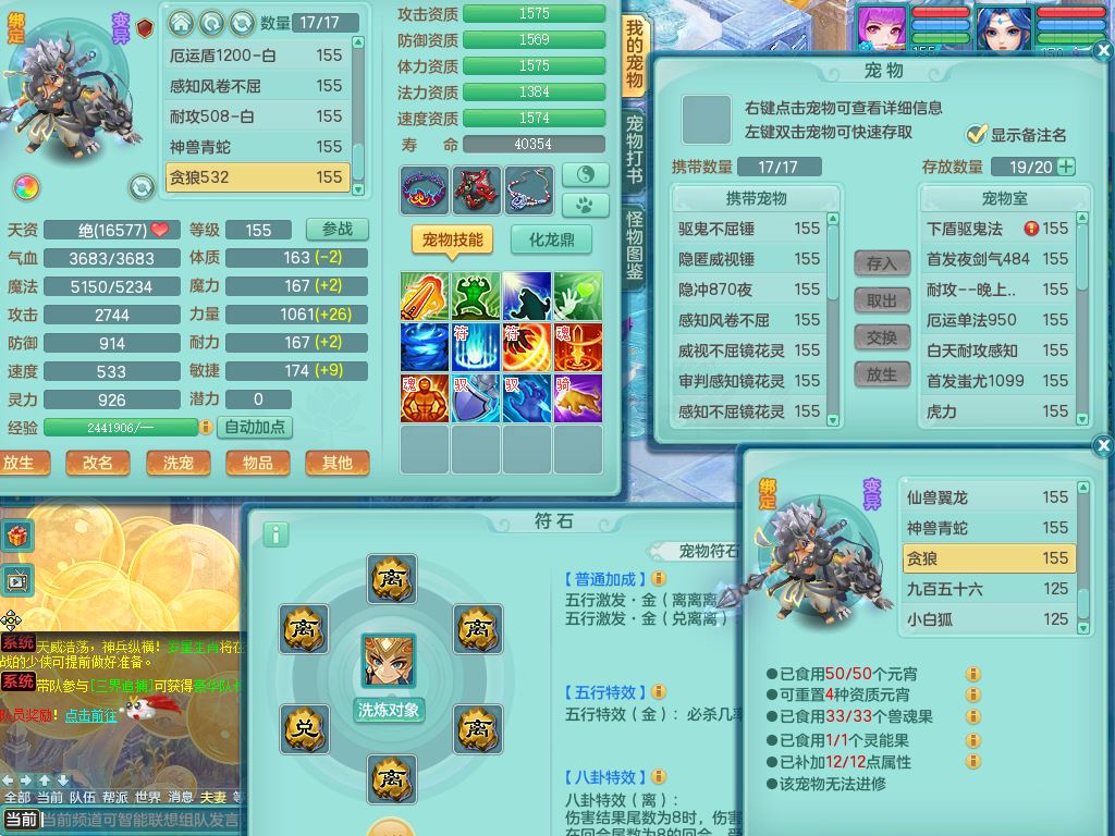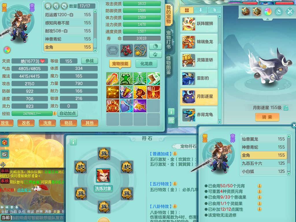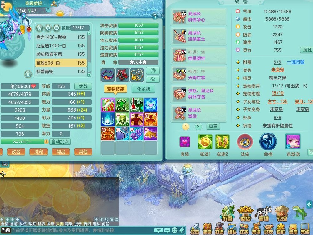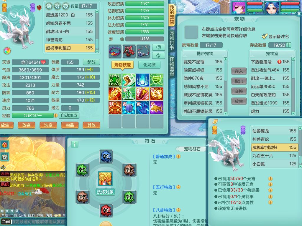 lt10080龙腾九州159女五庄【潜龙号+暴龙逍客+西瓜冰】精灵歌+舞+悟,2套星穹,3内丹龙(换)3内丹神9皮,4特殊(风卷/雷厉/烈焰/琴音兽决)6镜花灵1龙姬,17格子27只满果子17觉醒14个纯6字,11红,愤怒6特,Y晶清头,Y慈航武器,愤怒Y3红腰带,Y野兽鞋,法系星辰之拥,法爆慈航武器,法缭水清鞋,274单加Y项链,鼎6.0+70+280,冰晶庭院233房屋173,永久外观精灵皮肤,900W神武币,宠排在榜,7坐骑(5只双人)