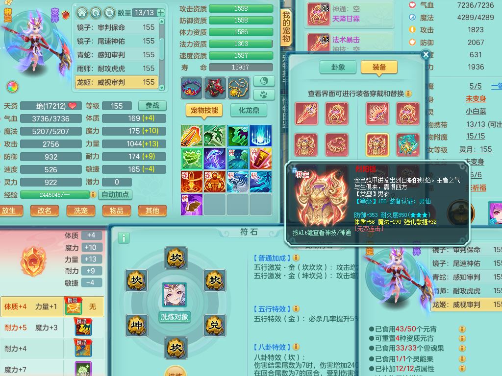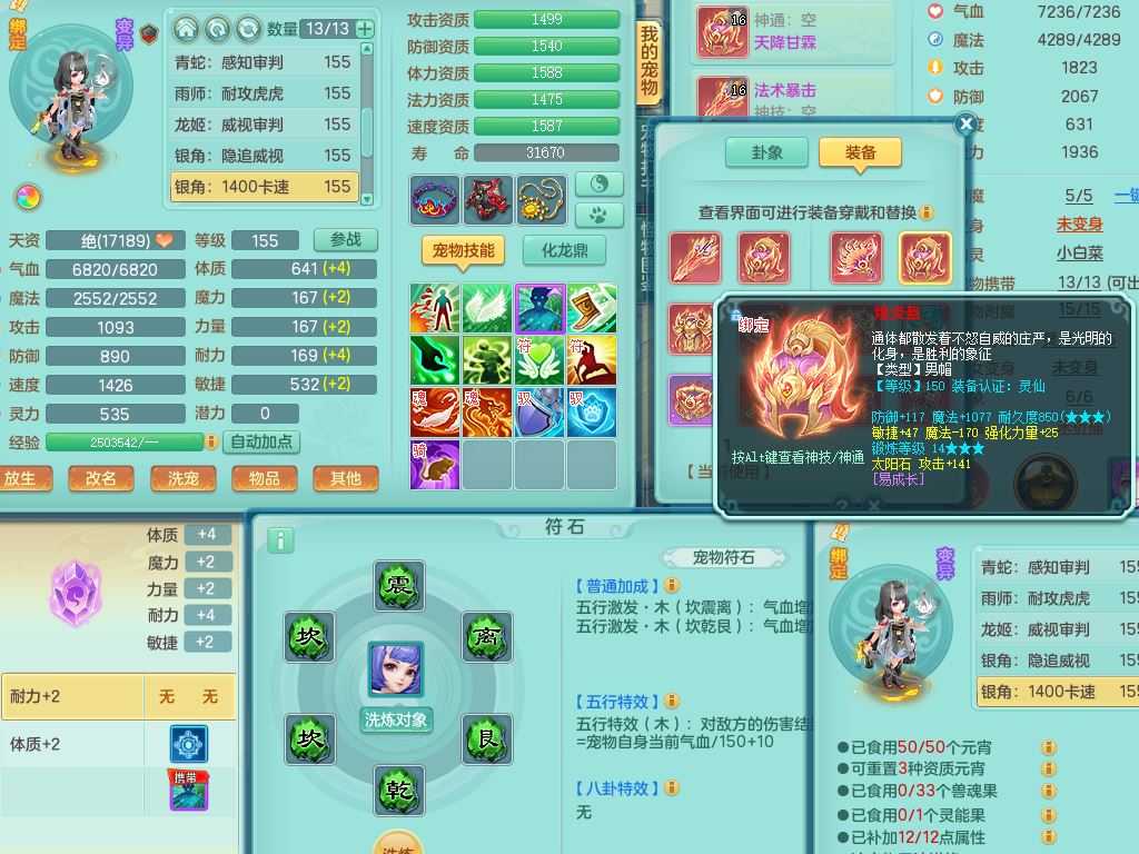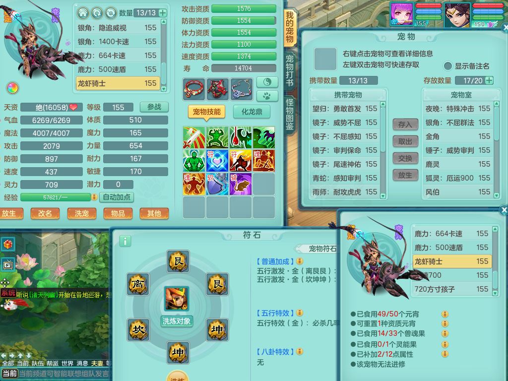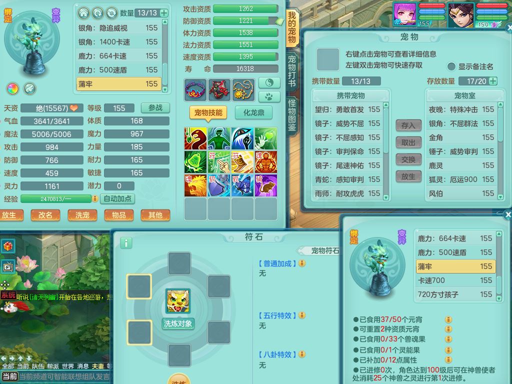 tx10083天下无双159男龙宫【暴龙洪荒+西瓜冰】精灵舞,1内丹青蛇1皮,4特殊(虎虎/守护/荒古/登云兽决)4镜花灵2龙姬,全身单加,法爆武器,Y衣服,269Y项链,五雷腰带,法缭鞋,8觉醒 7个6字 小符石差1条 鼎3.0+70+280,106天月卡,永久外观精灵皮肤,2748金币,23内丹碎片,2只双人坐骑,带150奶粉灵月