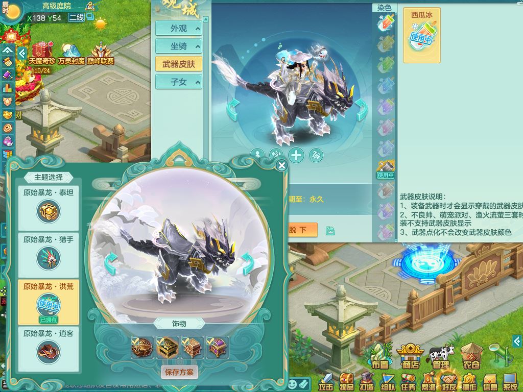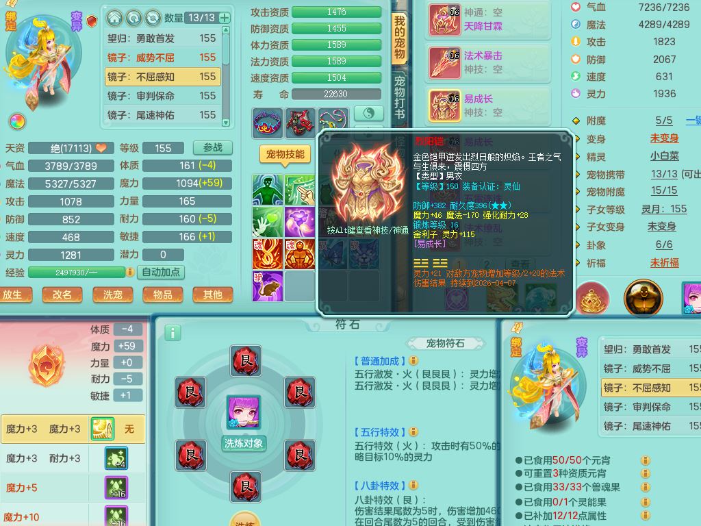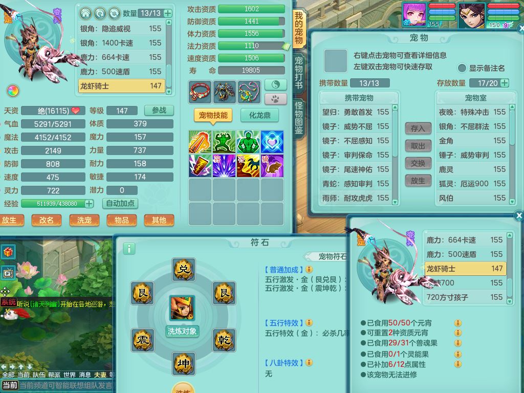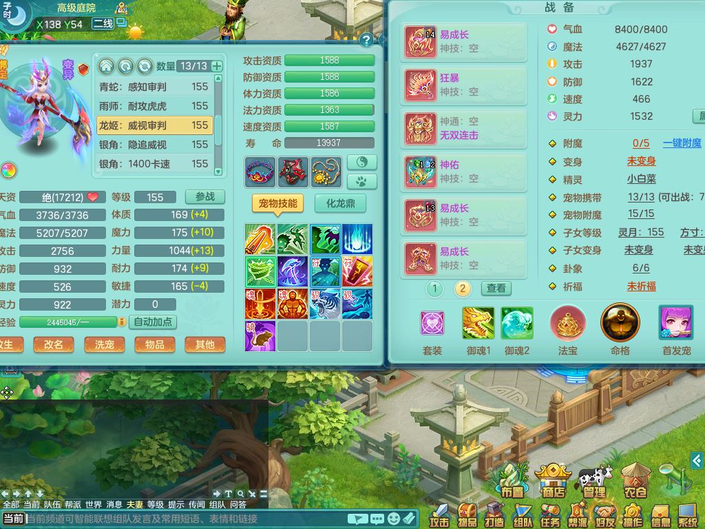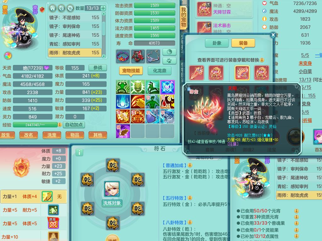tx10083天下无双159男龙宫【暴龙洪荒+西瓜冰】精灵舞,1内丹青蛇1皮,4特殊(虎虎/守护/荒古/登云兽决)4镜花灵2龙姬,全身单加,法爆武器,Y衣服,269Y项链,五雷腰带,法缭鞋,8觉醒 7个6字 小符石差1条 鼎3.0+70+280,106天月卡,永久外观精灵皮肤,2748金币,23内丹碎片,2只双人坐骑,带150奶粉灵月