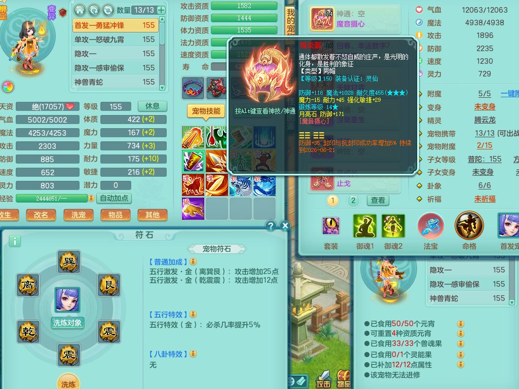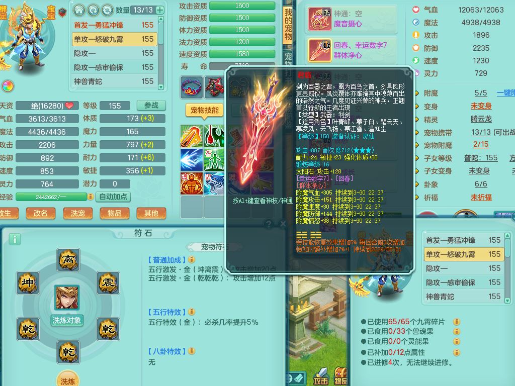 ym10093扬名立万159男佛门精灵舞,满级共鸣,3神兽(无内,1龙马1青蛇)2特殊(冲锋/灵傀兽决)1镜花灵1龙姬,综合5只满果子2觉醒4个4字1个6字,9红愤怒5特,幸运回春晶清武器,单加Y止戈鞋,鼎5.0,42仙兽灵,21内丹碎片,飞行烛龙坐骑