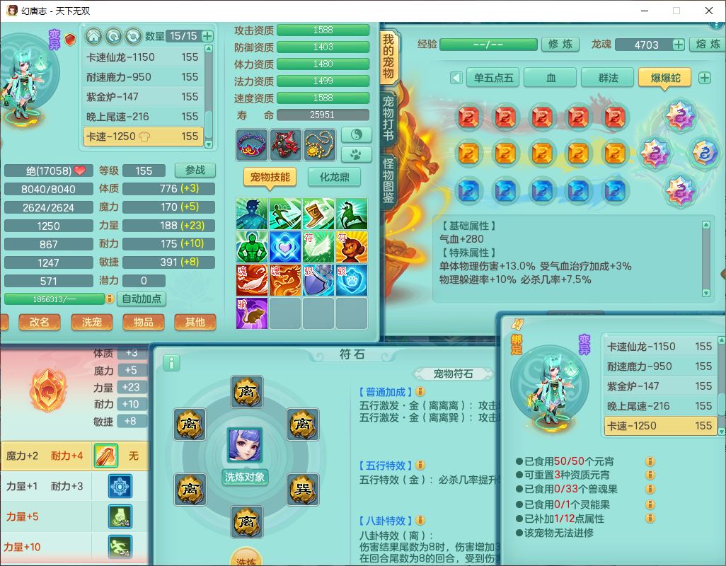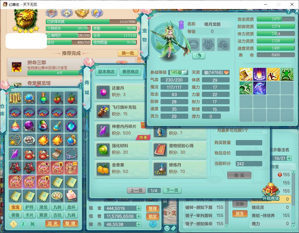 tx10097天下无双159男天魔【潜龙+心想事成+火焰之力+流光翎】精灵舞,2内丹龙4内(2青蛇)1望归2龙姬(1胚子)5镜花1金炉1特殊(逆龙),13觉醒1宠皮10六字1五字5四字16只满果子,8红装备,Y魔音帽子,928必杀破血武器,崩山衣服,破甲鞋子,有辅助装,鼎5.5+70+280,80天月卡,庭院154,永久外观、精灵皮肤,47个仙兽灵,1仙兽内丹,9个神兽内丹碎片,4.9W多金币,1双人飞行坐骑