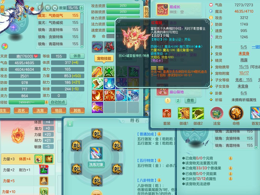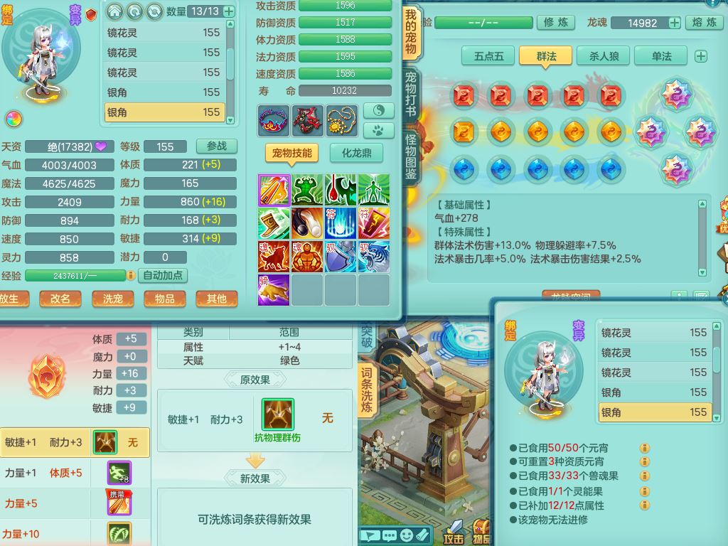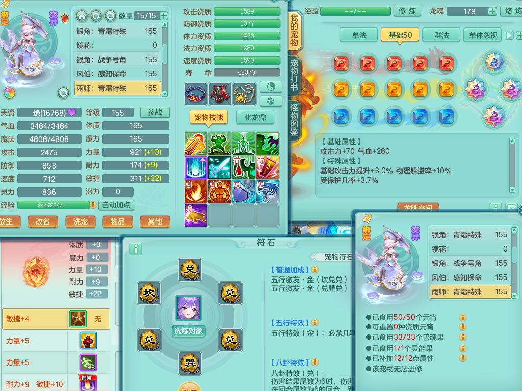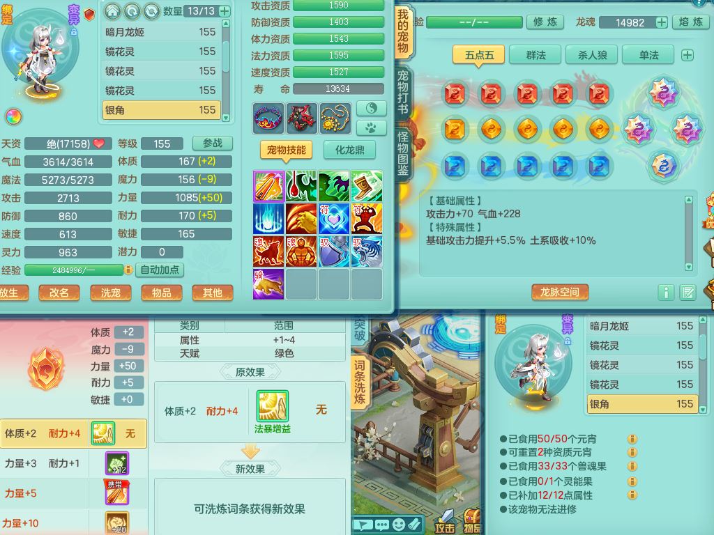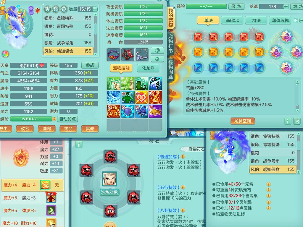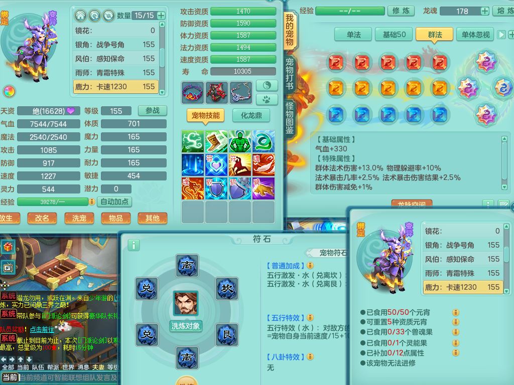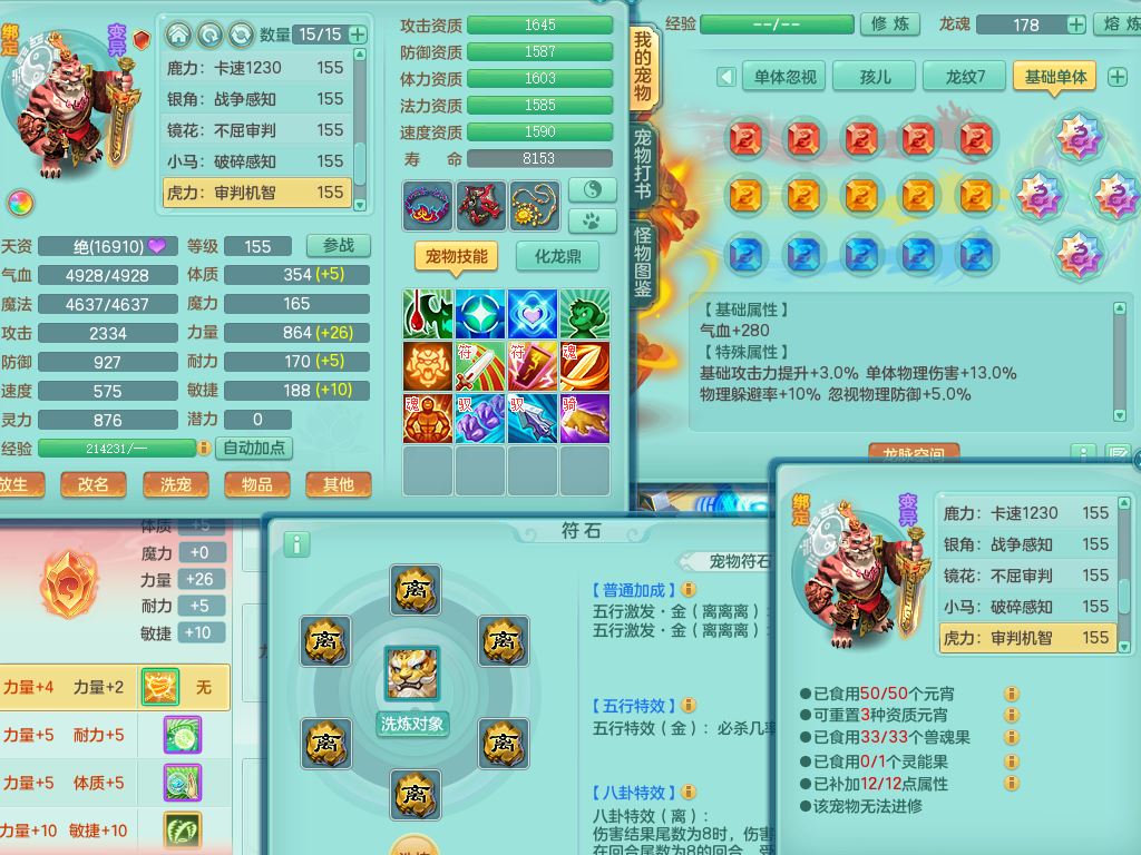 jx10117锦绣河山159双开号,万兽【准潜龙,只差1条符石,1条附加,混沌龙纹】精灵歌,1内丹龙(破境)2内丹神4皮,10特殊(流星/噬风/青霜*2/号角*2/舍身/双星/以战/禁锢兽决)综合17只满果子14觉醒8个纯6字,8红,928单加连击四海武器,以战衣服,幸运坚毅项链,崩山鞋,鼎3.0+70+280,76天月卡,庭院161房屋164,永久外观精灵皮肤,双人坐骑,地府【准潜龙,只差1宝宝2条附加,4颗血石头】精灵歌,1内丹青蛇(破境)1皮5特殊(虎虎/双星/怒破/号角/以战)3镜花灵1龙姬,综合9只满果子12觉醒,8红震怒6特,鼎5.5+70,33仙兽灵,双人坐骑