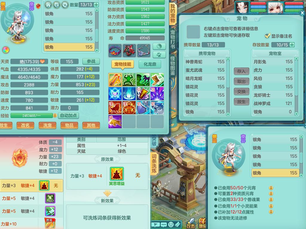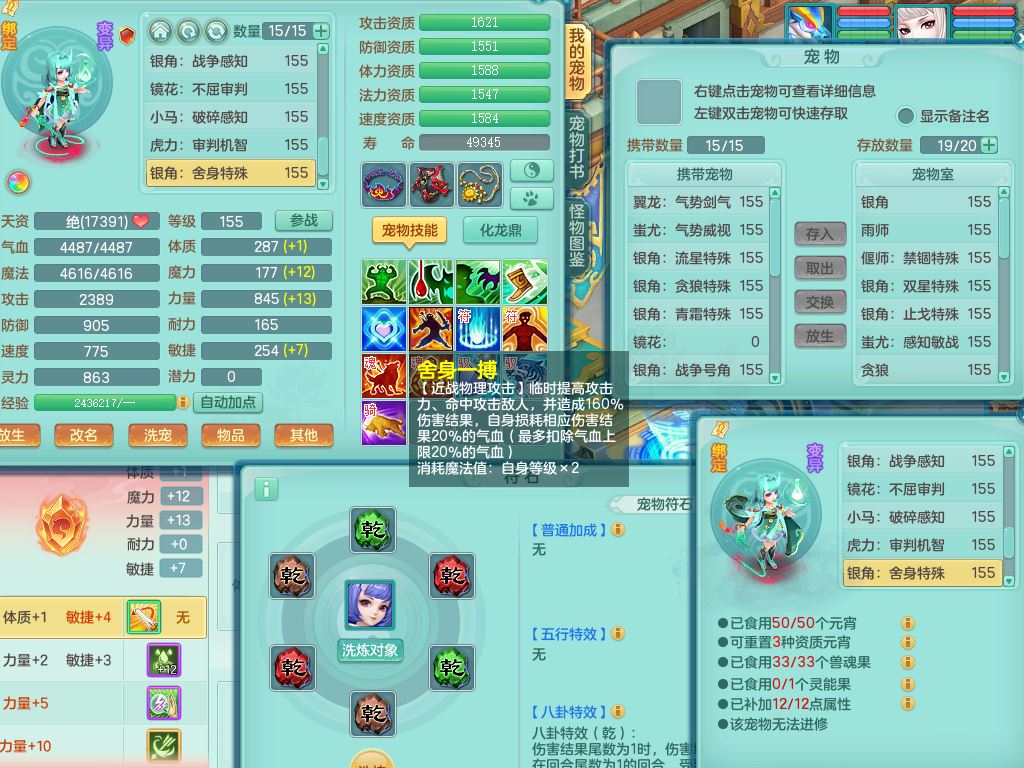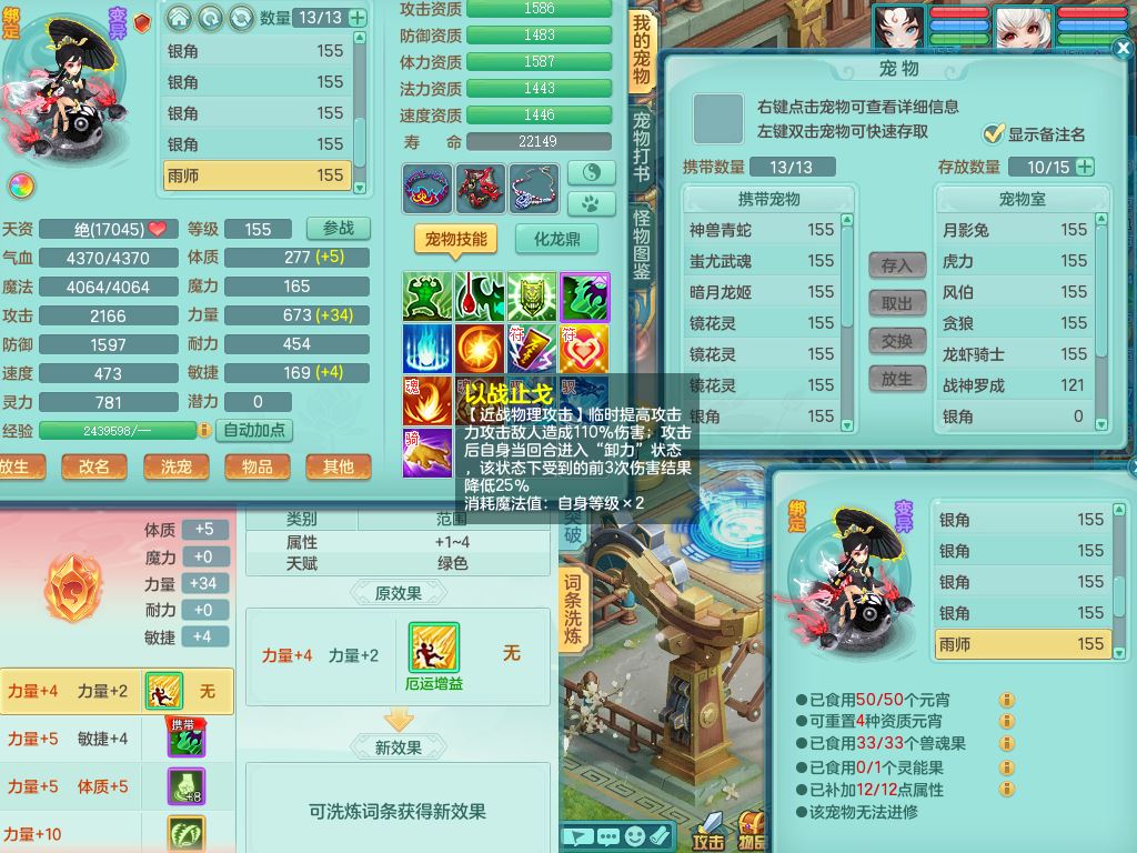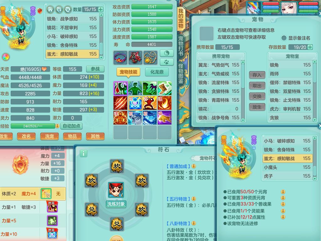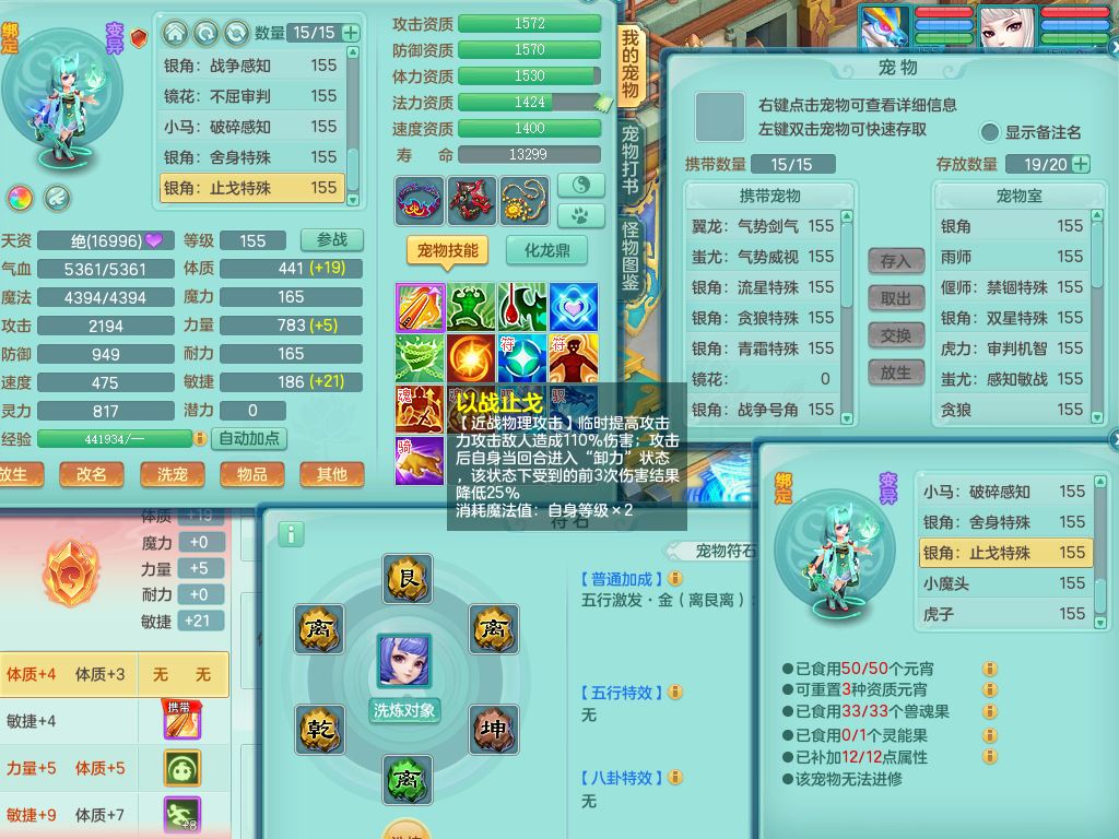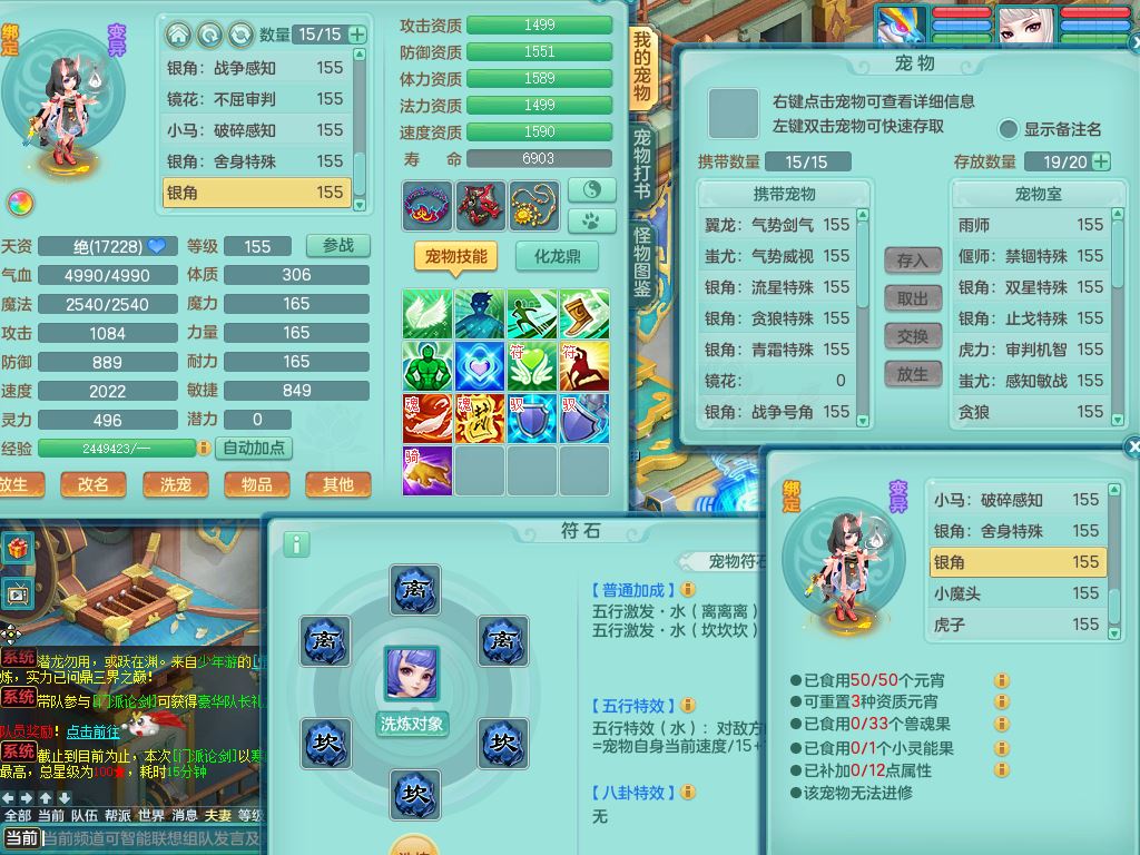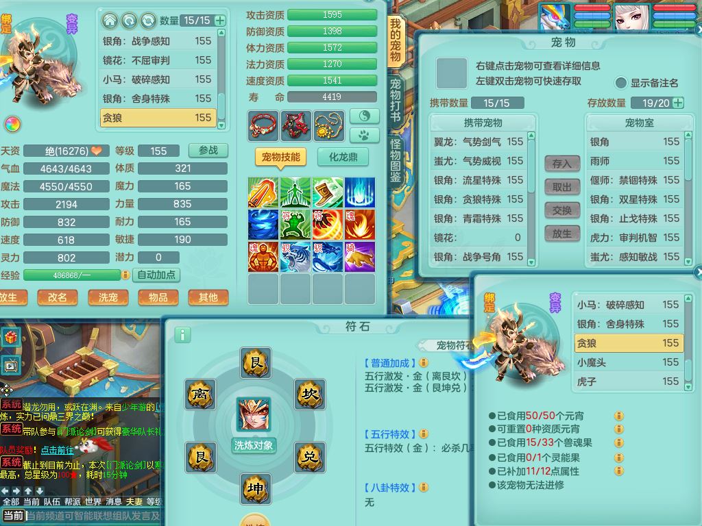 jx10117锦绣河山159双开号,万兽【准潜龙,只差1条符石,1条附加,混沌龙纹】精灵歌,1内丹龙(破境)2内丹神4皮,10特殊(流星/噬风/青霜*2/号角*2/舍身/双星/以战/禁锢兽决)综合17只满果子14觉醒8个纯6字,8红,928单加连击四海武器,以战衣服,幸运坚毅项链,崩山鞋,鼎3.0+70+280,76天月卡,庭院161房屋164,永久外观精灵皮肤,双人坐骑,地府【准潜龙,只差1宝宝2条附加,4颗血石头】精灵歌,1内丹青蛇(破境)1皮5特殊(虎虎/双星/怒破/号角/以战)3镜花灵1龙姬,综合9只满果子12觉醒,8红震怒6特,鼎5.5+70,33仙兽灵,双人坐骑