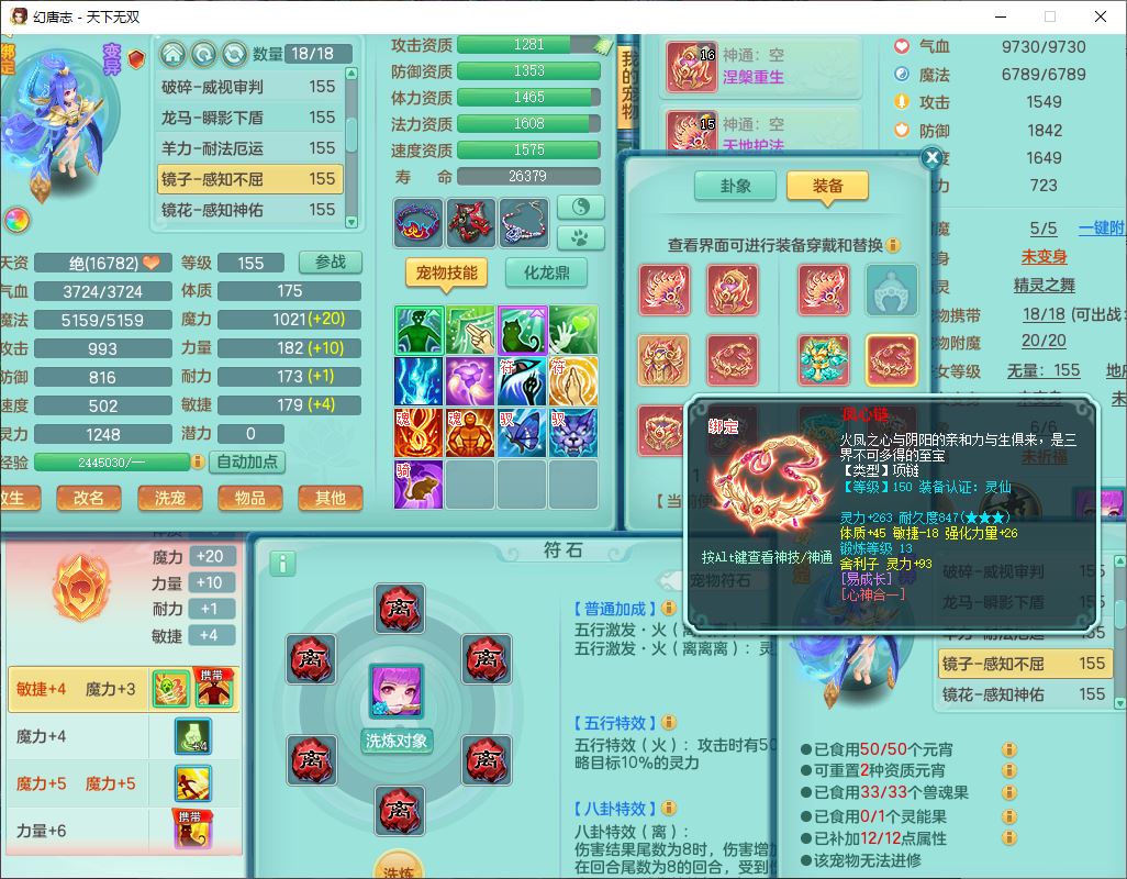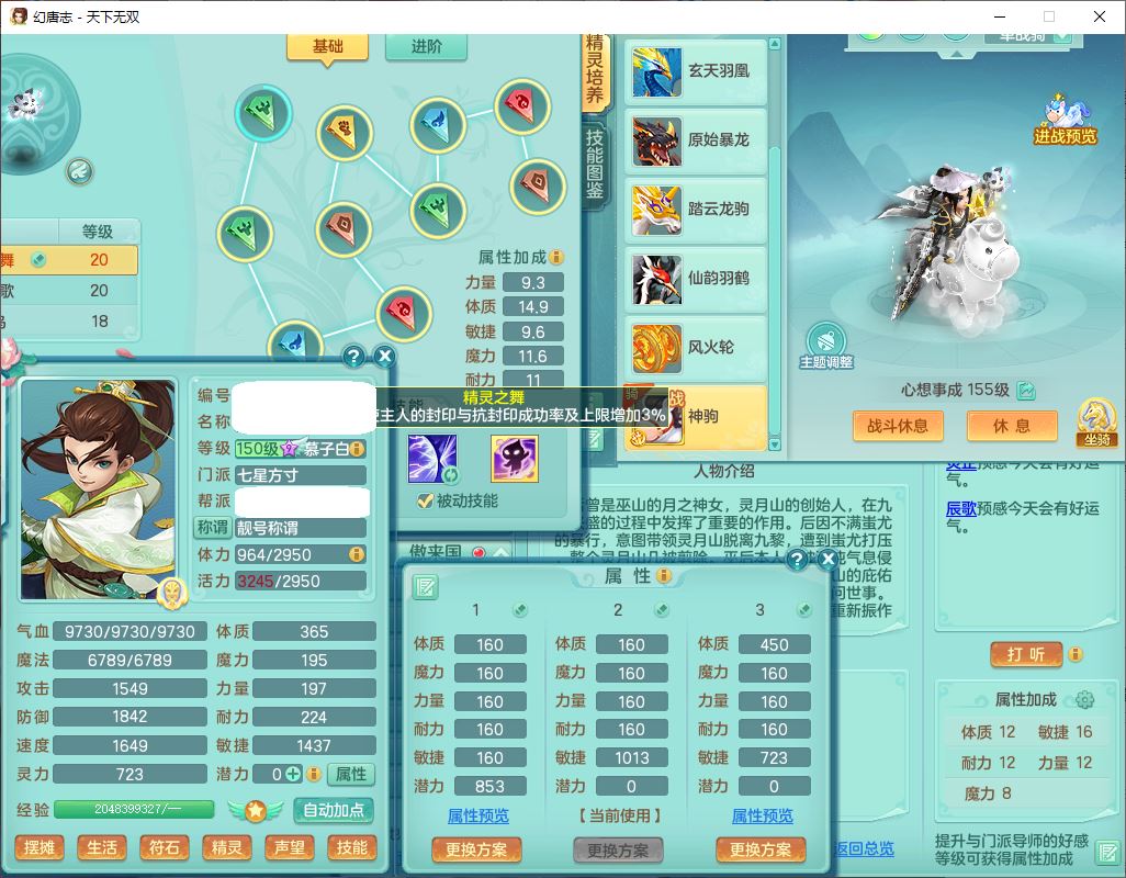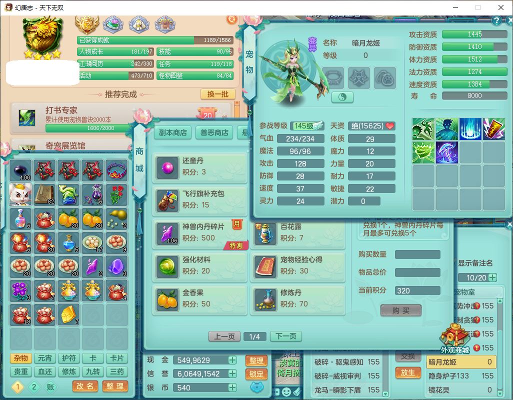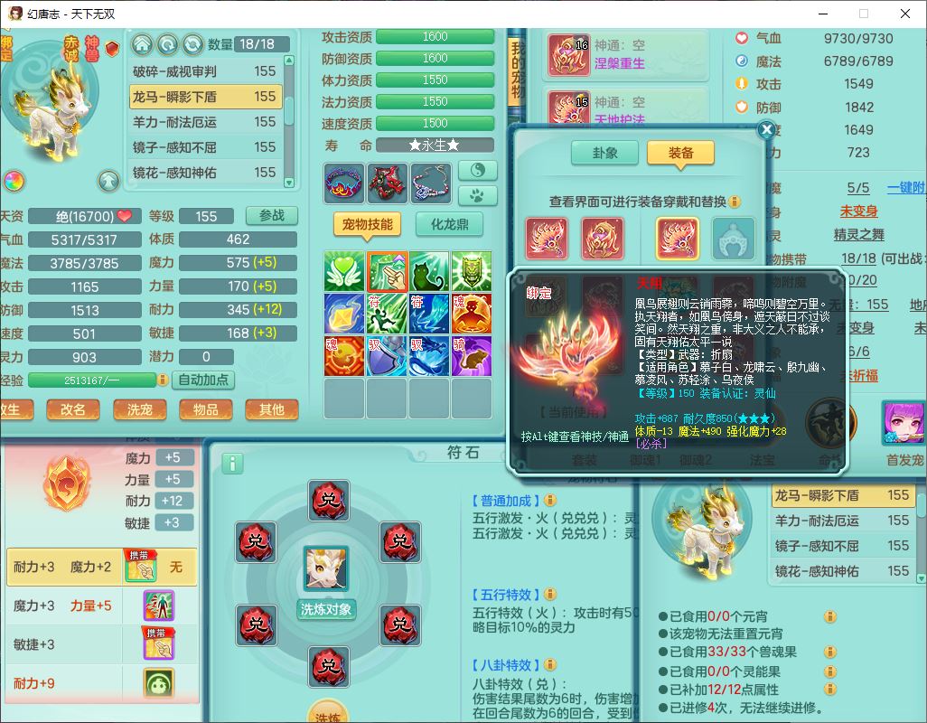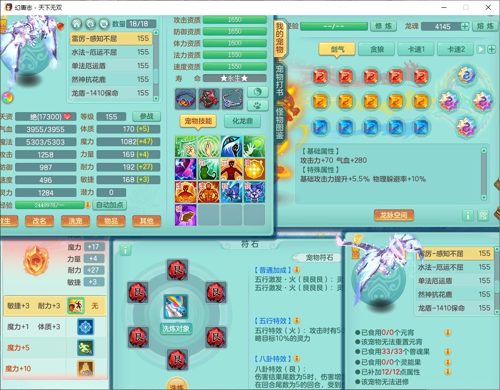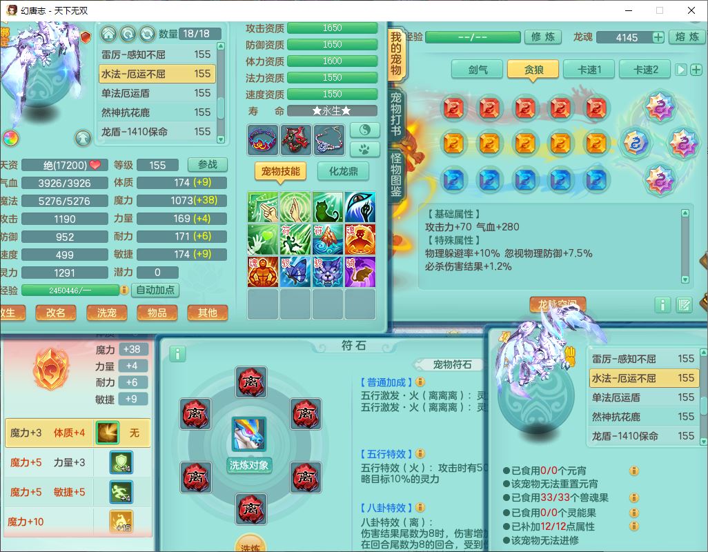 tx10125天下无双159男方寸【潜龙+心想事成+暴龙洪荒+火焰之力+西瓜冰+流光翎】精灵歌、舞,4位靓号,6内丹龙(2破境)3内(1青蛇1龙马)3镜花1龙姬胚子1望归2特殊(青霜,夺命兽决),14觉醒6宠皮18六字25只满果子,18格子,7红全单加装备,迅捷止戈鞋子,有法系装备,法爆武器,单加263Y心神项链,鼎5.5+70+280,177天月卡,冰晶庭院163房屋155,永久外观、精灵皮肤,7坐骑(2双人飞行)