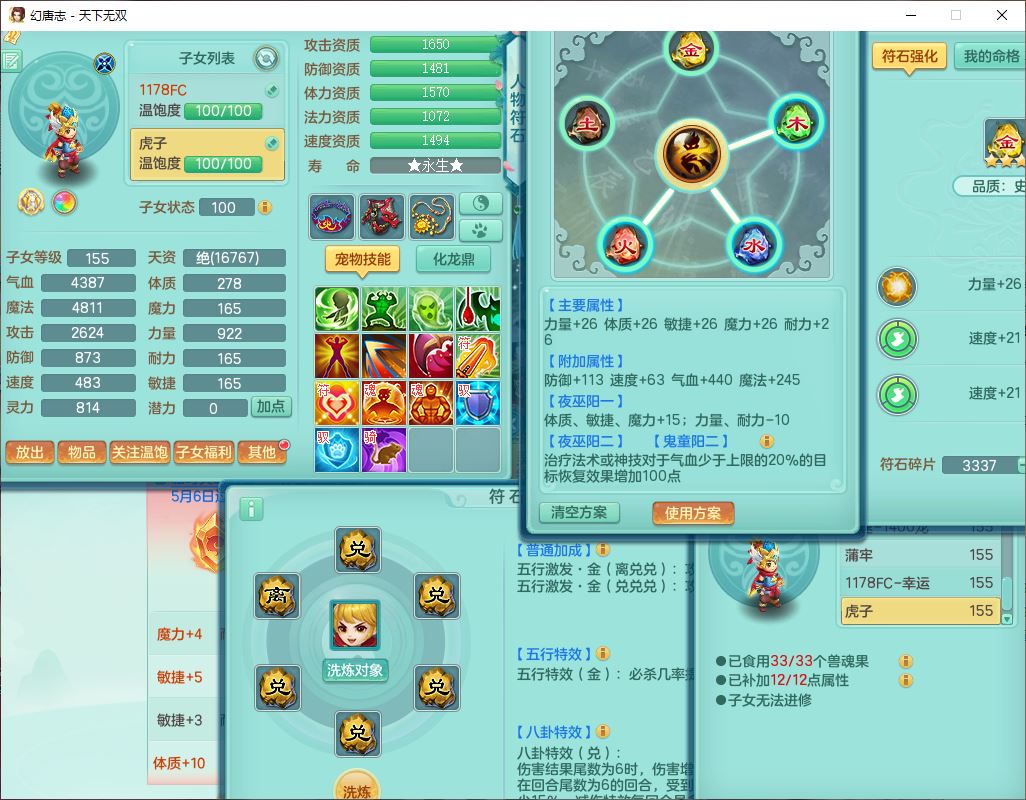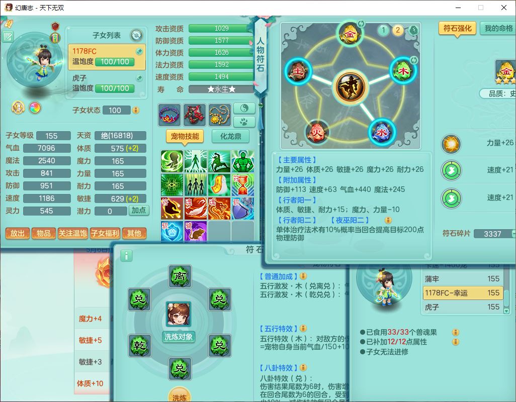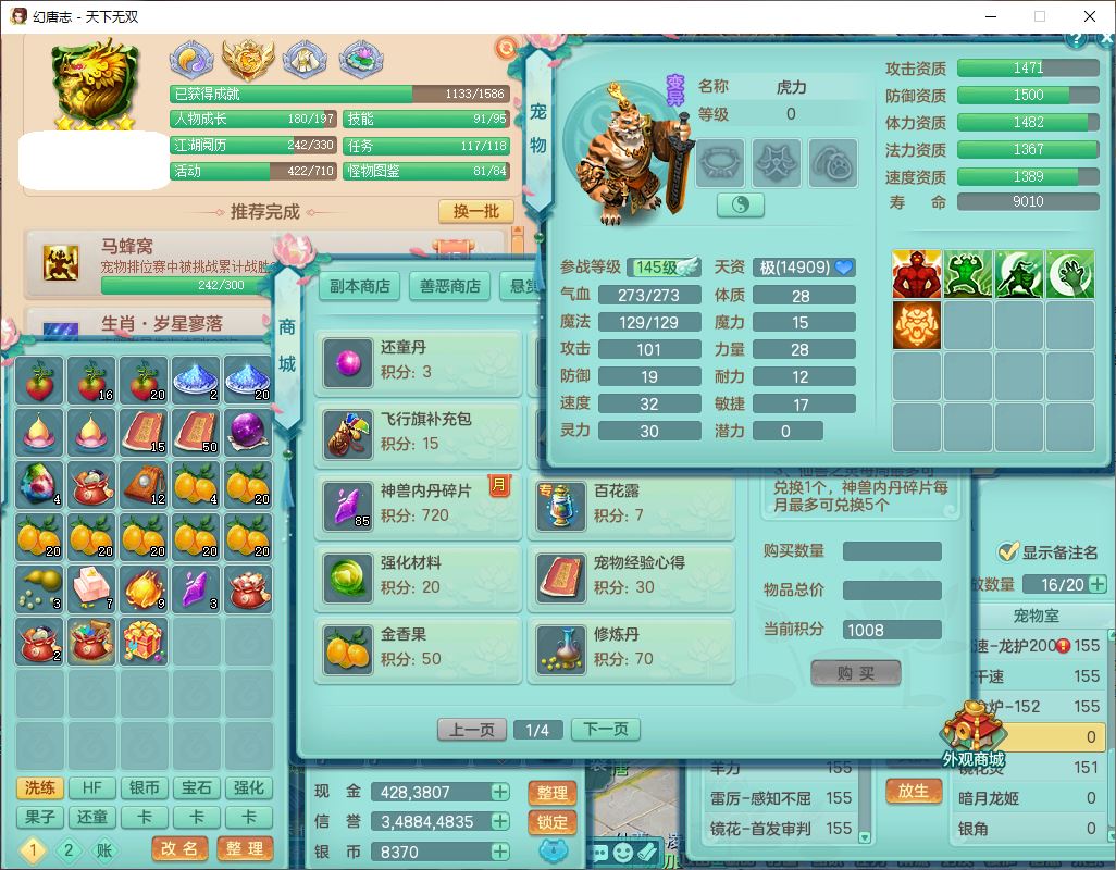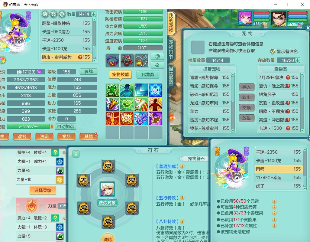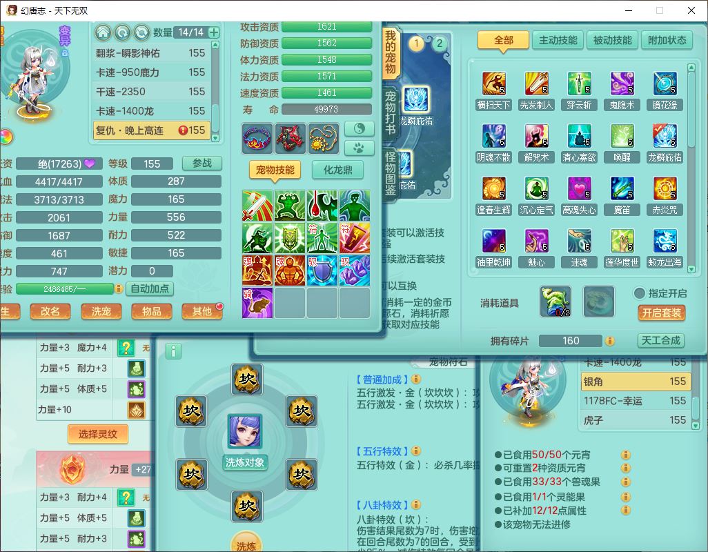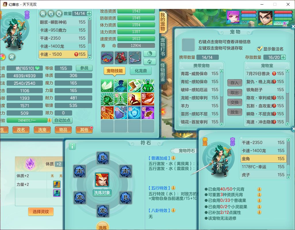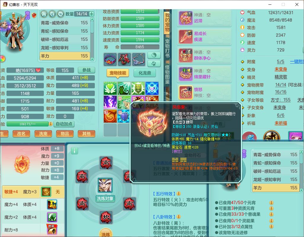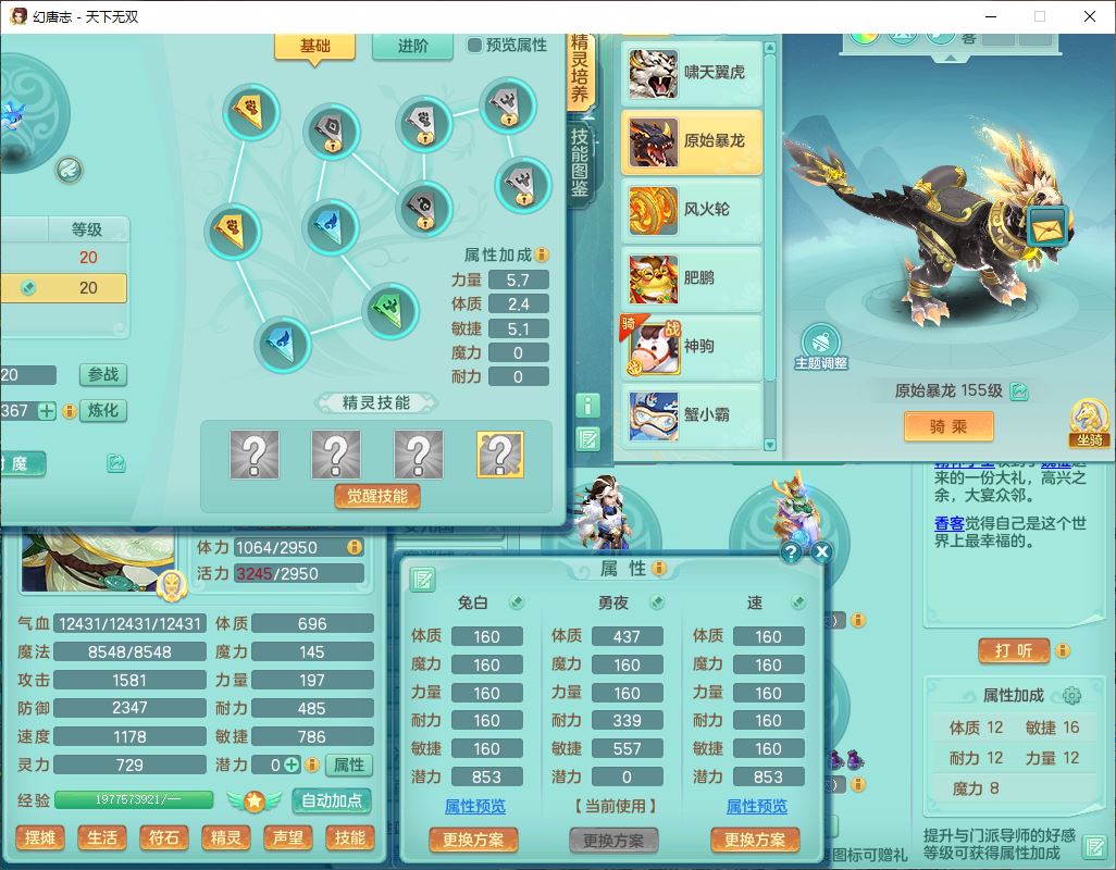 tx10124天下无双159男无量【潜龙+马上发财+暴龙猎手+火焰之力+西瓜冰】精灵歌,1龙无内1内丹青蛇3镜花1望归1龙姬1金炉5特殊(青霜、雷利、翻江,羽袭、破碎兽决),17觉醒1宠皮11六字2五字3四字综合22只满果子,7红装备,Y疾速武器,仓库多装备,回春法术反制武器,封锁武器,封印精通帽子,鼎6.0+70+280,164天月卡,庭院157,永久外观、精灵皮肤,5坐骑(1双人飞行)