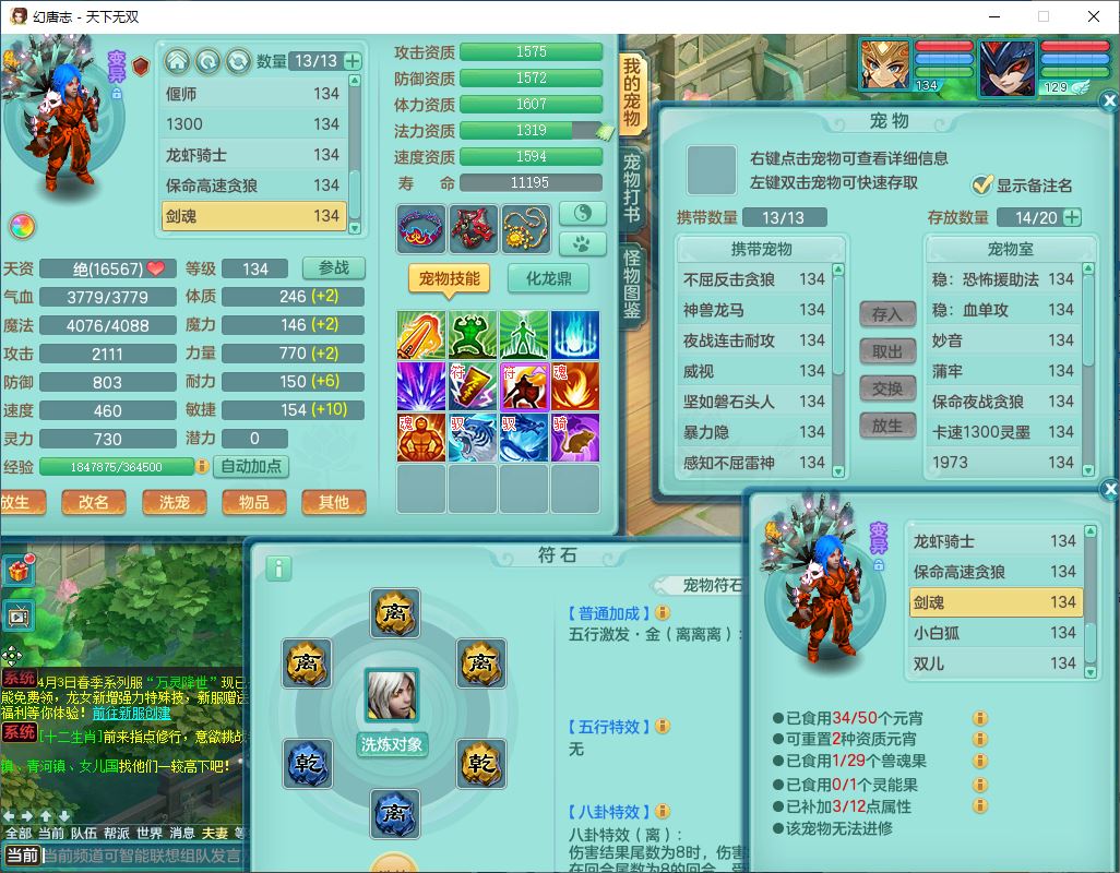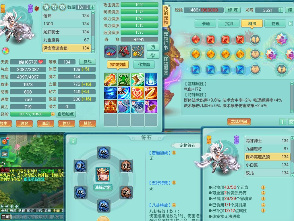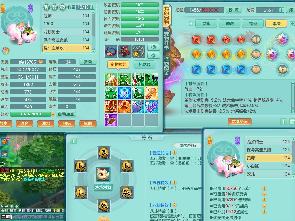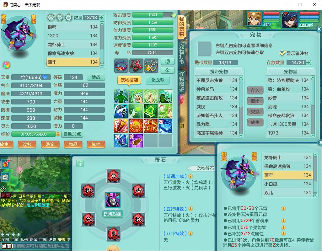 tx10116天下无双129男万兽精灵歌,满级共鸣,1内丹龙马1贪狼皮,炼妖9技能雷光,综合6只满果子5觉醒,6个4字(1洗练珠)2个5字1个6字,满攻必杀武器,单加Y头,崩山衣服,鼎4.0,14天月卡,永久外观精灵皮肤,17仙兽灵,飞行烛龙坐骑
