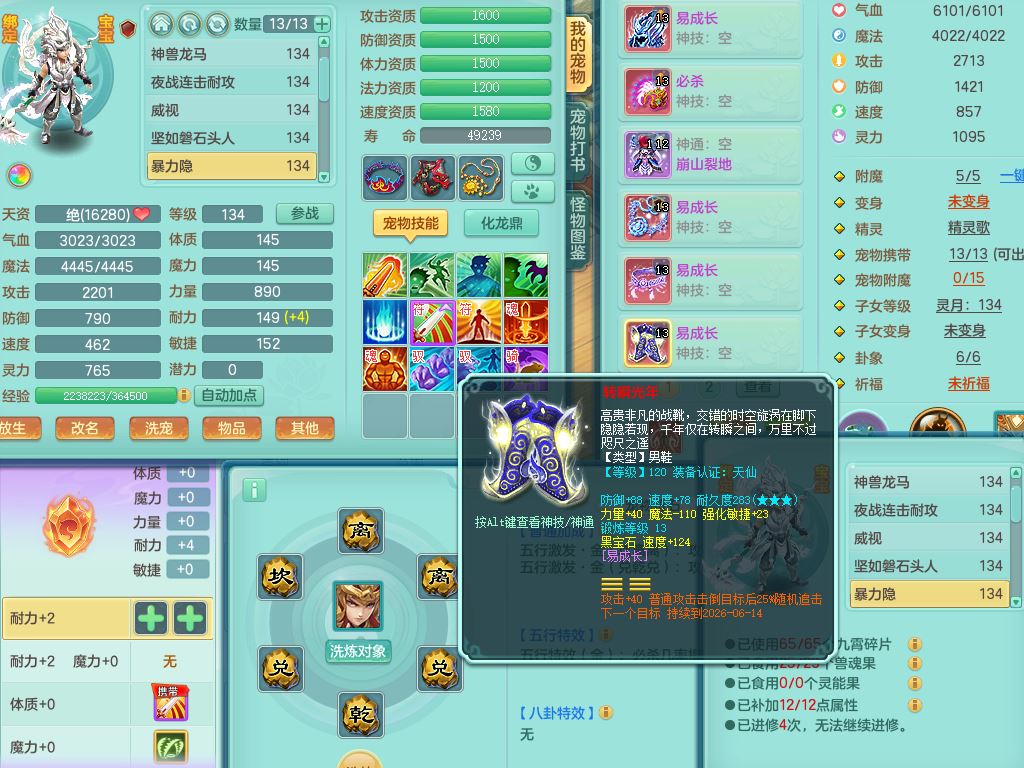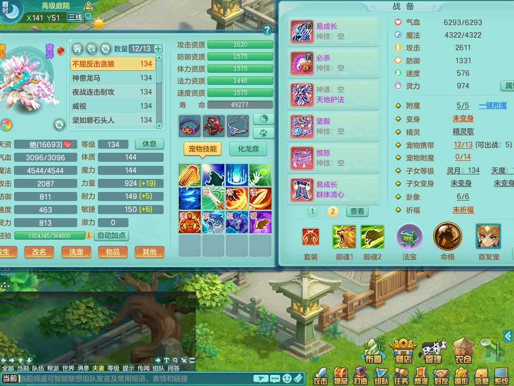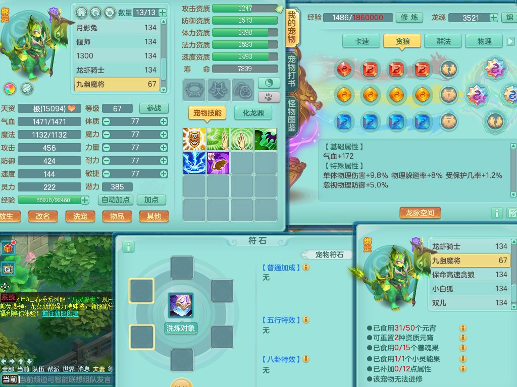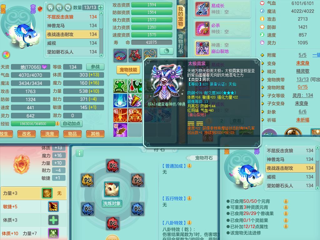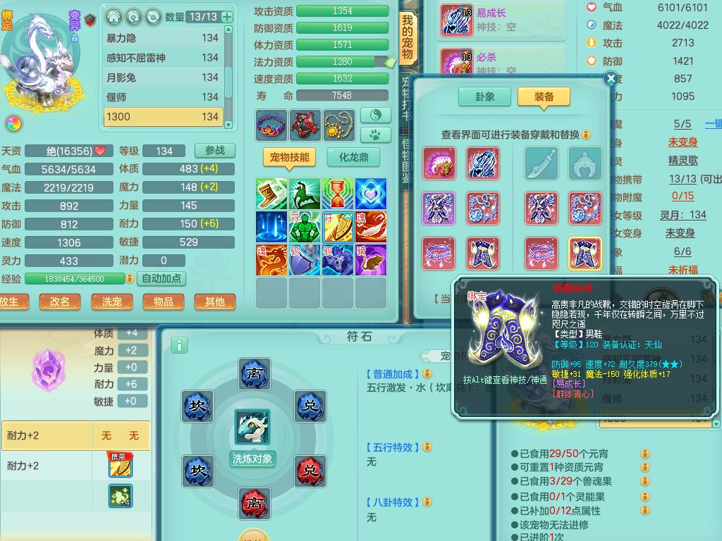 tx10116天下无双129男万兽精灵歌,满级共鸣,1内丹龙马1贪狼皮,炼妖9技能雷光,综合6只满果子5觉醒,6个4字(1洗练珠)2个5字1个6字,满攻必杀武器,单加Y头,崩山衣服,鼎4.0,14天月卡,永久外观精灵皮肤,17仙兽灵,飞行烛龙坐骑