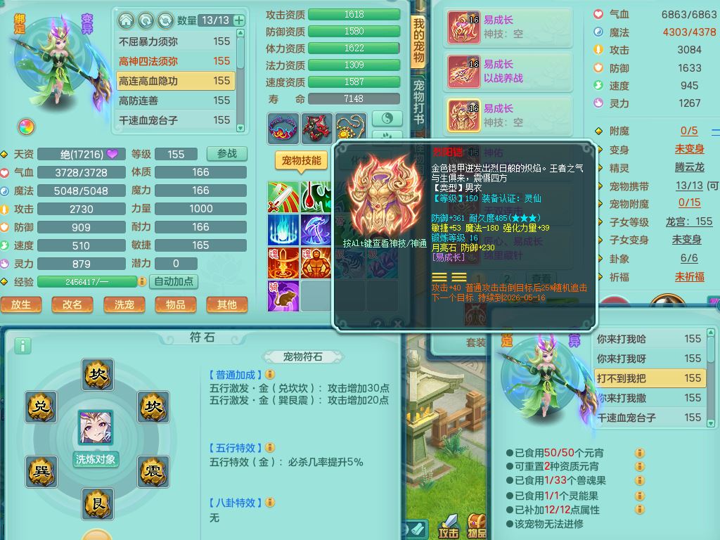 tx10126天下无双159男万兽精灵歌,满级共鸣,1内丹神1皮4特殊(双星/祈雨/兽决飞花/月光)3镜花灵(1胚子)1龙姬,15只满果子5觉醒10个4字2个5字2个6字,10红全身单加,919Y以战武器,神佑双红项链,匠心Y笑里鞋,Y崩山衣服,鼎5.0+70,永久外观精灵皮肤,3624金币,飞行双人坐骑