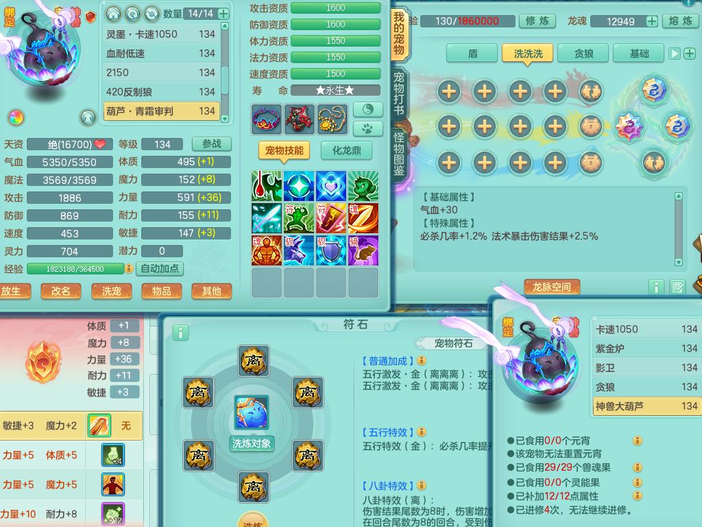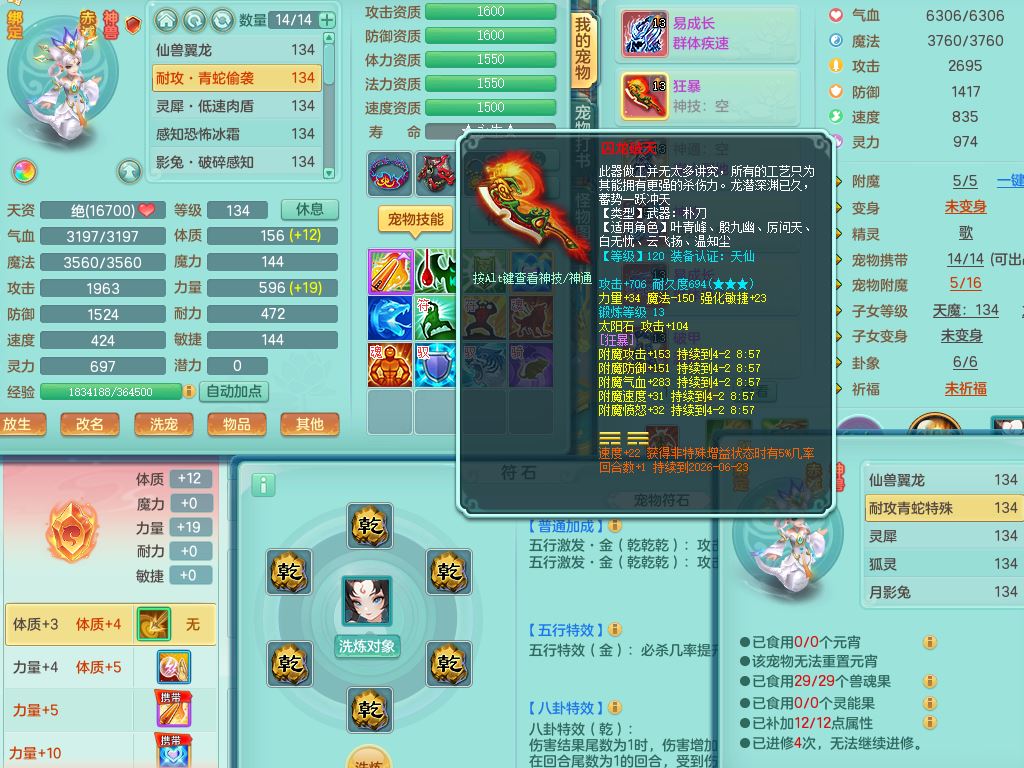 xa10128笑傲江湖129男万兽【潜龙号】精灵歌,1内丹龙4内丹神(1青蛇1龙马)2皮,18只满果子8觉醒7个纯6字,9红,单加Y双红头,706单加狂暴武器,崩山衣服,Y晶清腰带,破甲野兽鞋,愤怒迟滞腰带,仓库回春心神武器,法爆烽火武器,鼎4.0+56+224,2套符石,房屋157,永久外观精灵皮肤,宠排在榜,飞行双人坐骑