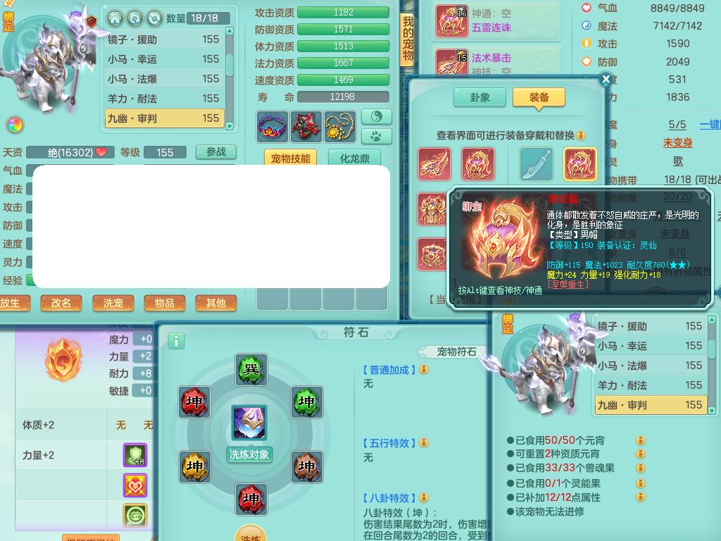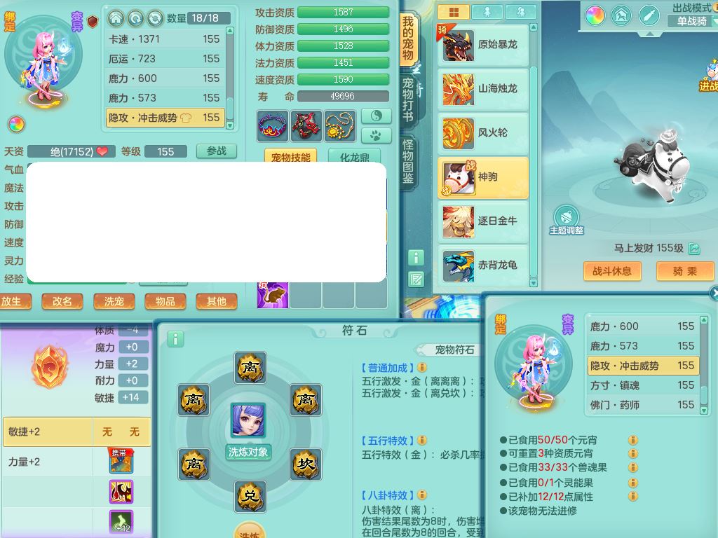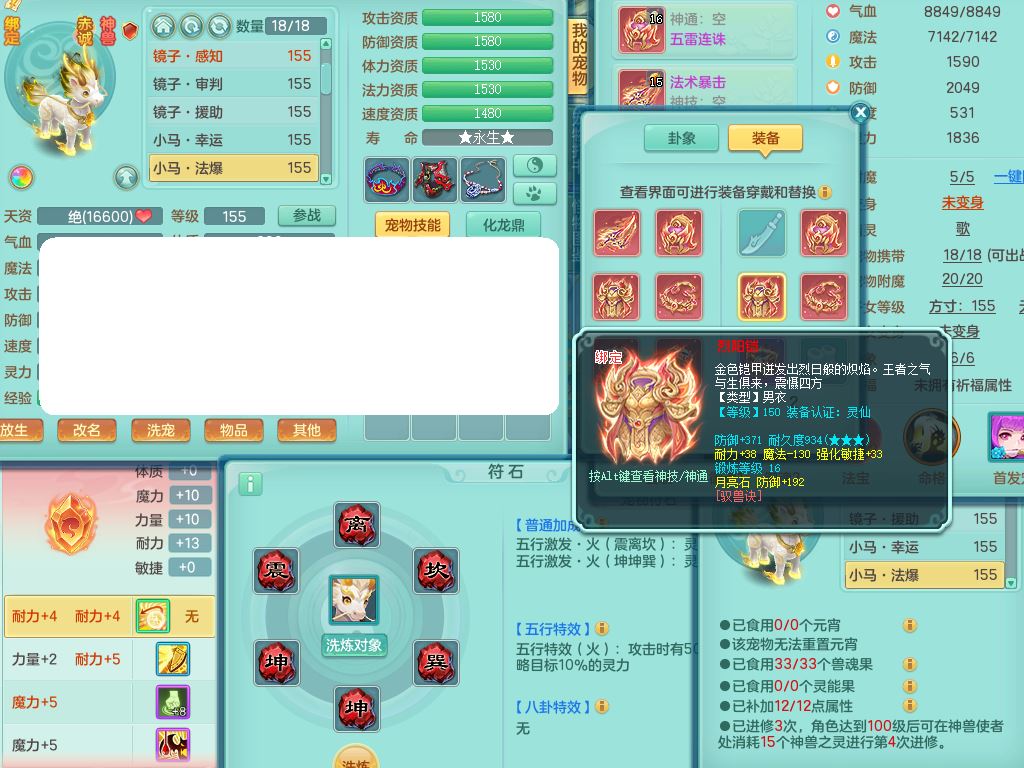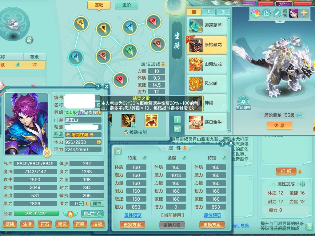 jn10130今年勇159男魔王【潜龙号+龙皮+神驹马上发财+暴龙洪荒+火焰之力】精灵歌,4字靓号,7内丹龙1龙皮3内丹神(2龙马1青蛇)3破境3宠皮,3特殊(羽袭/兽决双星/风卷)4镜花灵2龙姬(1胚子)18格子30只满果子16觉醒9个纯6字,8红,单加法爆武器,五雷头,单加Y衣服,264单加Y双红项链,法缭四海鞋,鼎5.5+70+280,160天月卡,庭院166房屋150,永久外观精灵皮肤,宠排在榜,4坐骑(2只双人)