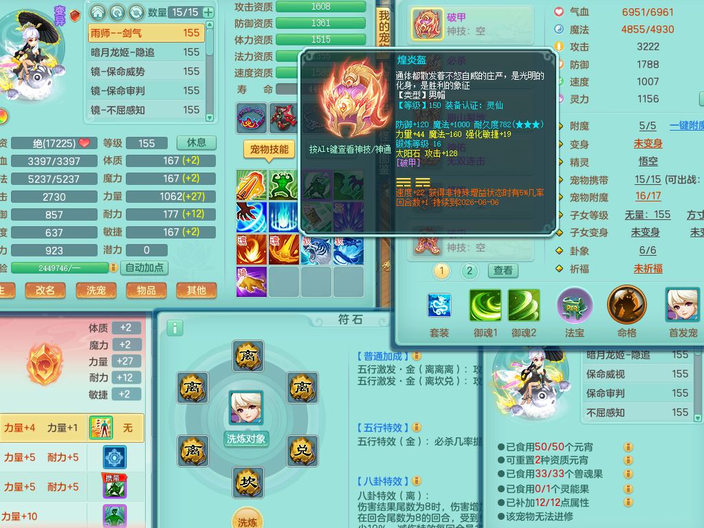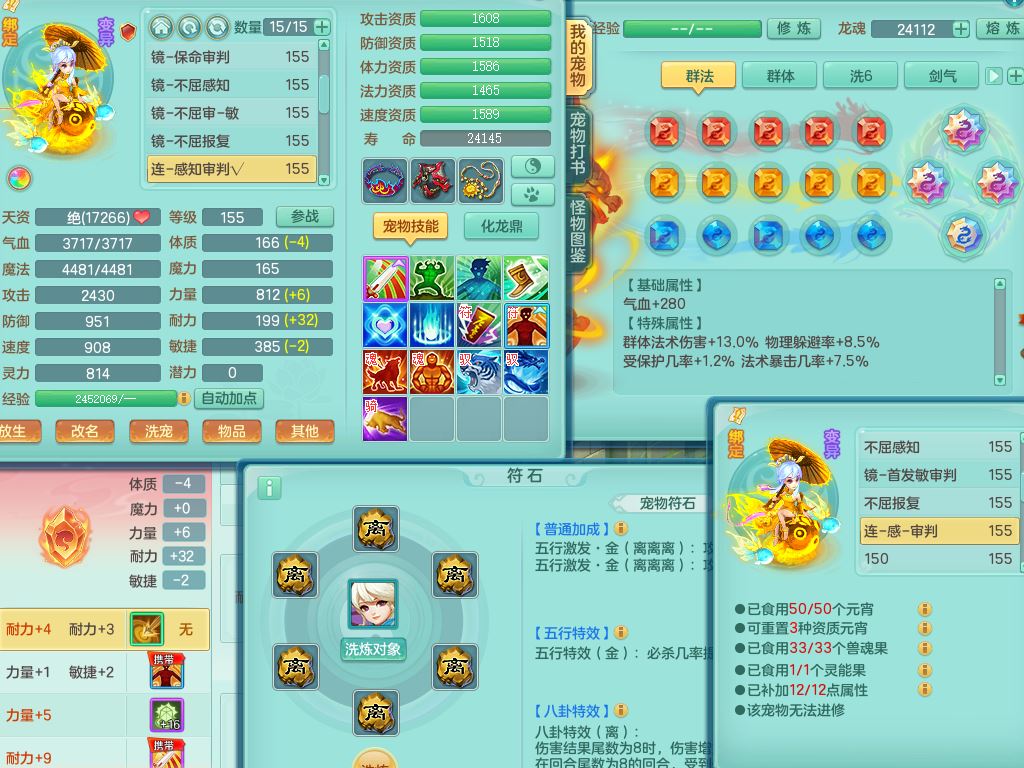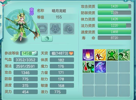 tx10147天下无双159男无名【潜龙号】精灵悟,2套星穹,1内丹龙1内丹青蛇1龙马无内,5特殊(守护/风卷/兽决雷厉/琴音/噬风)5镜花灵2龙姬(1胚子)20只满果子9觉醒8个纯6字,25天月卡,庭院157房屋160,永久头饰精灵皮肤,6583金币,64内丹碎片,8红双破甲,923必杀止戈武器,崩山衣服,神佑破血项链,鼎5.5+70+280,宠排在榜,2只双人坐骑,带2个150奶粉