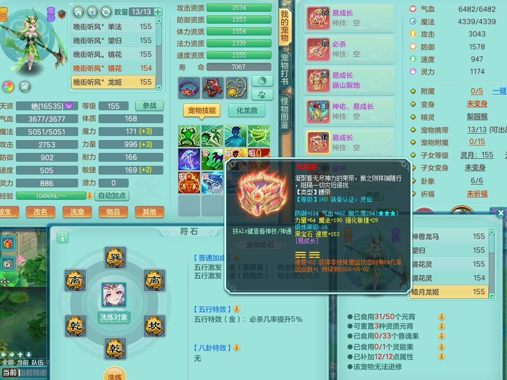 jt10151九天揽月159男万兽精灵歌,满级共鸣,1内丹龙马,2镜花灵1龙姬,4只满果子1觉醒,8红全单加,必杀武器,Y崩山衣服,Y神佑项链,破甲鞋,鼎4.5+70+280,23天月卡
