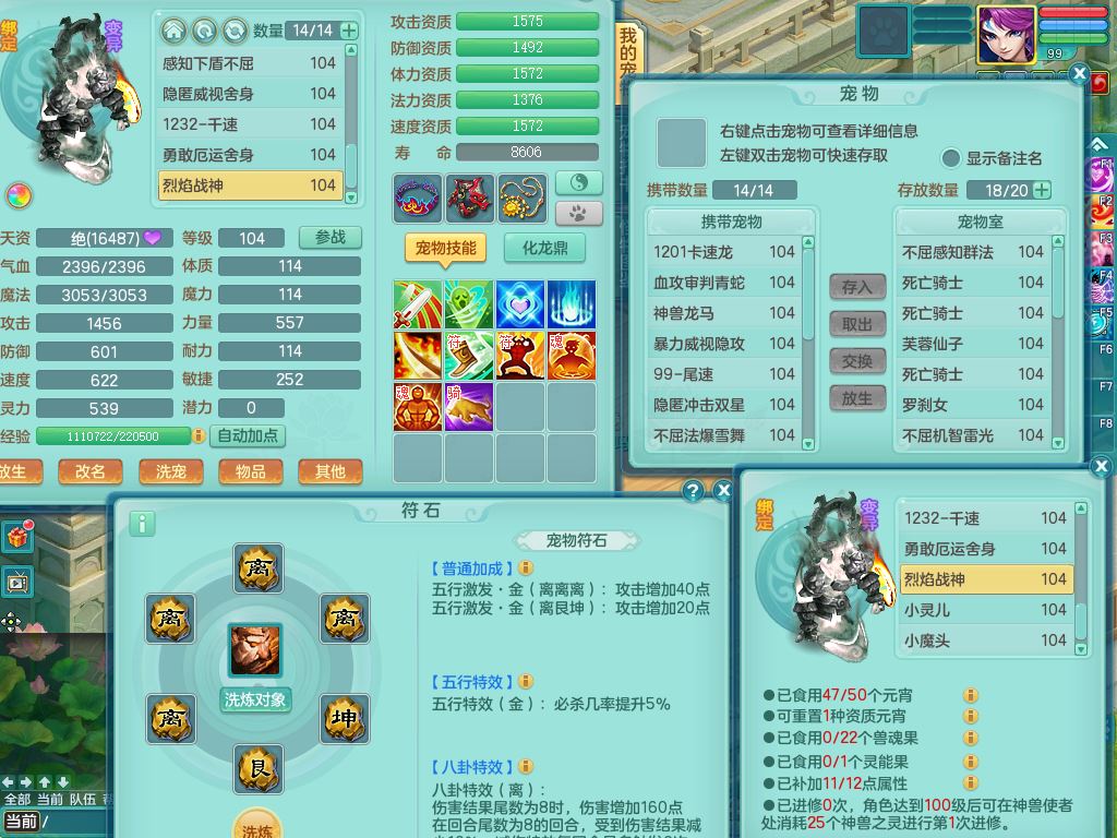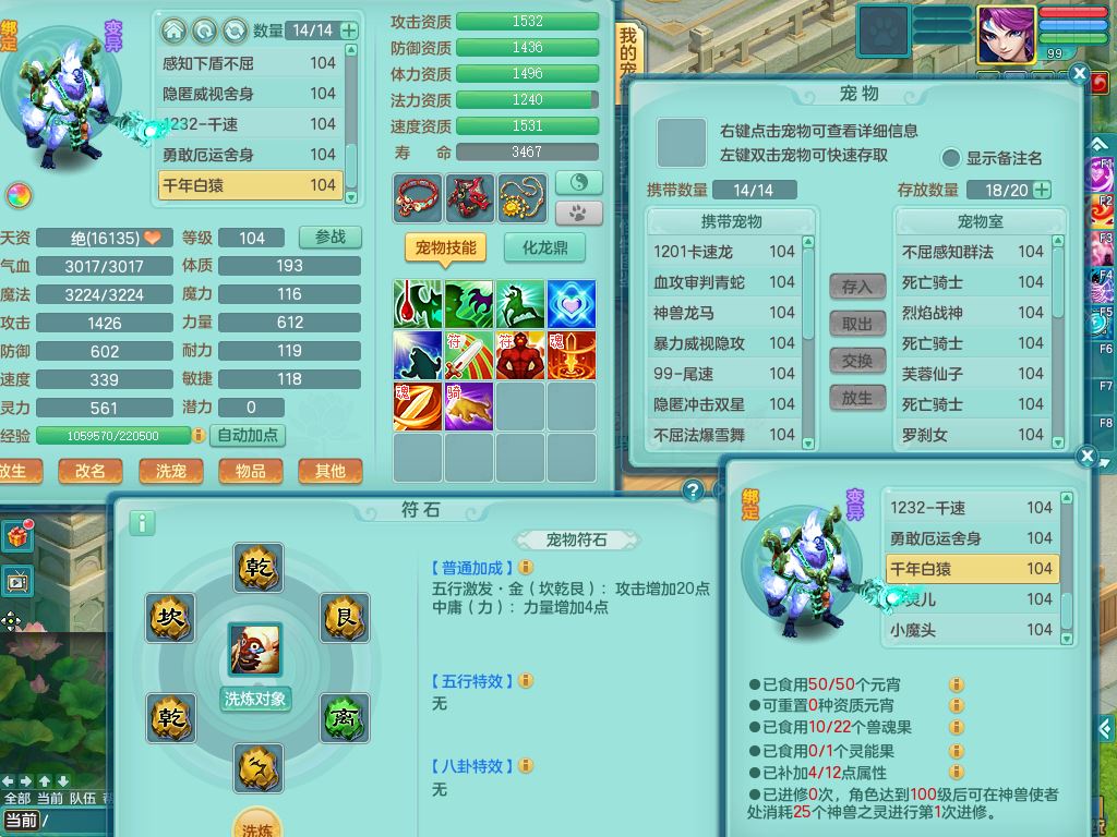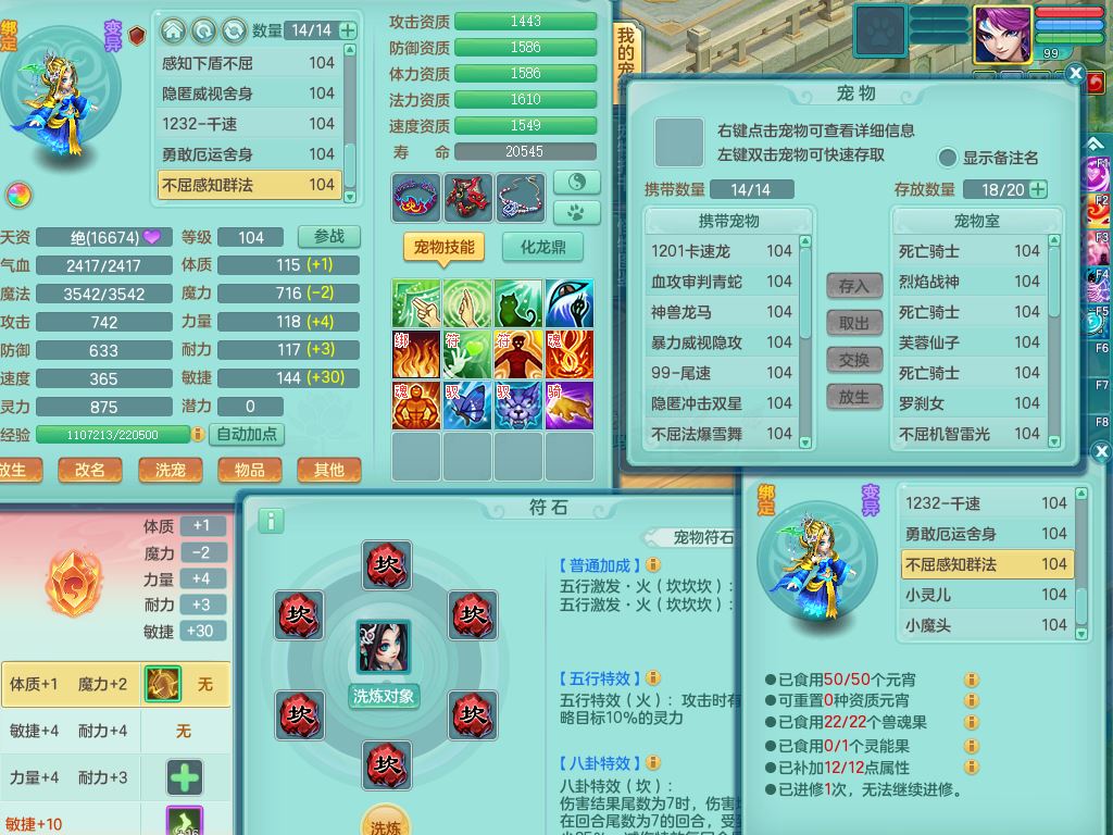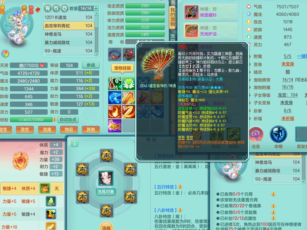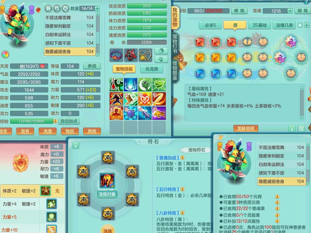 tx10156天下无双99男盘丝【潜龙号】3系精灵,1龙(无内)2神兽(青蛇/龙马,1只无内)2破境,综合23只满果子13觉醒12个纯6字,11红愤怒5特,Y慈航衣服,神佑晶清项链,愤怒Y腰带,Y止戈鞋,鼎2.5+42+168,3套符石,23天月卡,永久头饰精灵皮肤,73内丹碎片,宠排在榜,双人坐骑