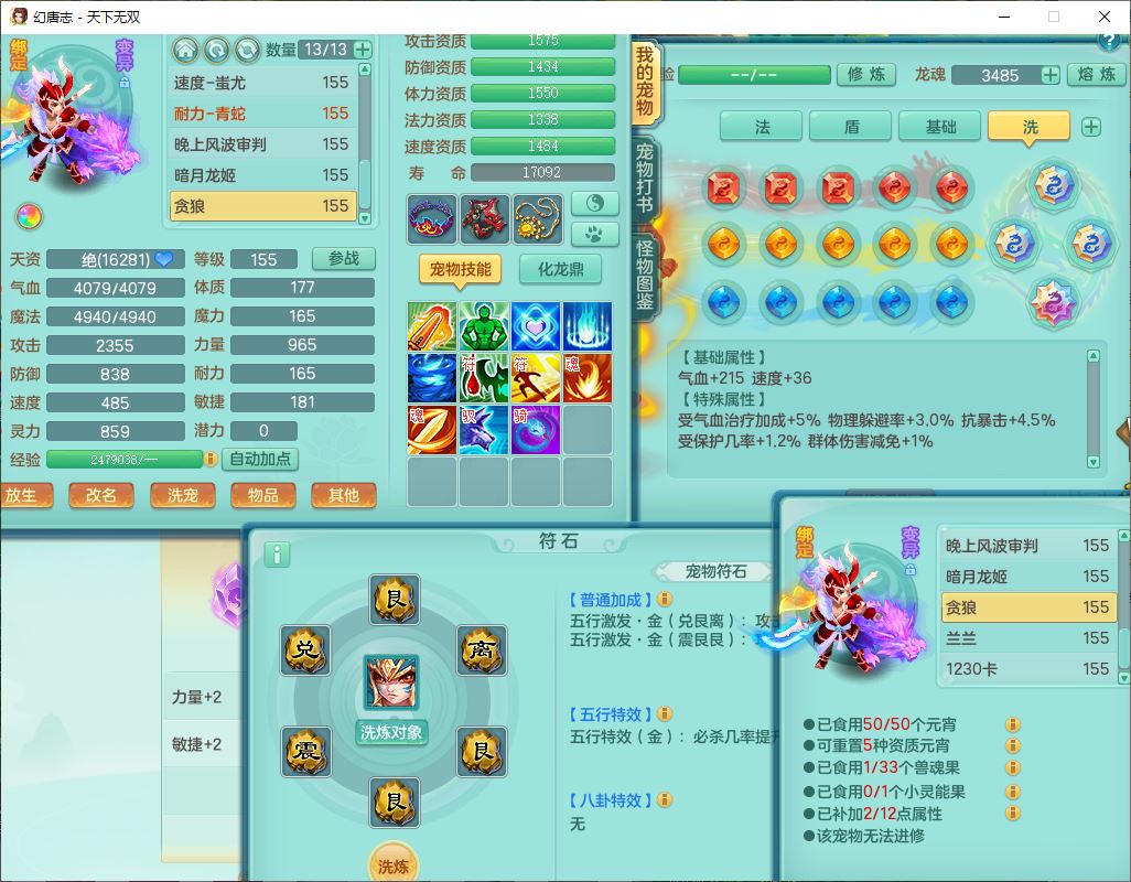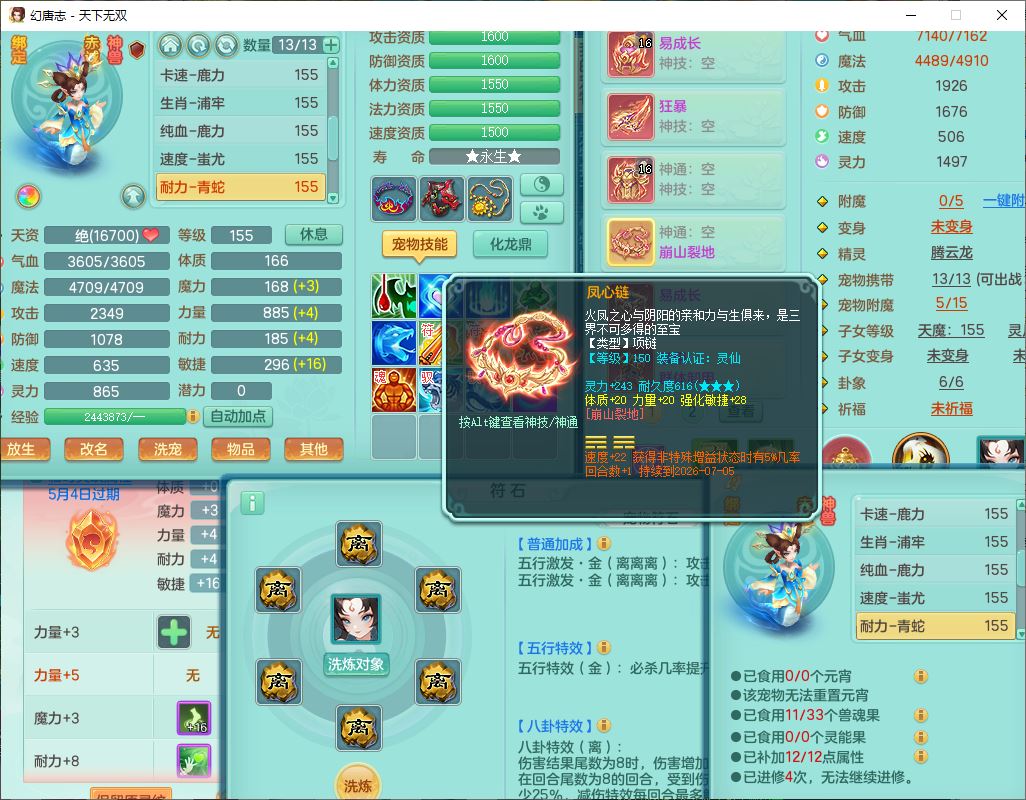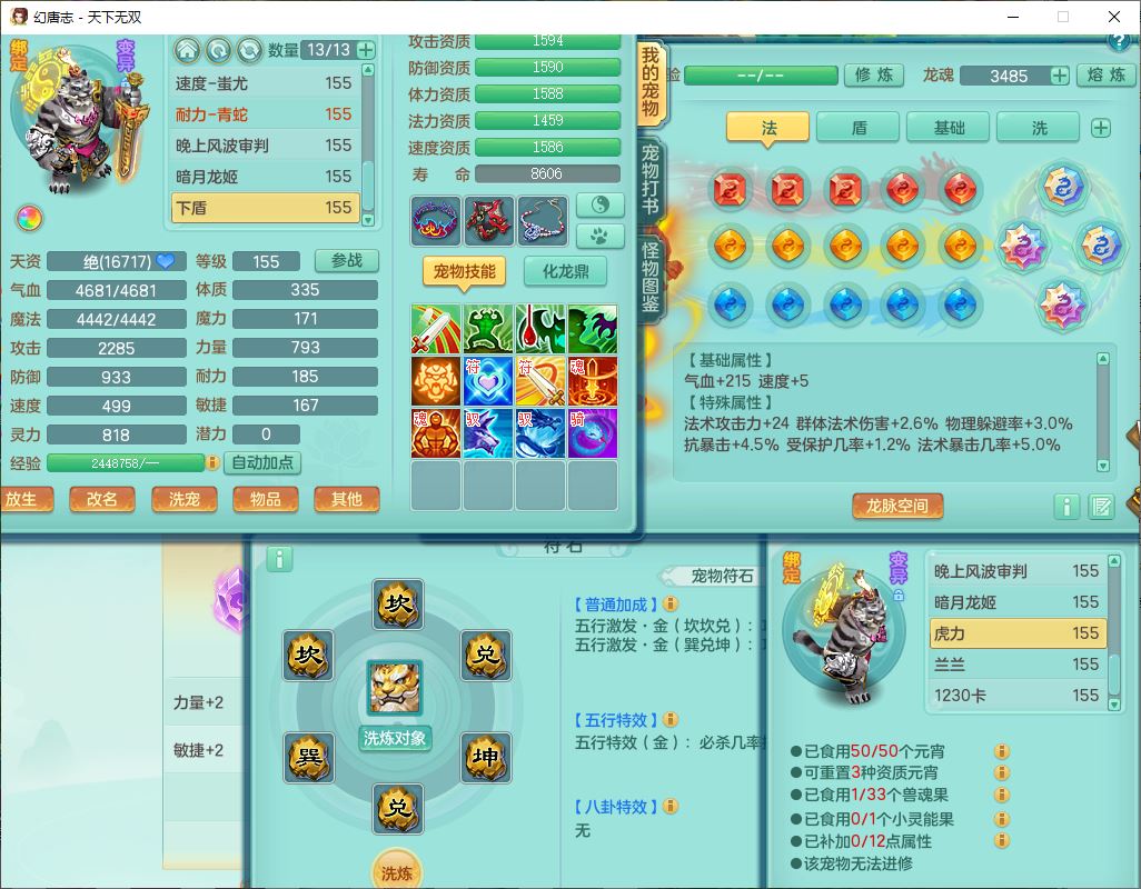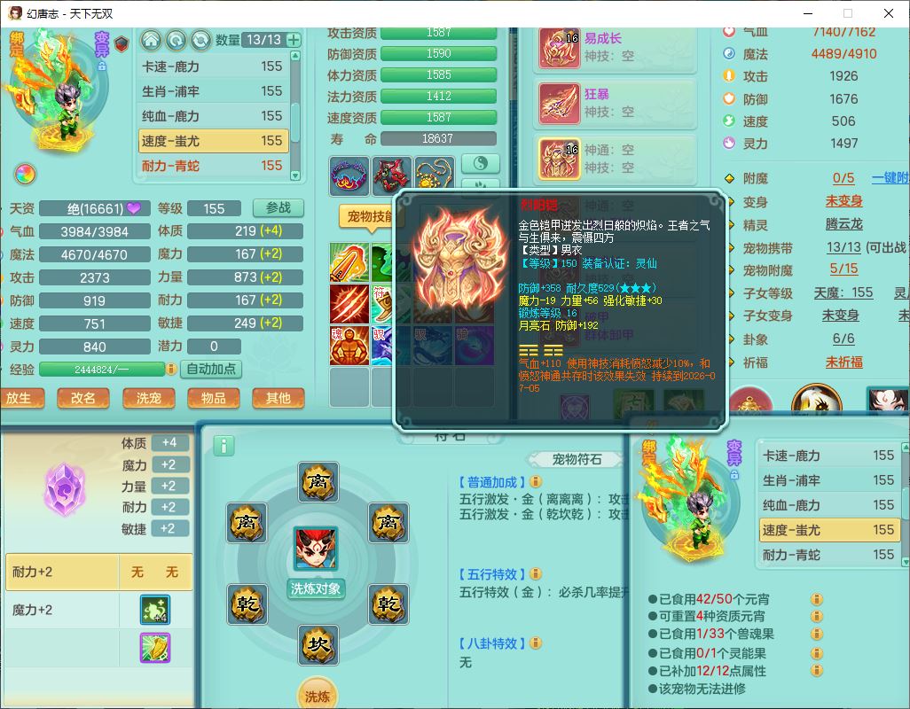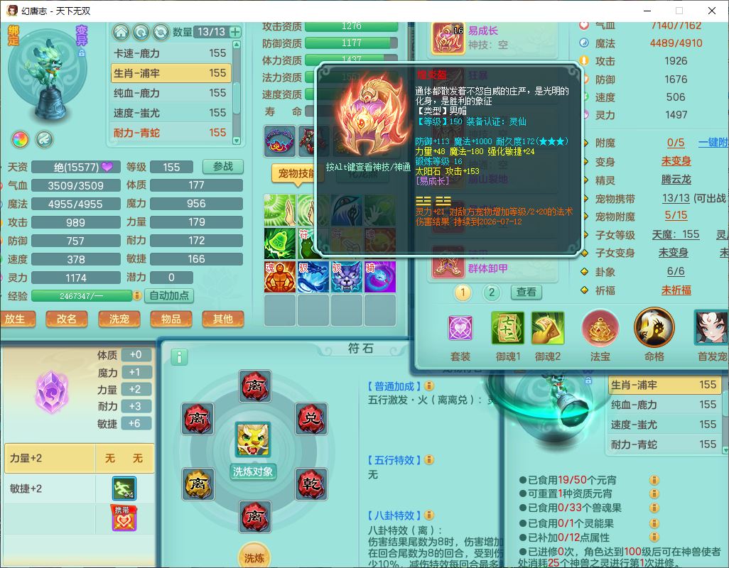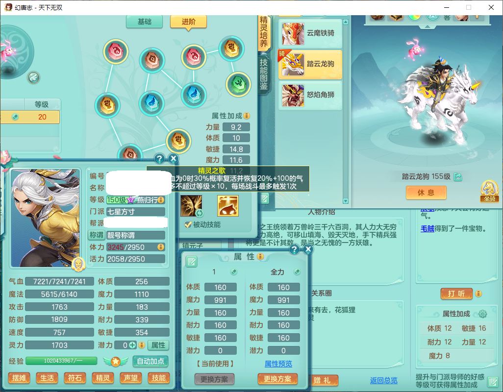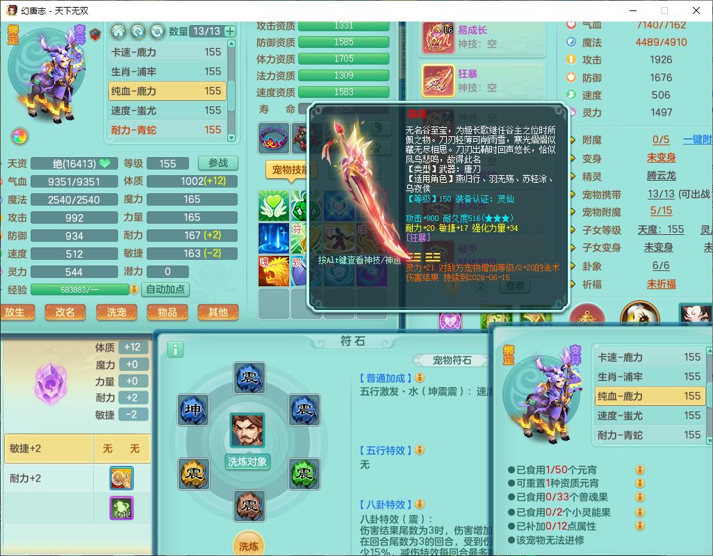 tx10167天下无双159男方寸精灵歌,8字靓号(ABBBBBBA),1内丹青蛇1望归3镜花1龙姬,2觉醒1六字1五字3四字,装备齐全,7红装备,五雷帽子,274Y回生项链,法缭鞋子,一套物理装备,狂暴武器,崩山项链,破甲群体卸甲鞋子,仓库多装备,Y封印精通帽子,幸运坚毅群体卸甲项链,48天月卡,永久头饰、精灵皮肤,2双人坐骑
