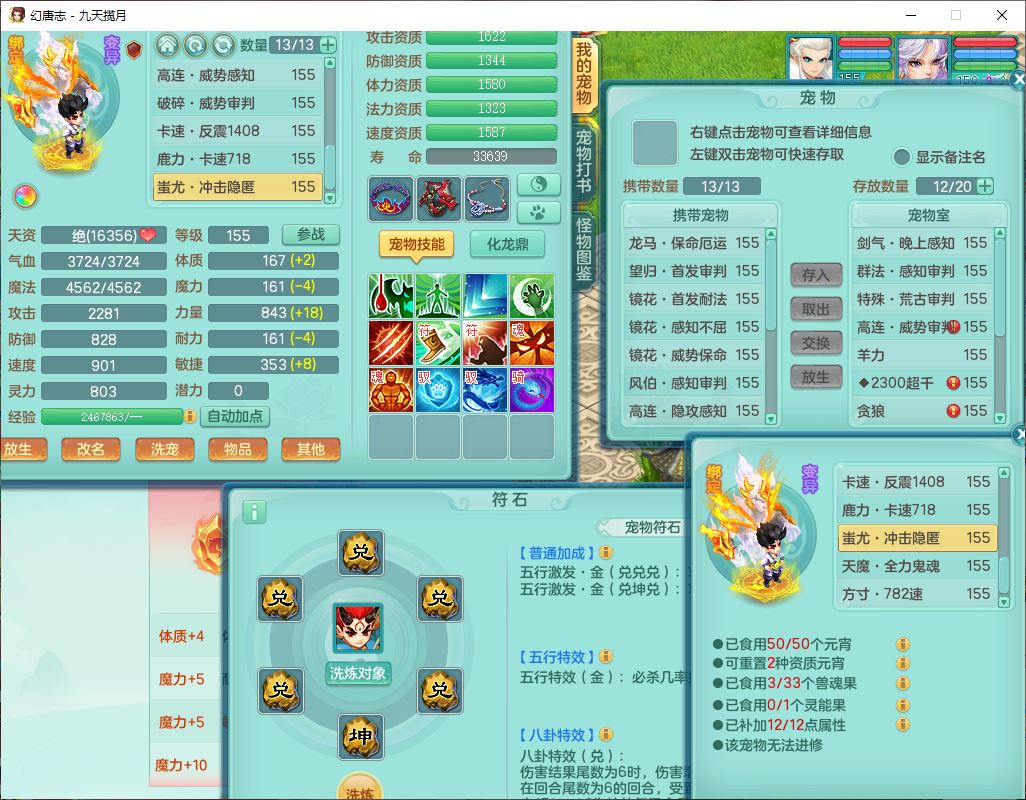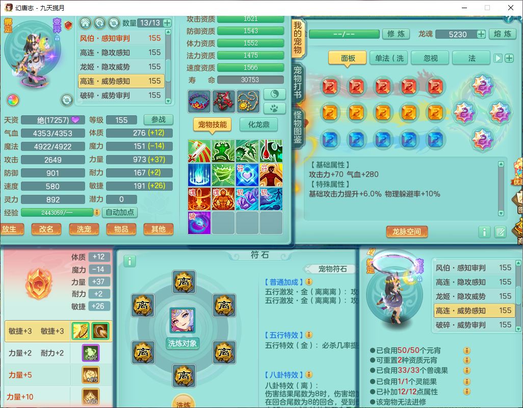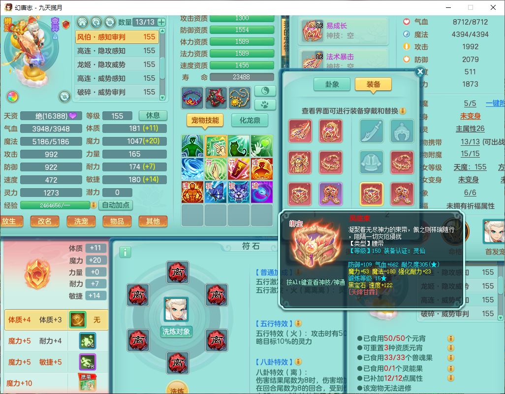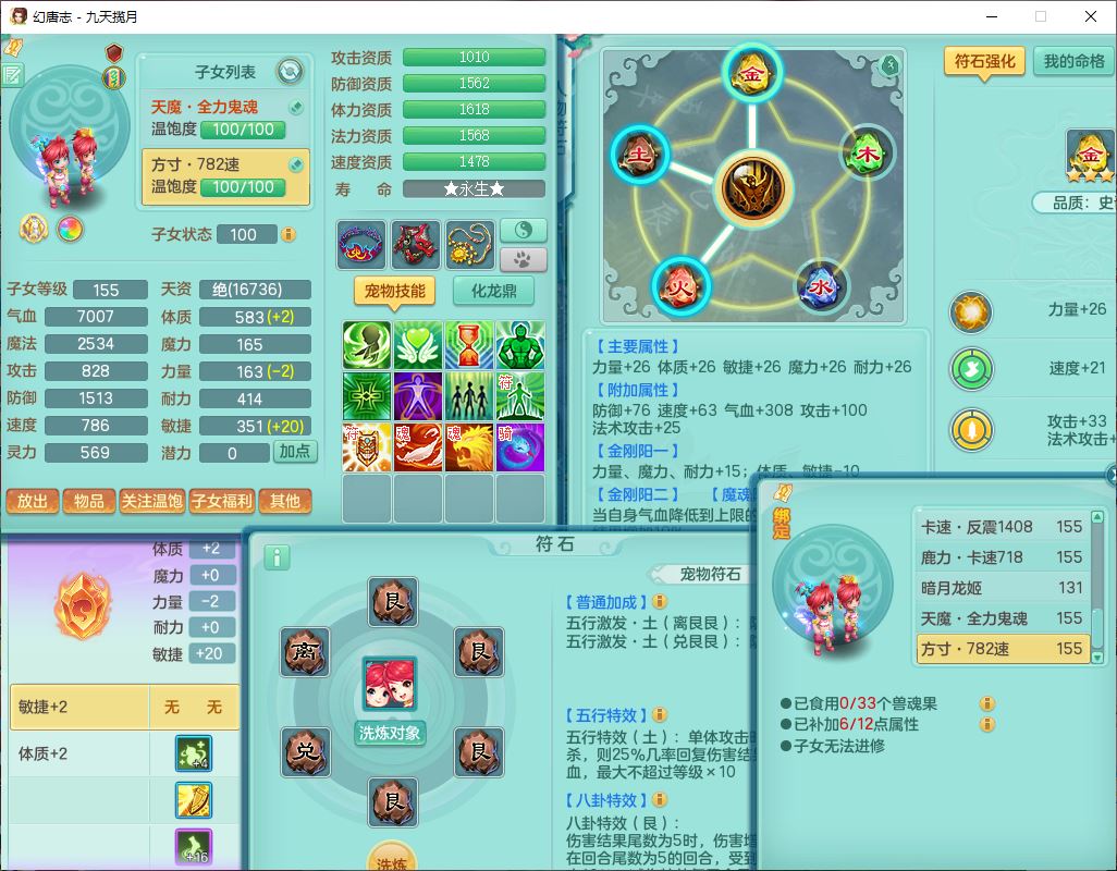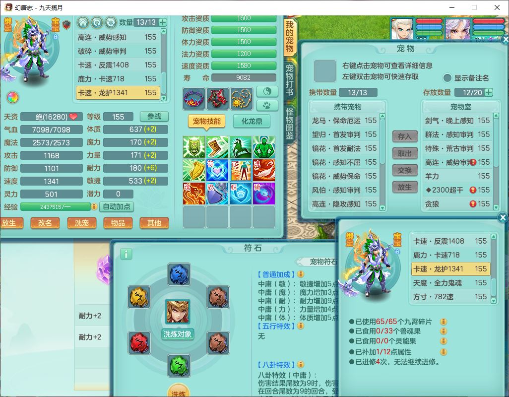 jt10162九天揽月159男魔王【潜龙号+火焰之力】精灵舞,1内丹龙马1望归3镜花1龙姬1特殊(荒古),11觉醒4宠皮8六字3五字8四字综合13只满果子,9红装备,法爆武器,强壮Y慈航衣服,幸运指挥腰带,五雷鞋子,有物理装,坚毅项链,崩山鞋子,鼎6.0+70+280,35天月卡,庭院150,永久头饰、精灵皮肤,24个仙兽灵,15个内丹碎片,1双人飞行坐骑