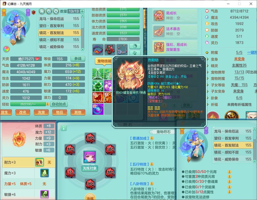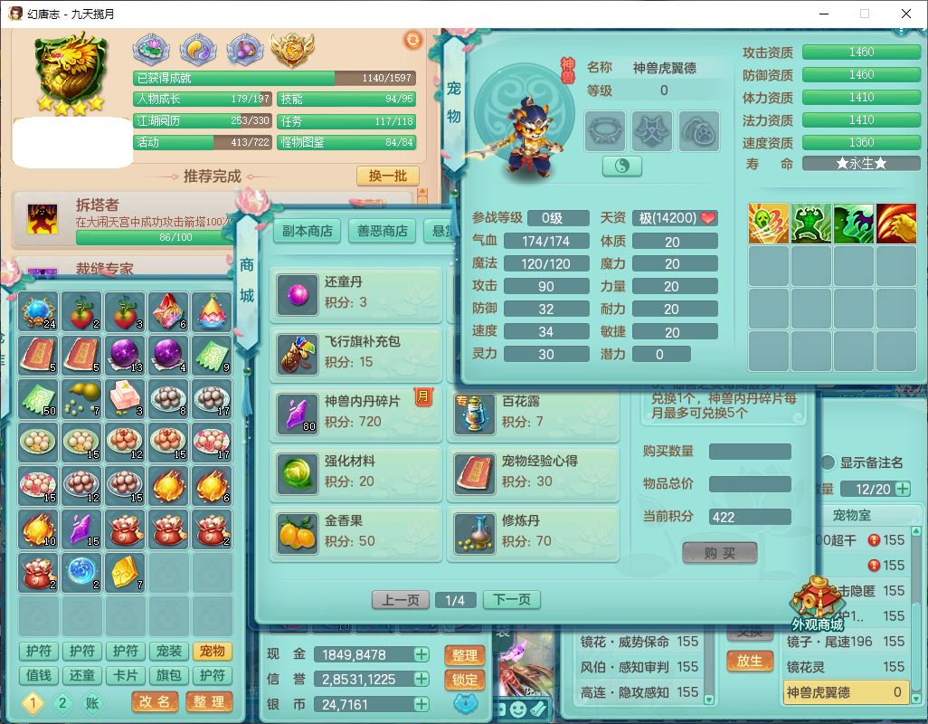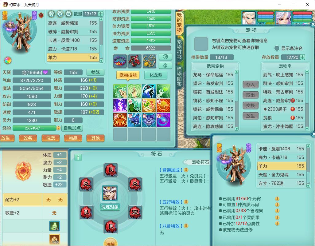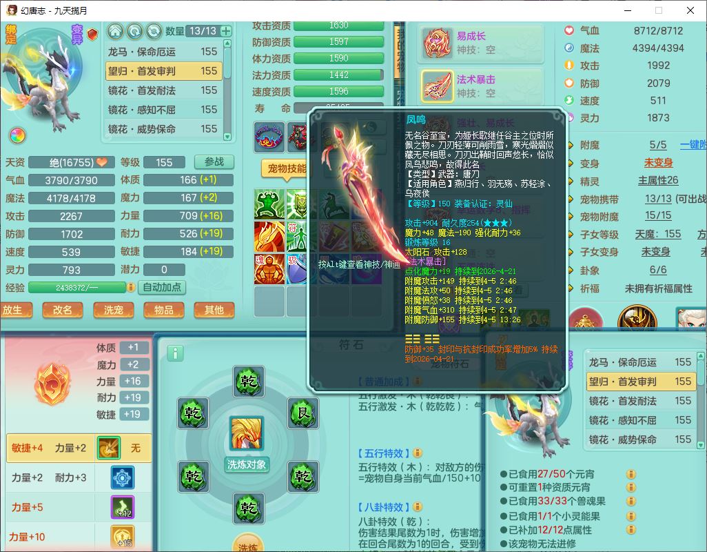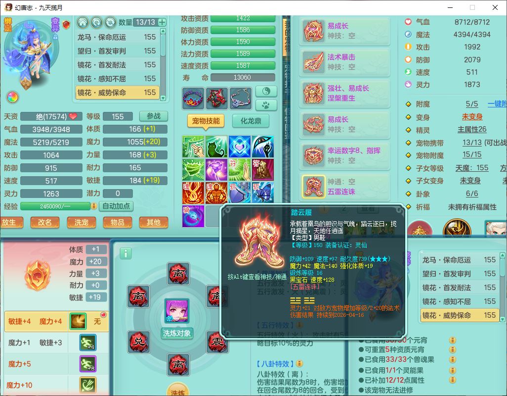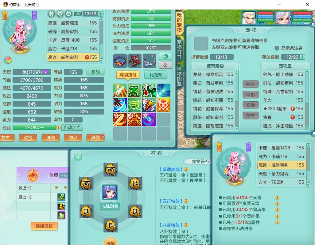 jt10162九天揽月159男魔王【潜龙号+火焰之力】精灵舞,1内丹龙马1望归3镜花1龙姬1特殊(荒古),11觉醒4宠皮8六字3五字8四字综合13只满果子,9红装备,法爆武器,强壮Y慈航衣服,幸运指挥腰带,五雷鞋子,有物理装,坚毅项链,崩山鞋子,鼎6.0+70+280,35天月卡,庭院150,永久头饰、精灵皮肤,24个仙兽灵,15个内丹碎片,1双人飞行坐骑