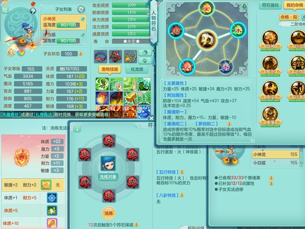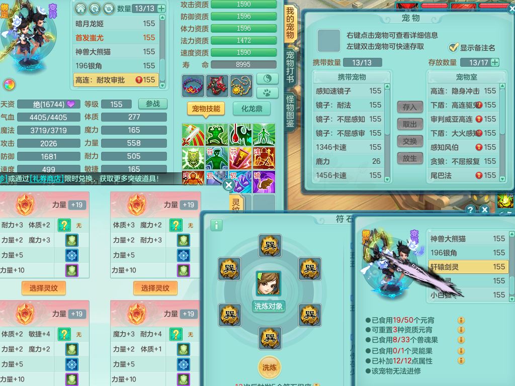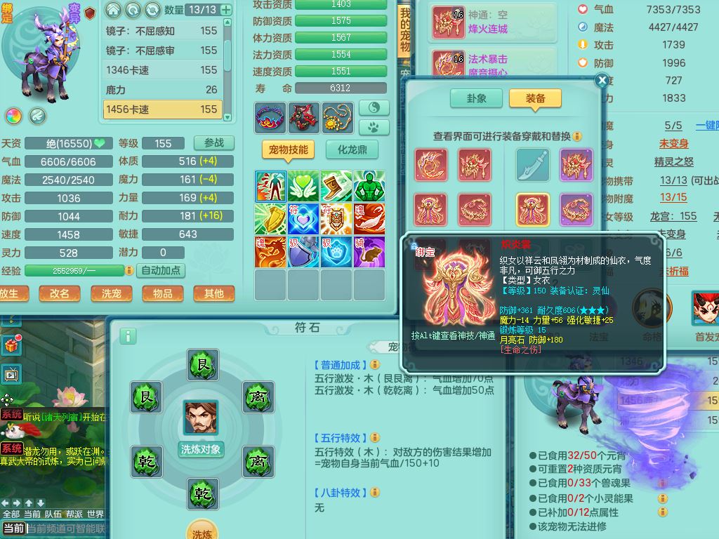 tx10159天下无双159女魔王精灵怒,4镜花灵1龙姬,综合11只满果子8觉醒2个纯6字,9红星辰之拥,法爆绝幻武器,法缭双红衣服,满灵单加Y项链,单加幸运五雷鞋,鼎5.5+70,庭院154房屋164,永久外观精灵皮肤,31仙兽灵34内丹碎片,2坐骑(1只双人)