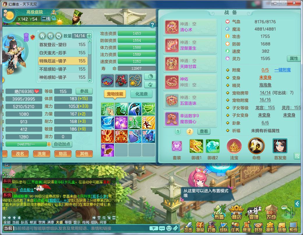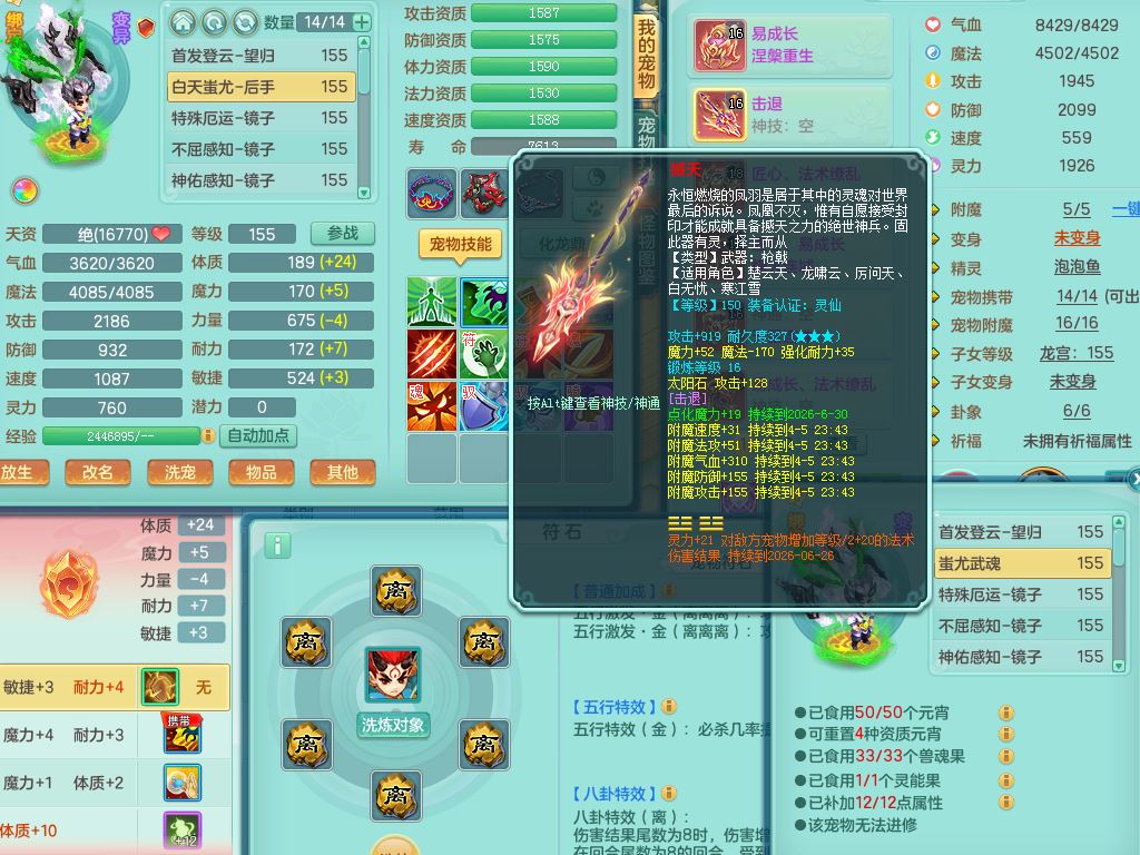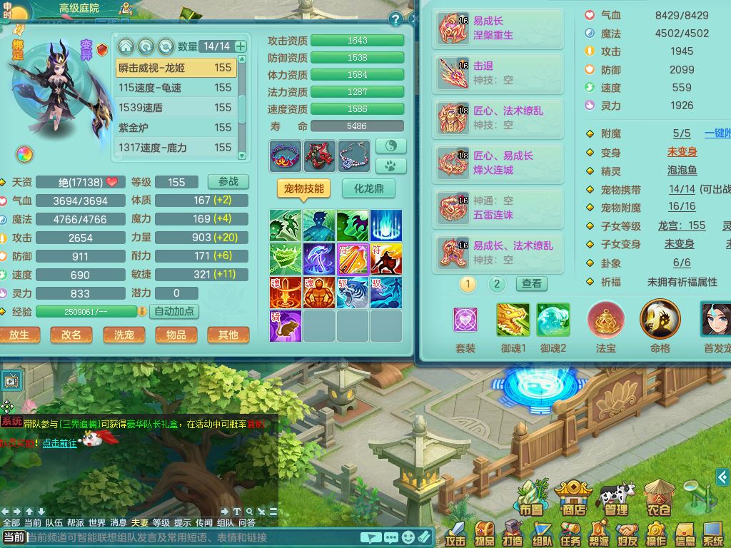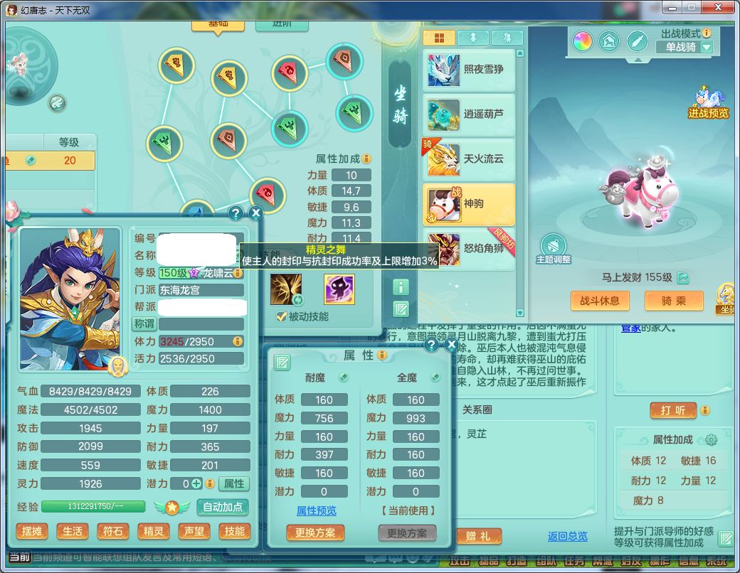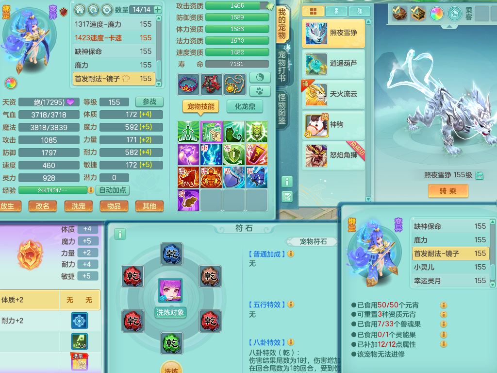 tx10177天下无双159男龙宫【神驹马上发财】精灵舞,3特殊(祈雨/兽决青霜/月光)3宠皮,4镜花灵2龙姬,10只满果子7觉醒2个纯6字,11红双法缭星辰之拥,单加Y慈航头,匠心法缭衣服,275单加Y匠心烽火项链,单加五雷腰带,单加Y法缭鞋,法爆双红武器,鼎4.5+70,43天月卡,永久外观精灵皮肤,34仙兽灵41内丹碎片,4坐骑(3只双人)