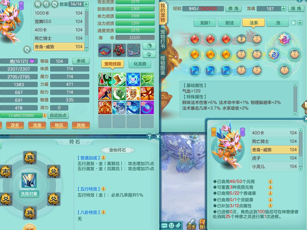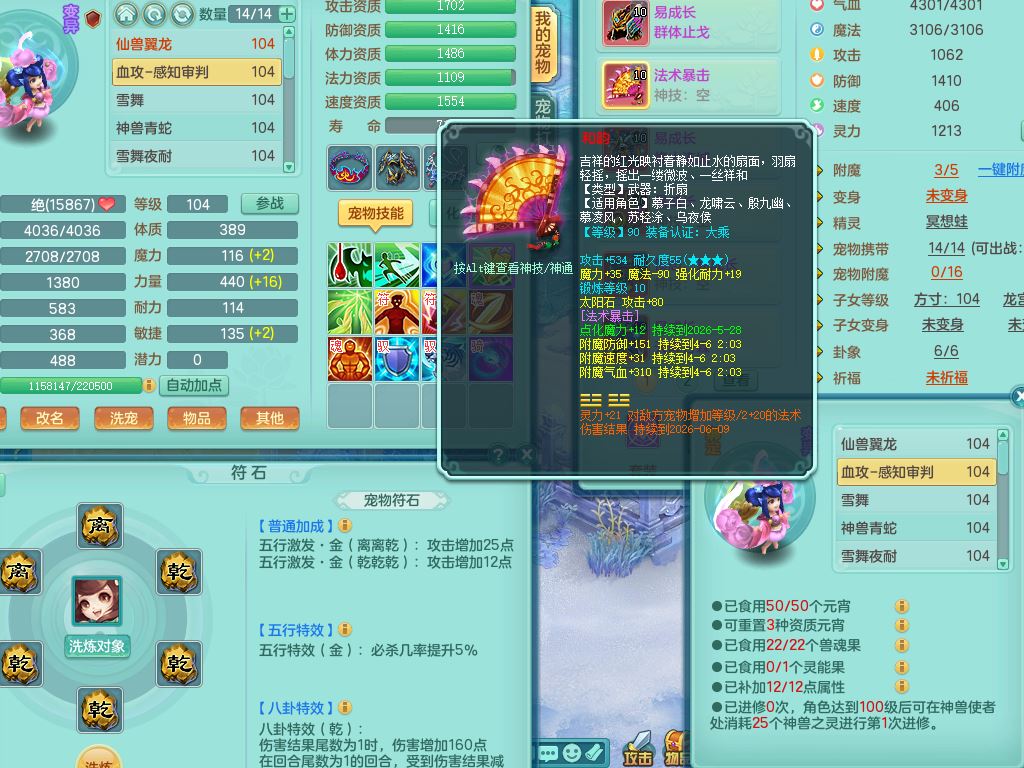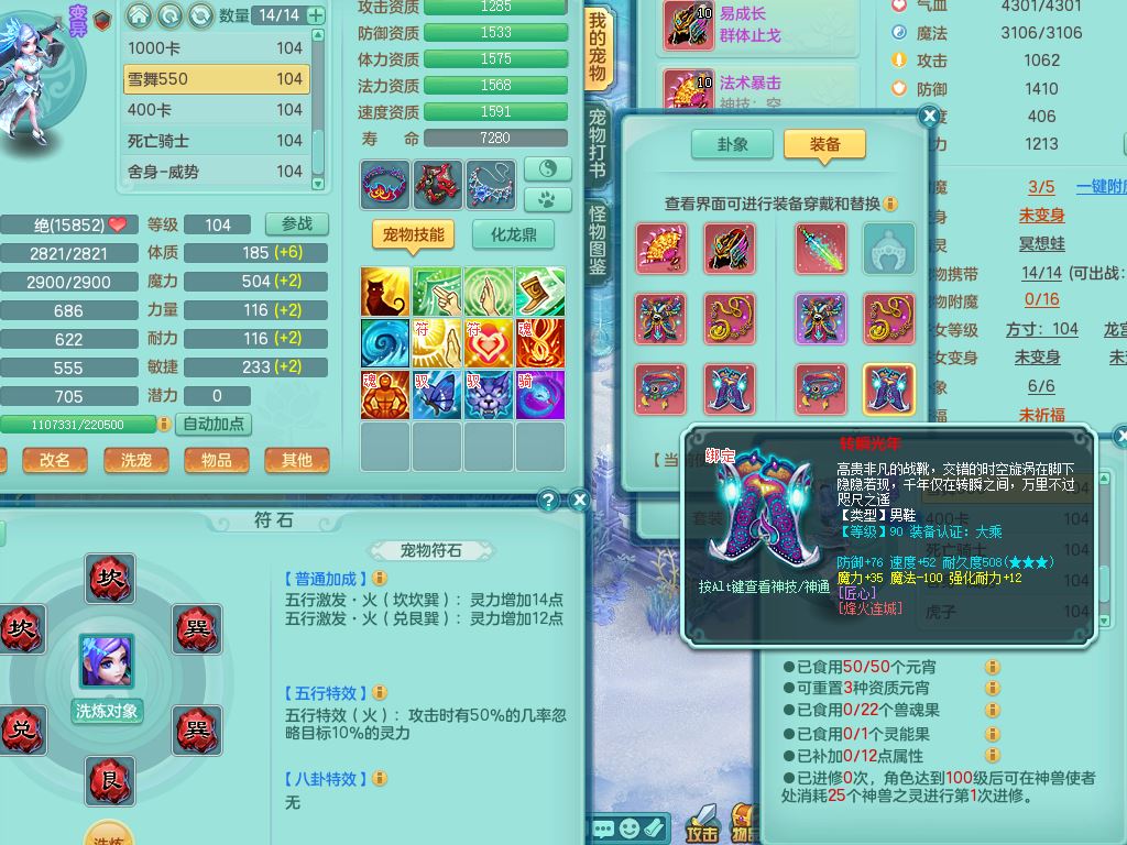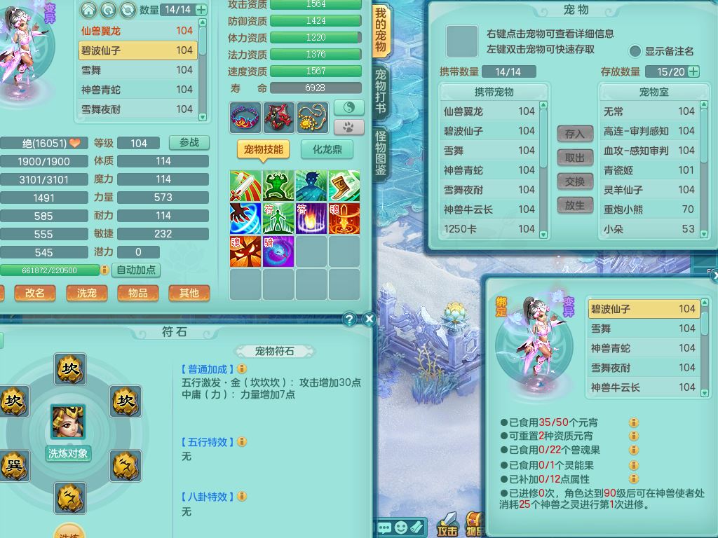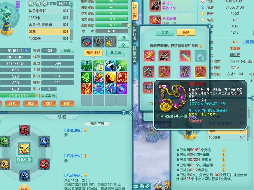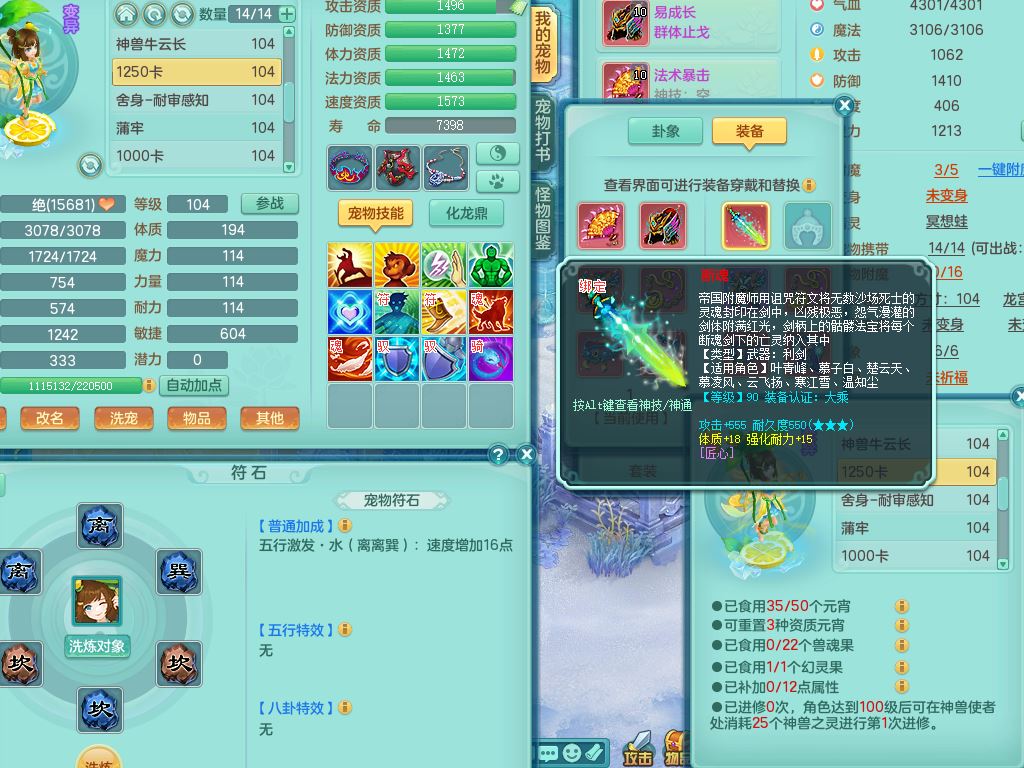 zn10174周年相伴99男龙宫全魔精灵,1龙2内(青蛇)4翻江3舍身1建木1童子2宠皮,2四字,10红装备,Y群体止戈帽子,Y烽火衣服,愤怒Y腰带,Y四海鞋子,躲避崩山衣服,坚毅慈航项链,匠心烽火鞋子,鼎1.5,11天月卡,冰晶庭院,永久外观饰物、精灵皮肤,1双人飞行坐骑