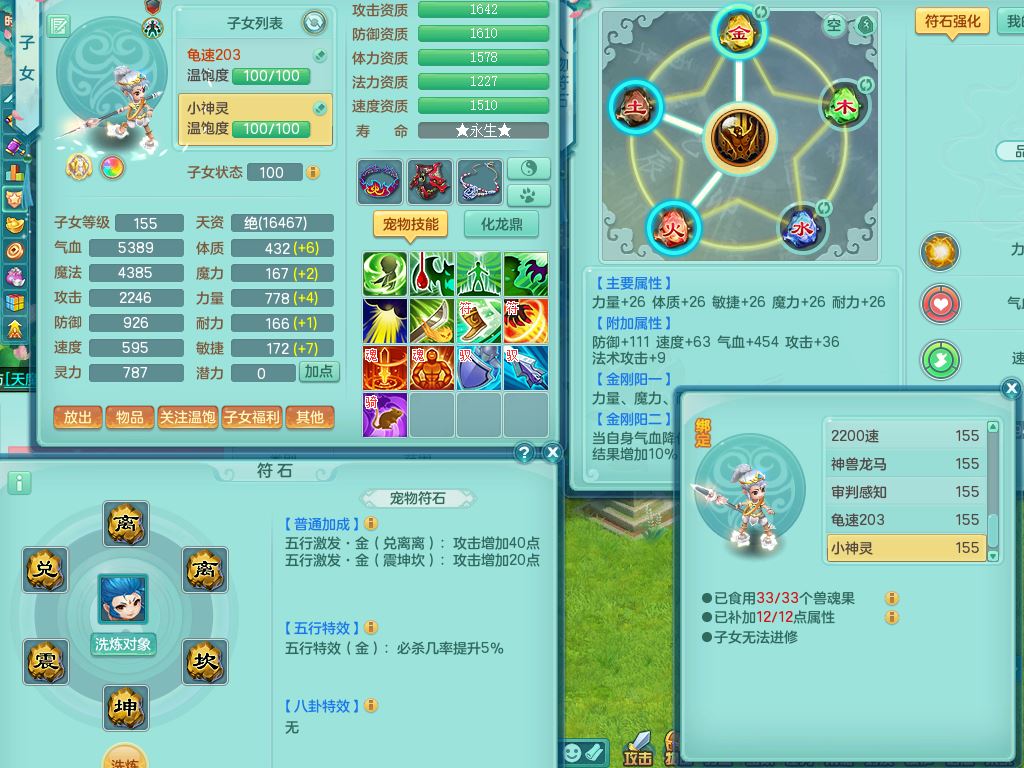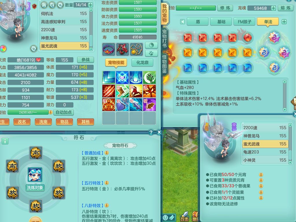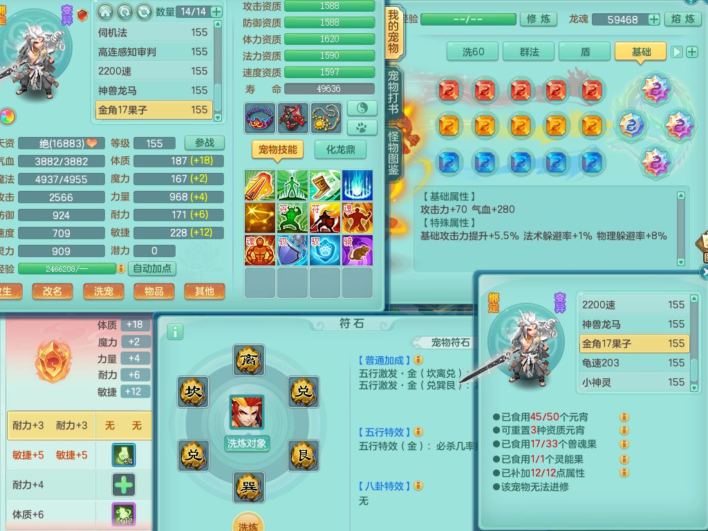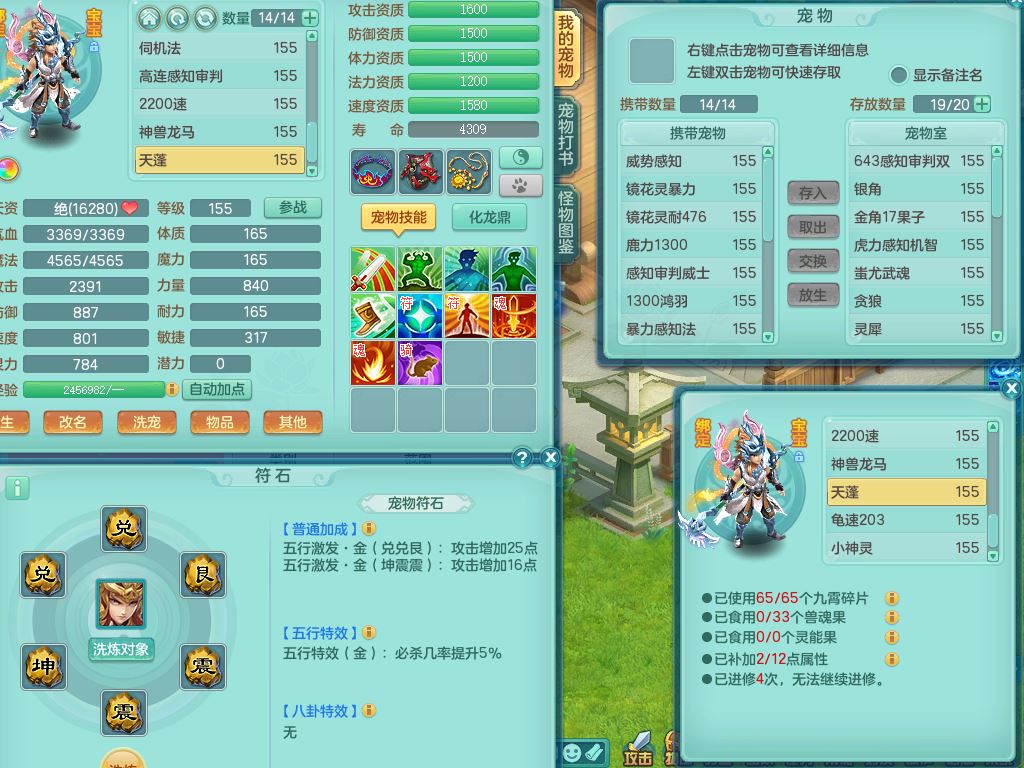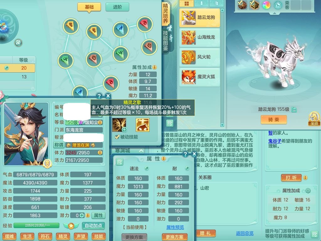 jt10183九天揽月159男龙宫【潜龙号】精灵歌,2龙1内(1龙马)2镜花1龙姬1望归1炉子1双星1宠皮,11觉醒7六字5四字综合20只满果子,8红装备,Y移魂项链,幸运5烽火腰带,Y激励帽子,震怒疾速腰带,鼎5.5+70+280,2套符石,永久外观饰物、精灵皮肤,52个内丹碎片,1双人坐骑