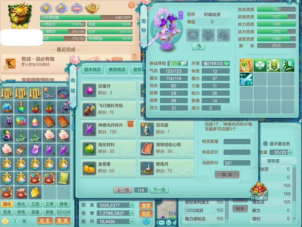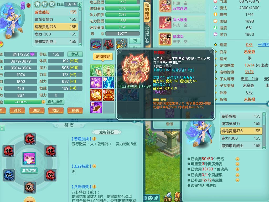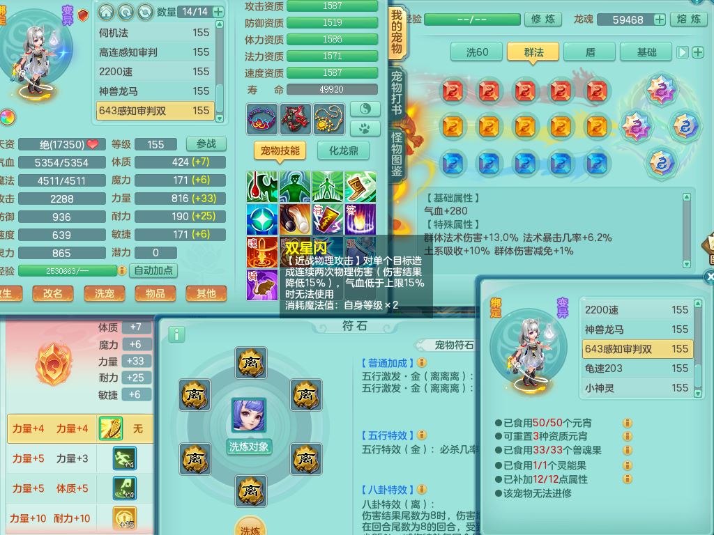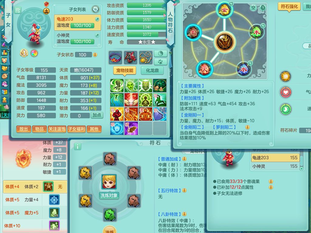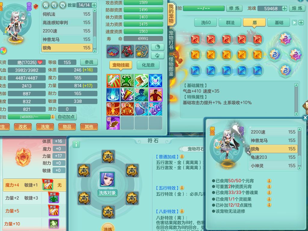 jt10183九天揽月159男龙宫【潜龙号】精灵歌,2龙1内(1龙马)2镜花1龙姬1望归1炉子1双星1宠皮,11觉醒7六字5四字综合20只满果子,8红装备,Y移魂项链,幸运5烽火腰带,Y激励帽子,震怒疾速腰带,鼎5.5+70+280,2套符石,永久外观饰物、精灵皮肤,52个内丹碎片,1双人坐骑