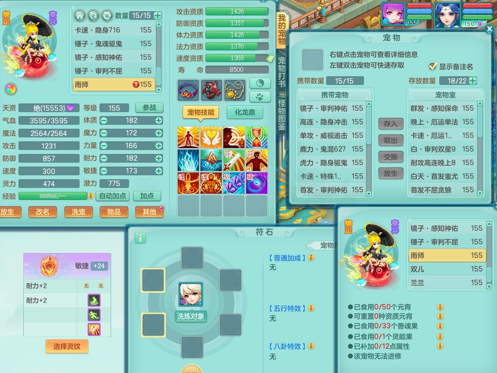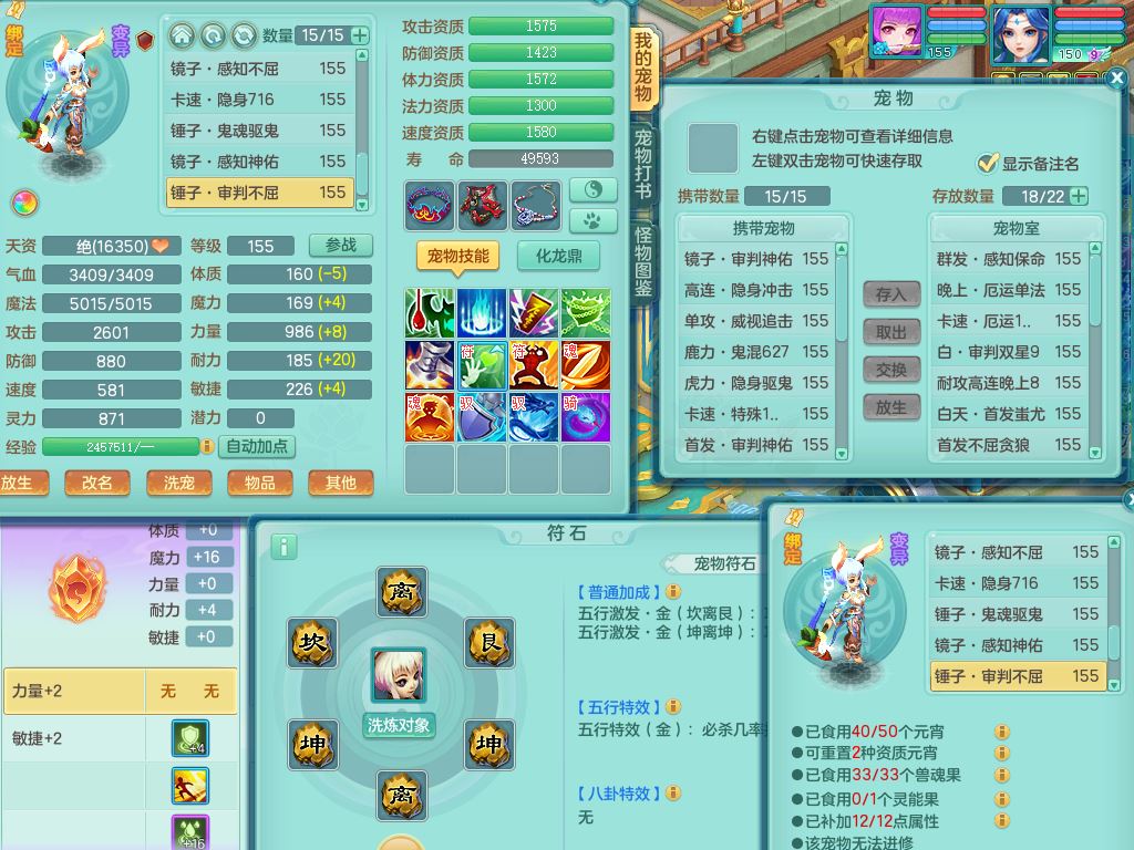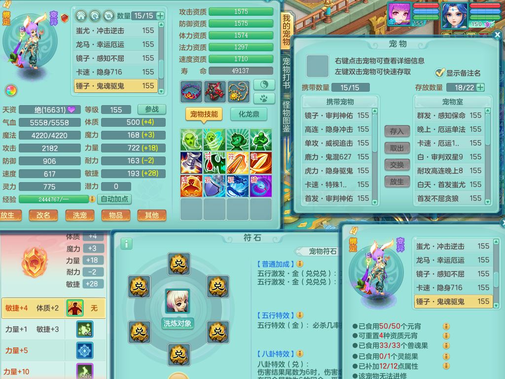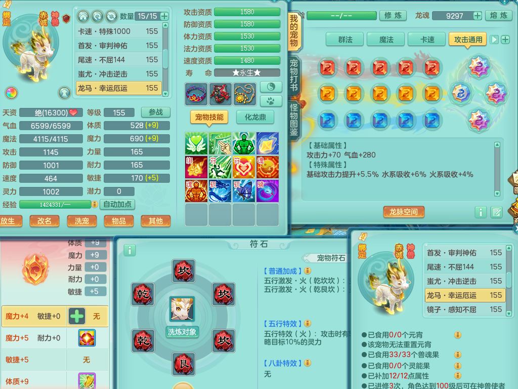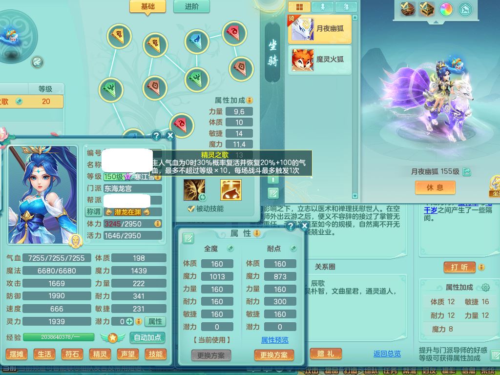 lt10179龙腾九州159女龙宫【潜龙号】精灵歌,2龙(1龙无内)1内丹龙马6特殊(墨守/琴音/双星/月光/怒破/夺命)4镜花灵2龙姬,17只满果子10觉醒7个纯6字,全身单加,Y晶清衣服,262Y绝幻项链,五雷腰带,四灵鞋,鼎5.5+70+280,30天月卡,庭院177房屋188,精灵皮肤,26内丹碎片,宠排在榜,幽狐坐骑