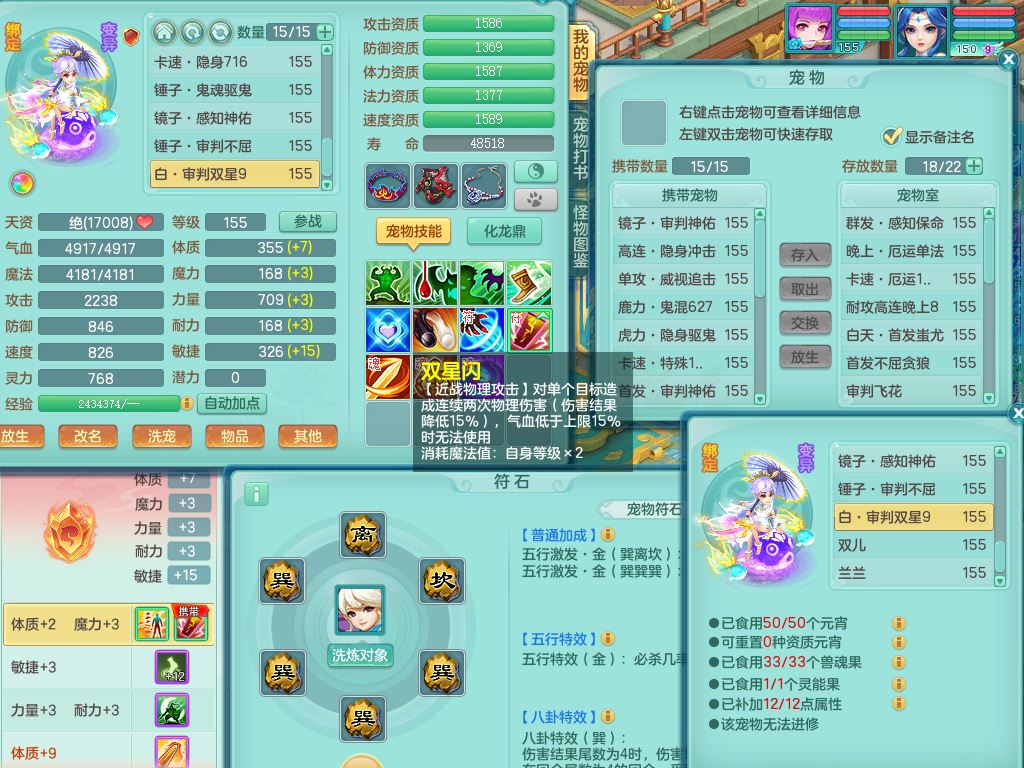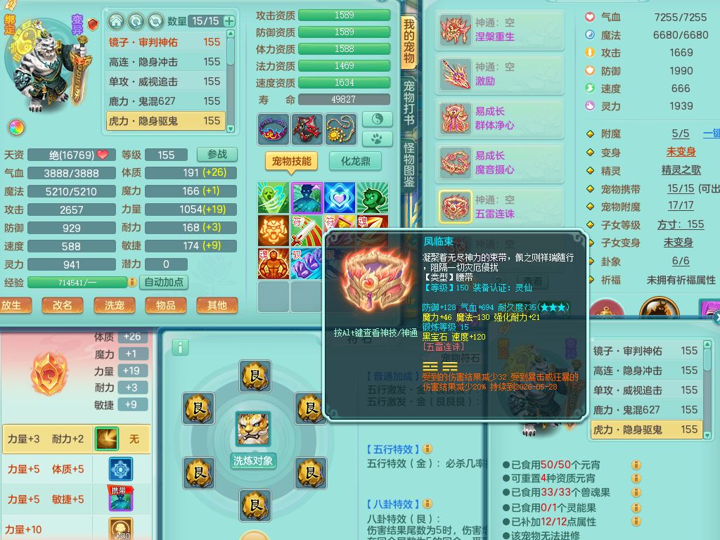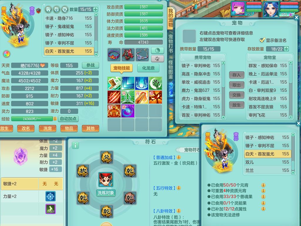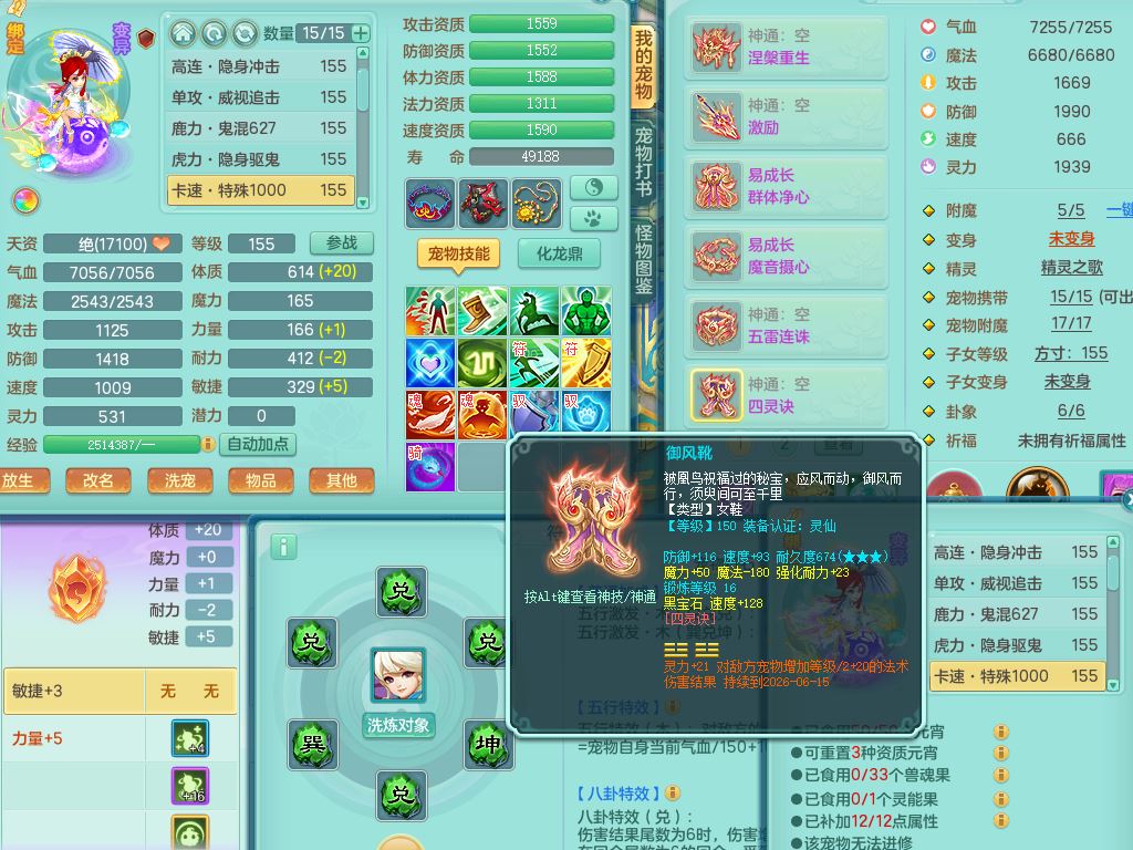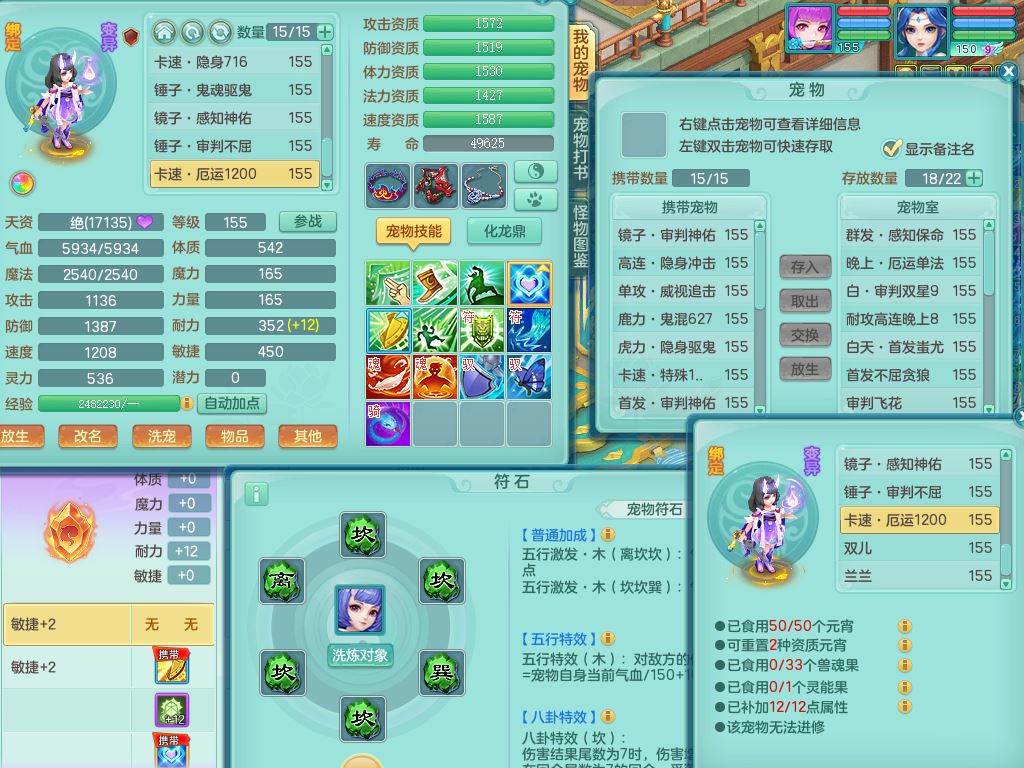 lt10179龙腾九州159女龙宫【潜龙号】精灵歌,2龙(1龙无内)1内丹龙马6特殊(墨守/琴音/双星/月光/怒破/夺命)4镜花灵2龙姬,17只满果子10觉醒7个纯6字,全身单加,Y晶清衣服,262Y绝幻项链,五雷腰带,四灵鞋,鼎5.5+70+280,30天月卡,庭院177房屋188,精灵皮肤,26内丹碎片,宠排在榜,幽狐坐骑