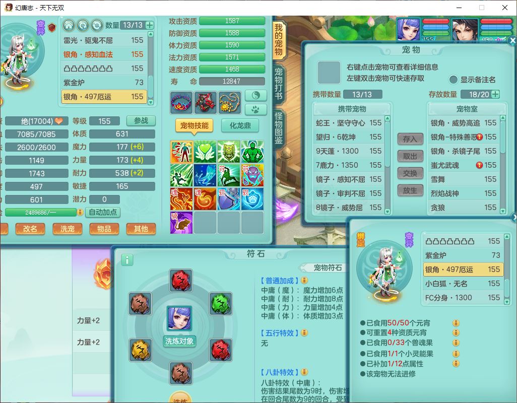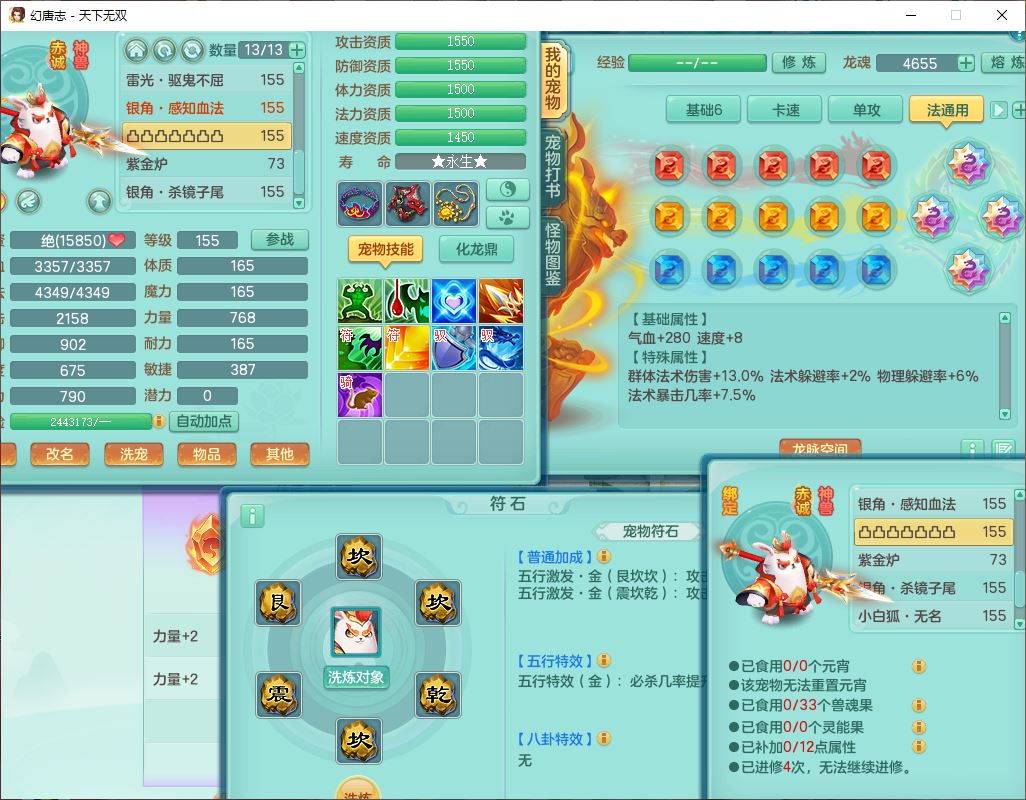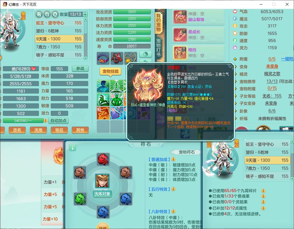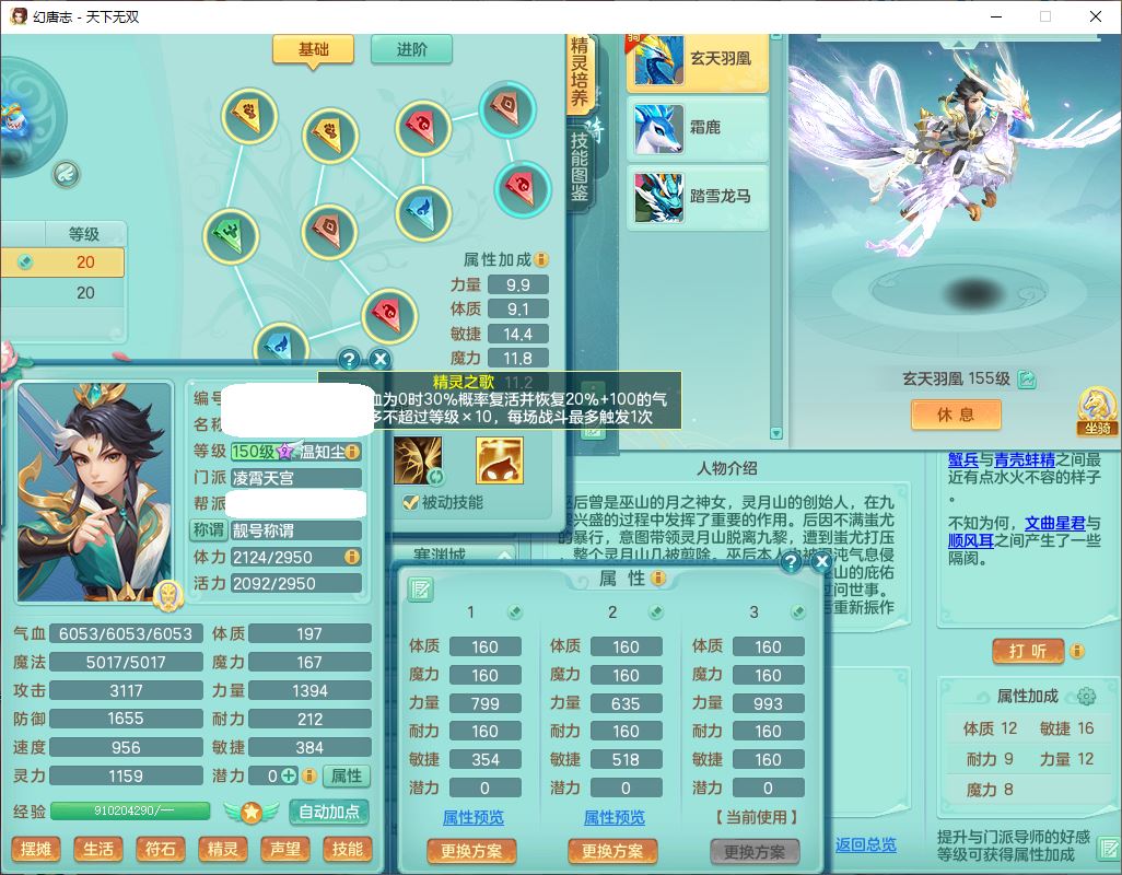 tx10199天下无双159男天宫精灵歌,4位靓号,1内丹青蛇1神兽(无内)1望归3镜花1龙姬1金炉1特殊(善恶),4觉醒1六字2五字7四字综合10只满果子,装备齐全,崩山帽子,930单加Y武器,格挡衣服,神佑项链,仓库法缭衣服,幸运慈航鞋子,鼎6.0+70+280,化龙鼎满足潜龙要求,56天月卡,31个仙兽灵,1双人飞行坐骑