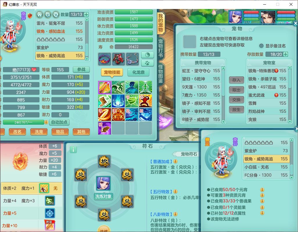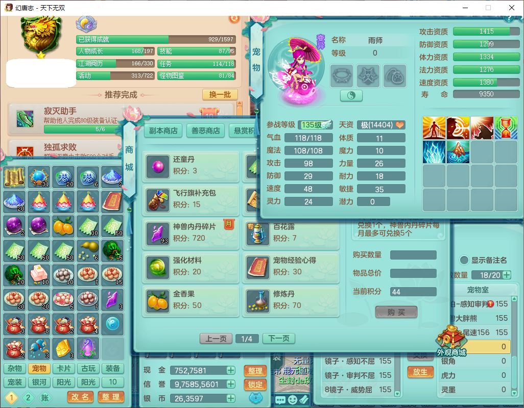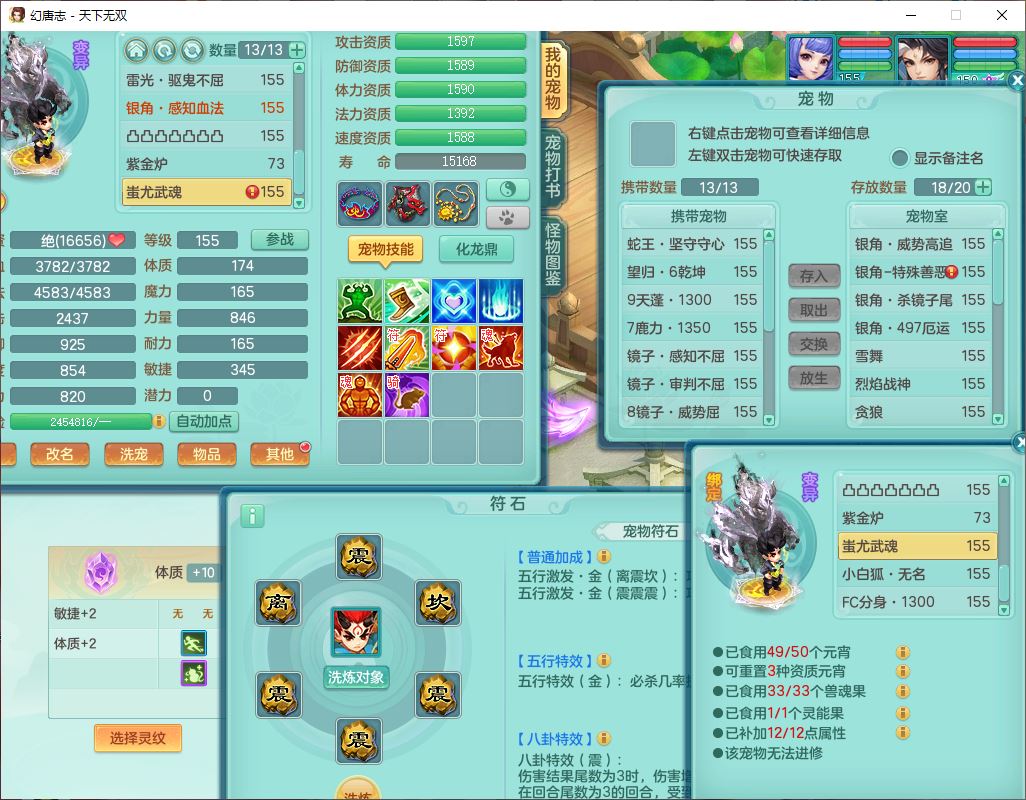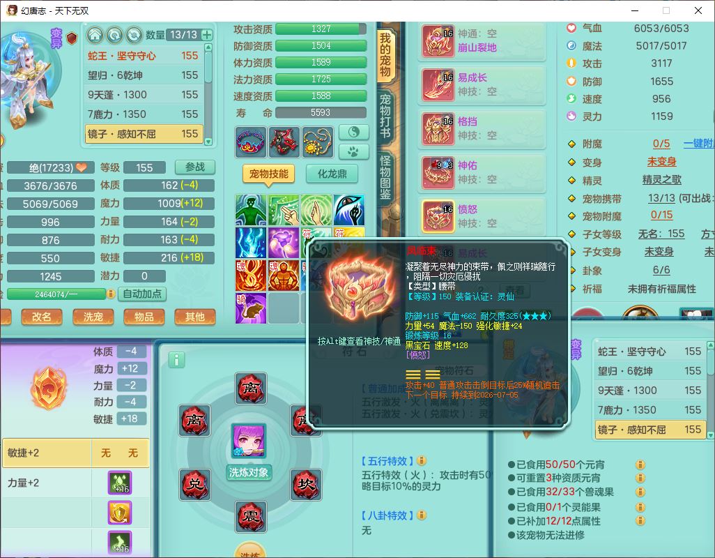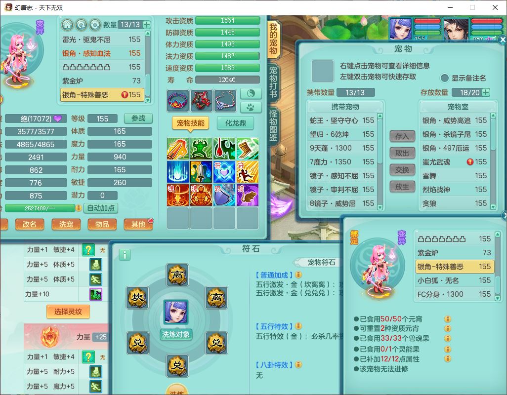 tx10199天下无双159男天宫精灵歌,4位靓号,1内丹青蛇1神兽(无内)1望归3镜花1龙姬1金炉1特殊(善恶),4觉醒1六字2五字7四字综合10只满果子,装备齐全,崩山帽子,930单加Y武器,格挡衣服,神佑项链,仓库法缭衣服,幸运慈航鞋子,鼎6.0+70+280,化龙鼎满足潜龙要求,56天月卡,31个仙兽灵,1双人飞行坐骑