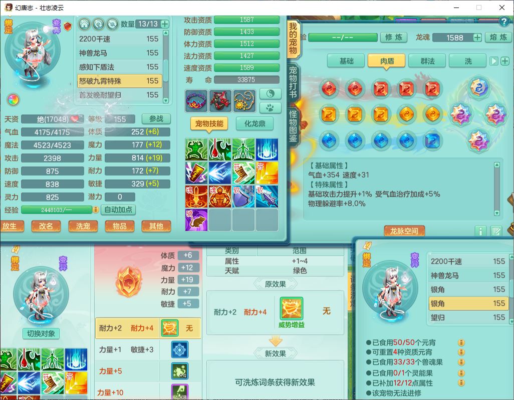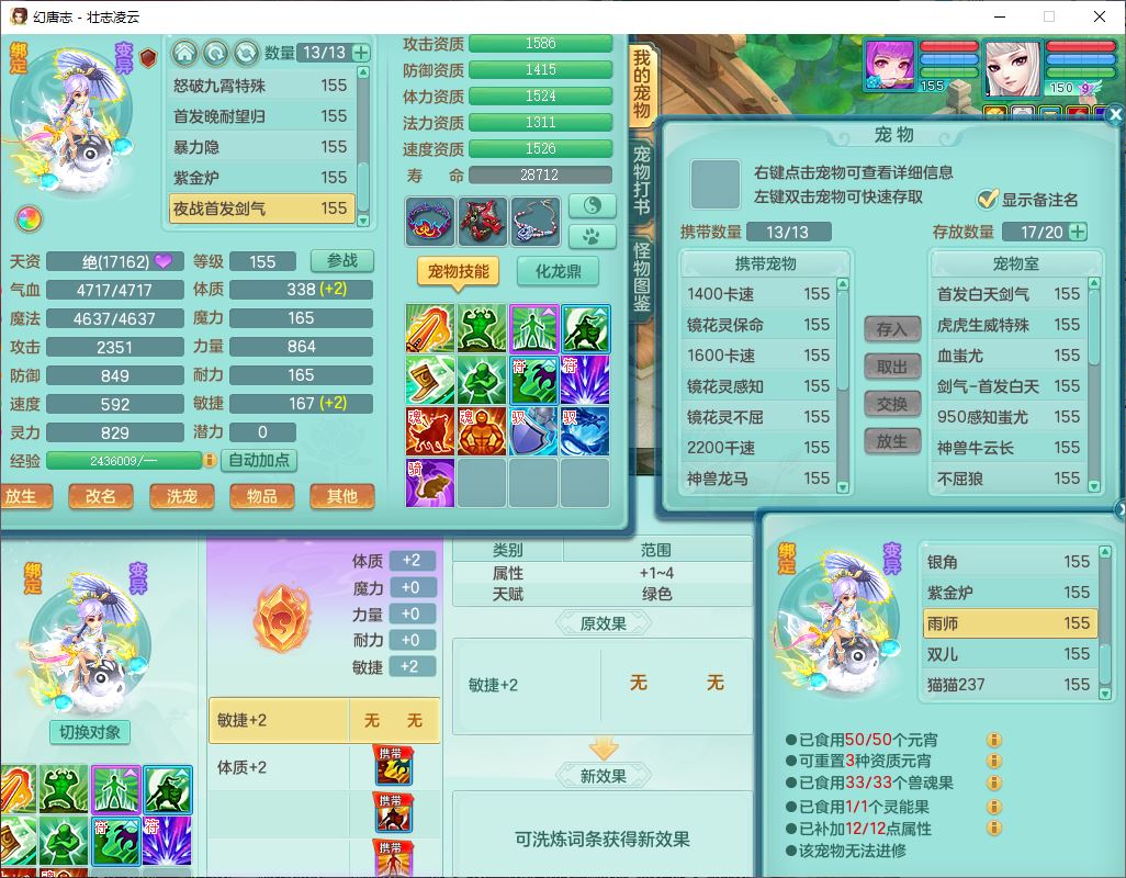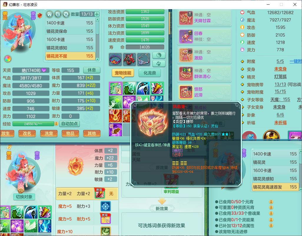 zz10206壮志凌云159女灵月精灵舞,1内1龙马(无内)3镜花1望归2特殊(怒破、虎虎)1龙姬,7觉醒1宠皮综合14只满果子,8红装备,回春武器,愤怒迟滞腰带,Y罗汉鞋子,鼎4.5,64天月卡,庭院170房屋172,永久外观、精灵皮肤,13个仙兽灵,53个内丹碎片,3坐骑(2双人飞行)