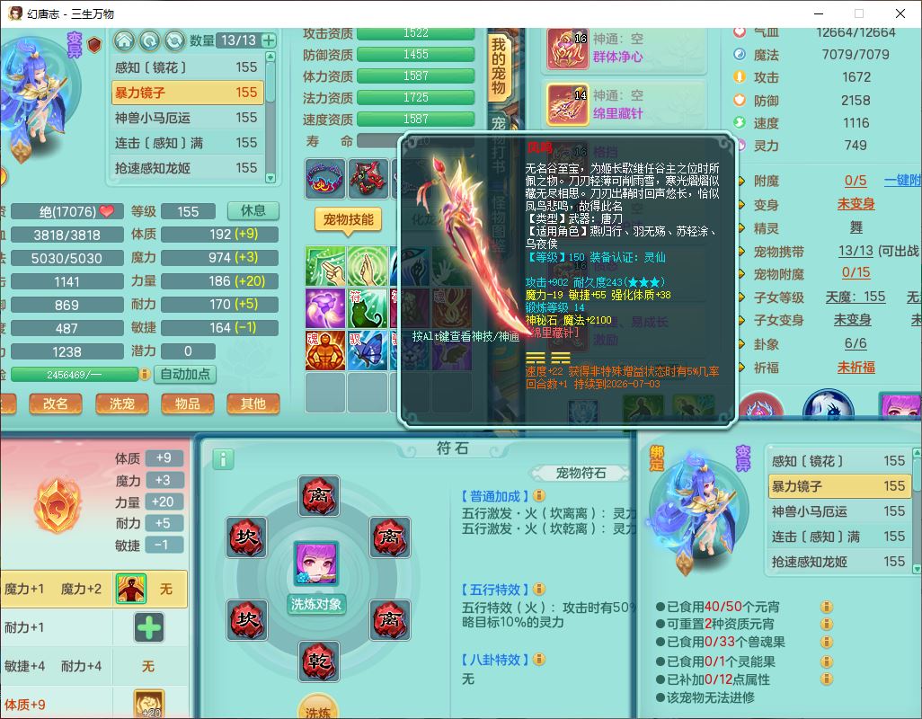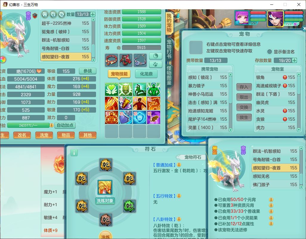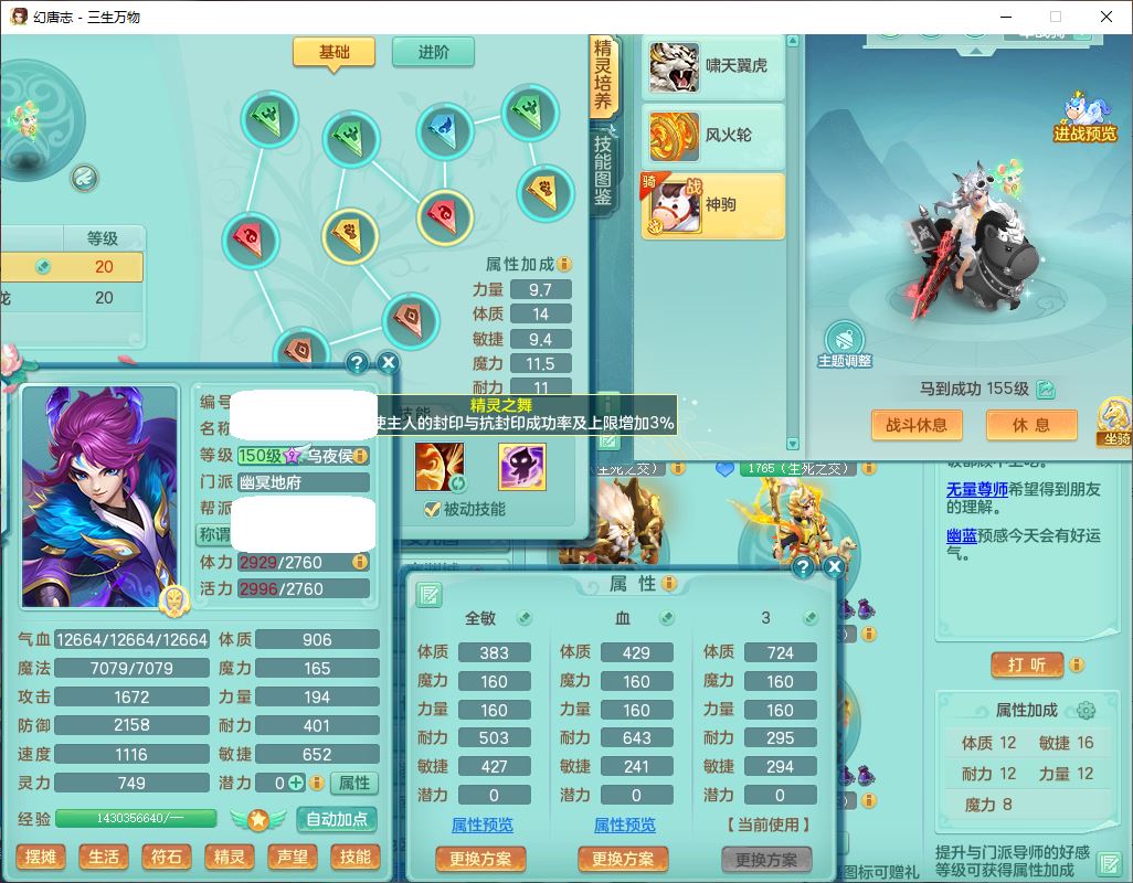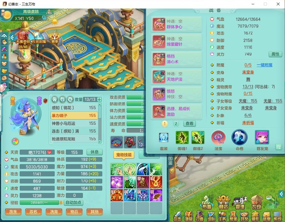 ss10224三生万物159男地府【马到成功+火焰之力】精灵舞,1内丹龙马1望归4镜花2龙姬1金炉2特殊(战争,兽决雷利),4觉醒1五字9四字综合9只满果子,9红星辰之拥装备,格挡水清衣服,迅捷Y激励鞋子,仓库多装备,可搭星辰之拥物理装,破甲破魔帽子,狂暴Y武器,鼎5.0+70,183天月卡,庭院148房屋150,永久外观、精灵皮肤,55个仙兽灵,1双人飞行坐骑