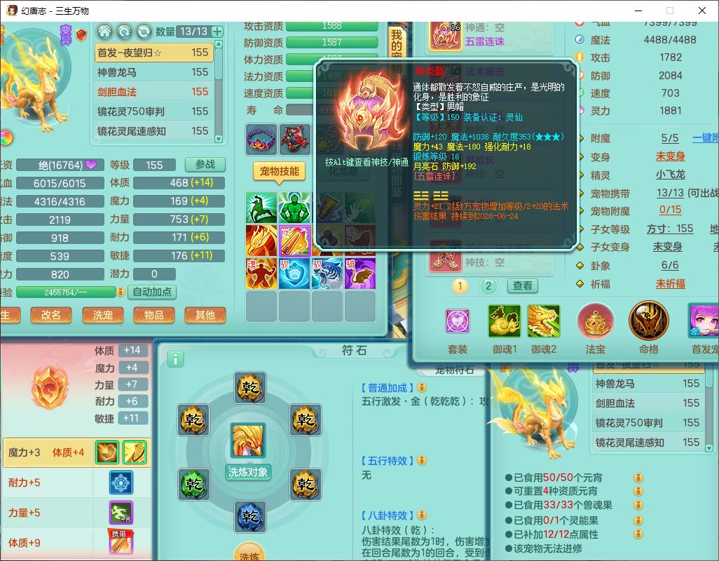 ss10225三生万物159男龙宫【马上发财+火焰之力】精灵舞,5位靓号,1内丹青蛇1龙马(无内)1望归1特殊(剑胆)5镜花1龙姬1金炉,6觉醒1五字6四字综合12只满果子,7红双法缭装备,五雷帽子,法爆武器,法缭衣服,匠心法缭鞋子,271单加Y项链,一套7红辅助装,回春止戈武器,鼎5.5,194天月卡,庭院151房屋148,永久外观、精灵皮肤,40个内丹碎片,2双人坐骑(1飞行)