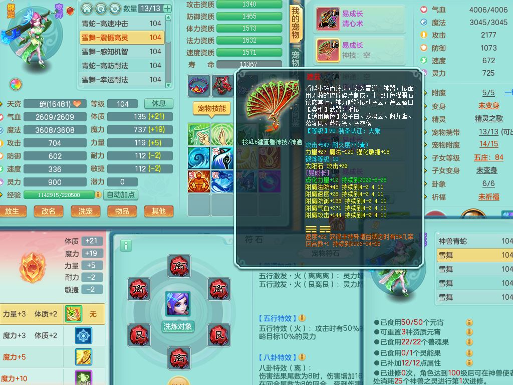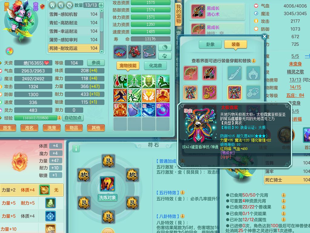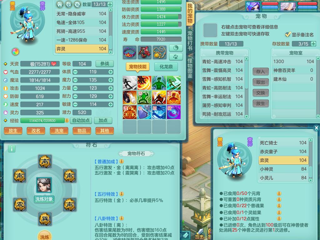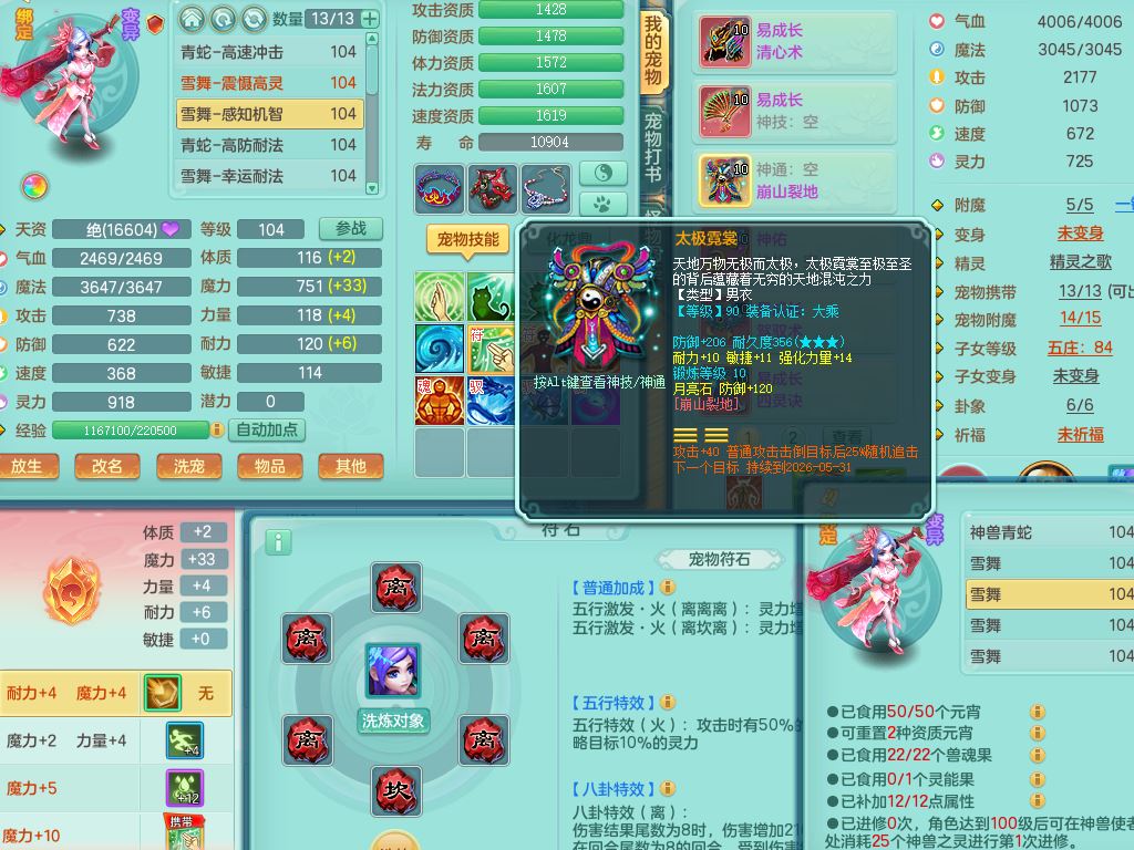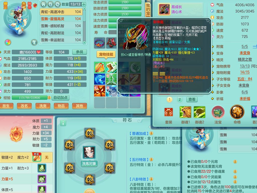tx10230天下无双99男万兽全力精灵,满级共鸣,1内丹青蛇,9只满果子6觉醒2个纯6字,549单加Y武器,Y水清头,崩山衣服,神佑项链,单加Y双红腰带,单加Y双红鞋,仓库幸运五雷衣服,法缭水清鞋,愤怒双红腰带,鼎2.5,52内丹碎片