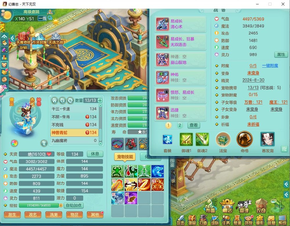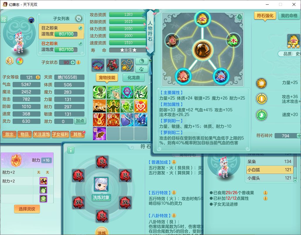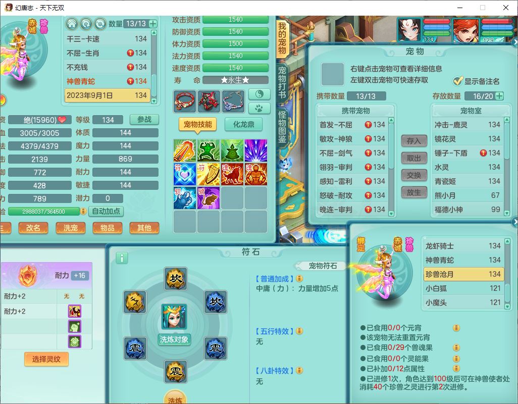 tx10236天下无双129男天策精灵歌,1青蛇(无内)2贪狼1羽袭,3觉醒1六字1五字4四字,宝宝种类齐全,10红装备,Y水清帽子,Y狂暴破血武器,崩山衣服,愤怒Y腰带,鼎4.0,33个内丹碎片,7个仙兽灵,1双人飞行坐骑