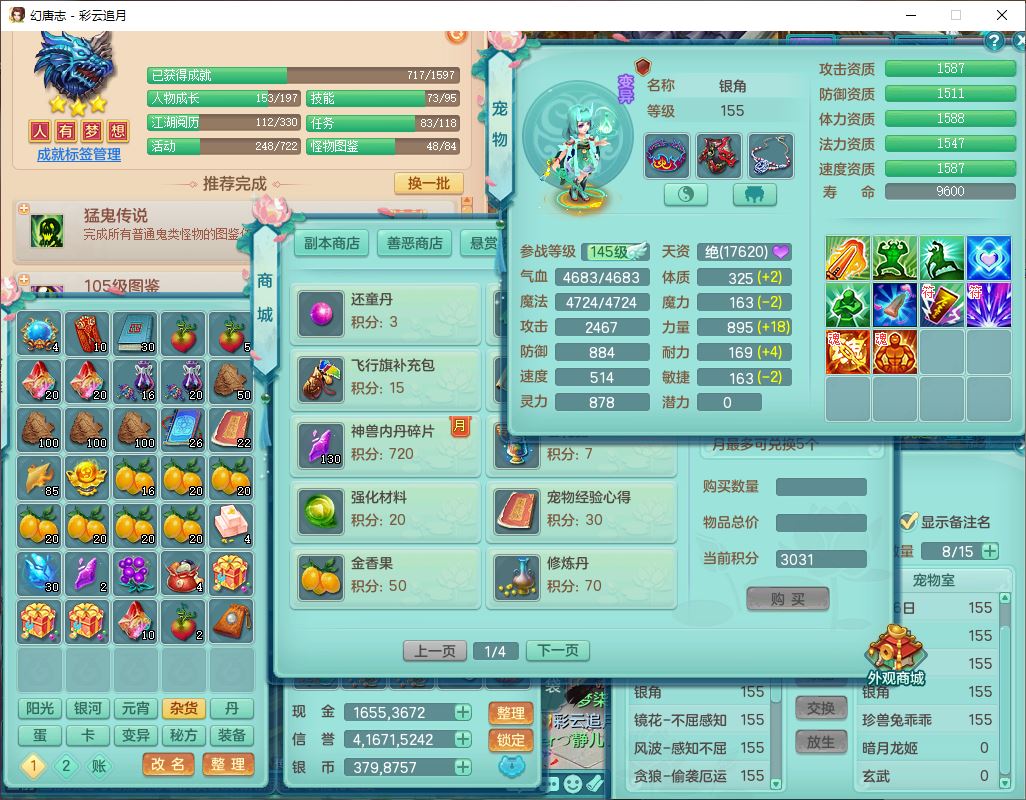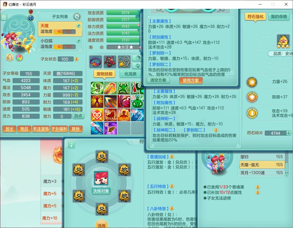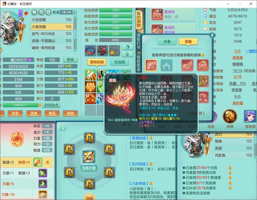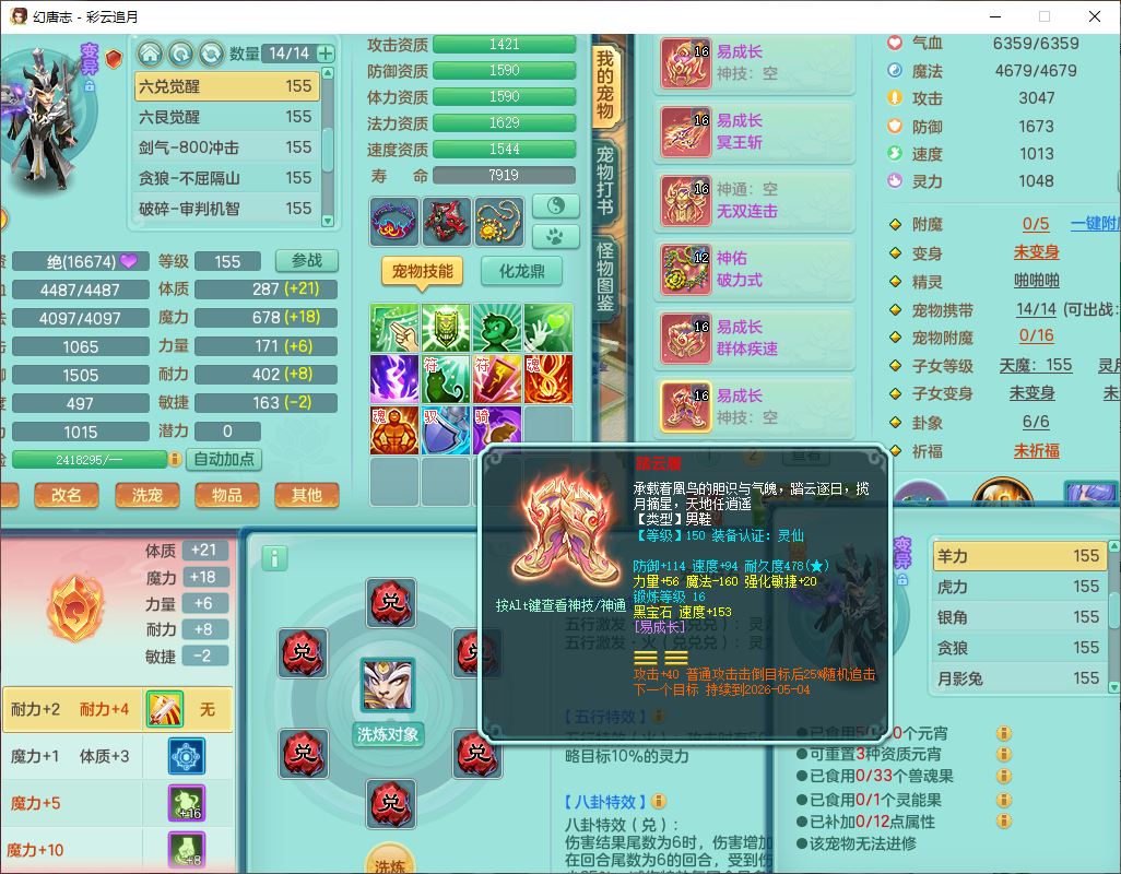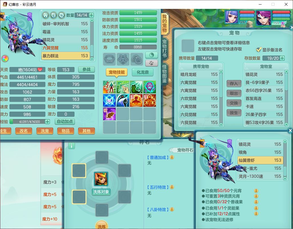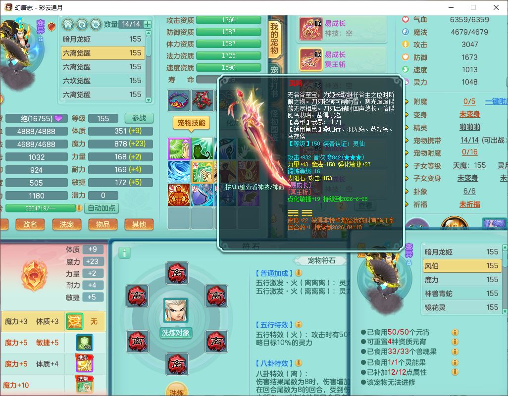 cy10238彩云追月159男万兽【潜龙号】精灵怒*2,1龙(无内)1内丹青蛇1龙姬1望归3镜花,8觉醒1宠皮7六字1五字9四字综合14只满果子,9红装备,932单加Y冥王武器,Y群体疾速腰带,法爆心神武器,鼎5.0+70+280,法爆8.7,2套符石,11个内丹碎片,1双人飞行坐骑;带159成品男五庄准精灵歌,1镜花1特殊(剑胆)8红装备,370多w神武币;带3个150奶粉