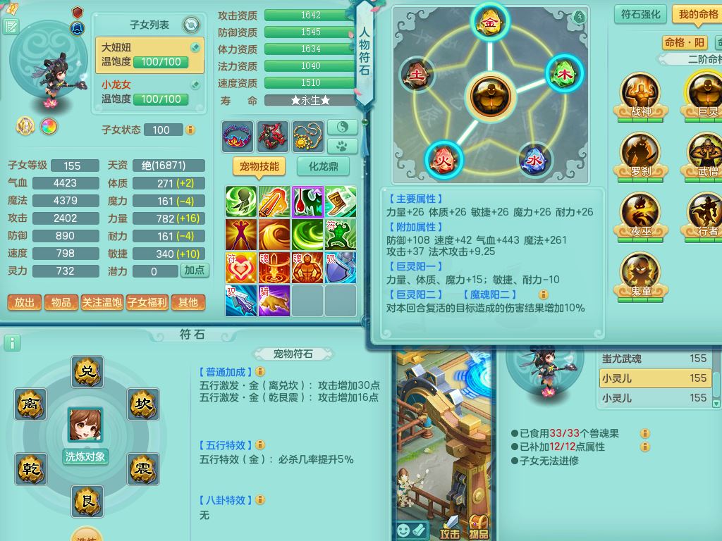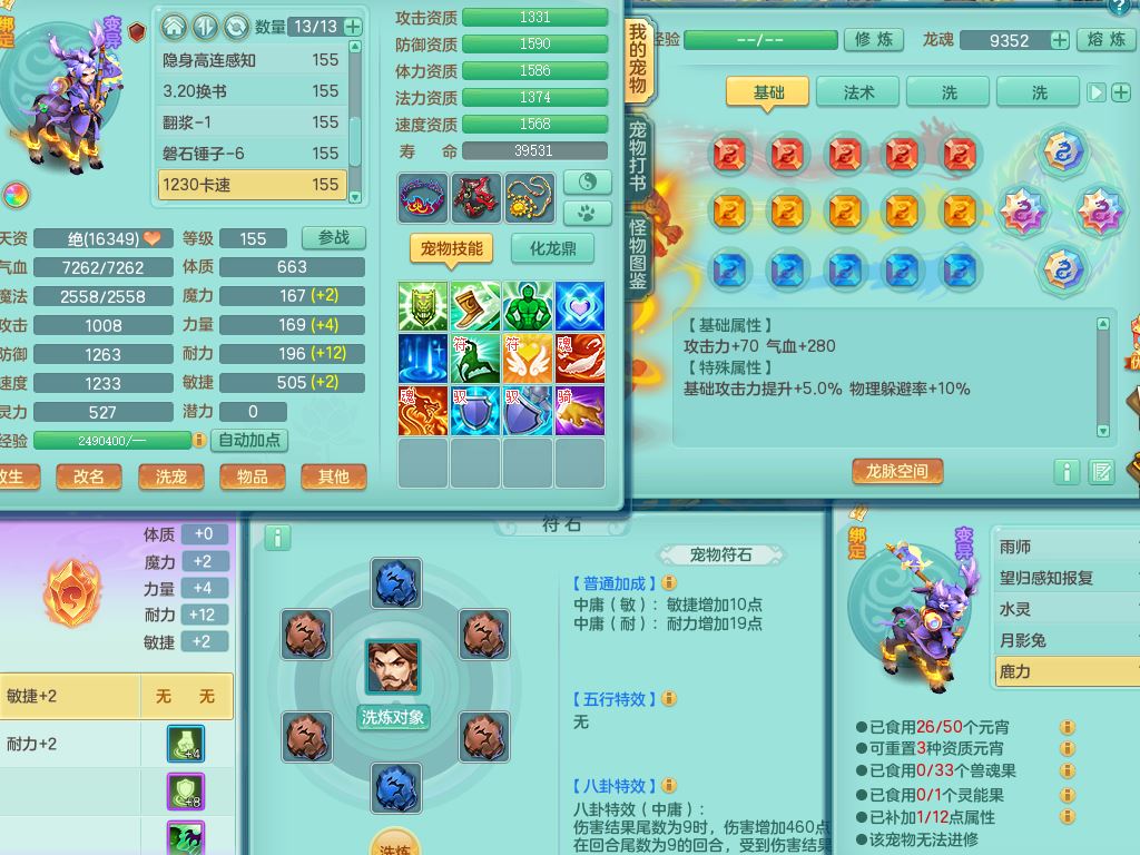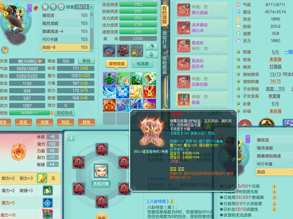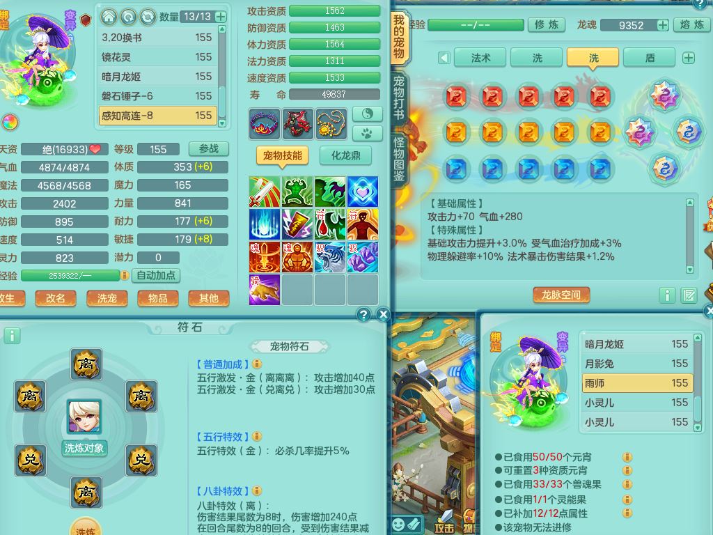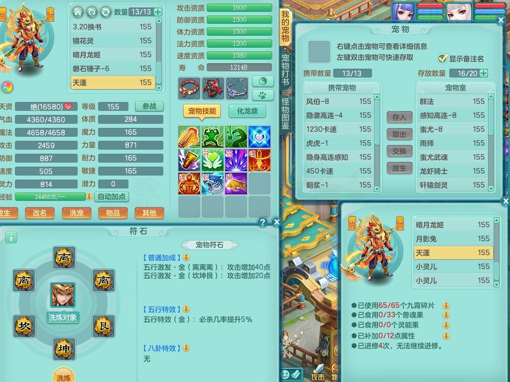 jt10250九天揽月159女魔王【潜龙号】精灵歌,1龙(无内)4特殊(虎虎/影袭/兽决焚心/荒古)2镜花灵1龙姬,13只满果子8觉醒7个纯6字,全身单加,法爆水清武器,256Y双红项链,鼎5.0+70+280,17天月卡,永久头饰精灵皮肤,34内丹碎片,飞行烛龙坐骑,带3个150奶粉