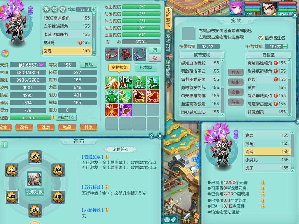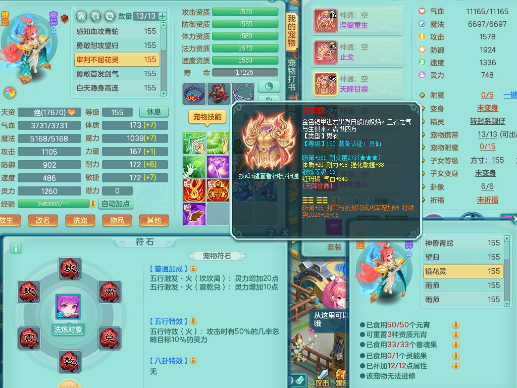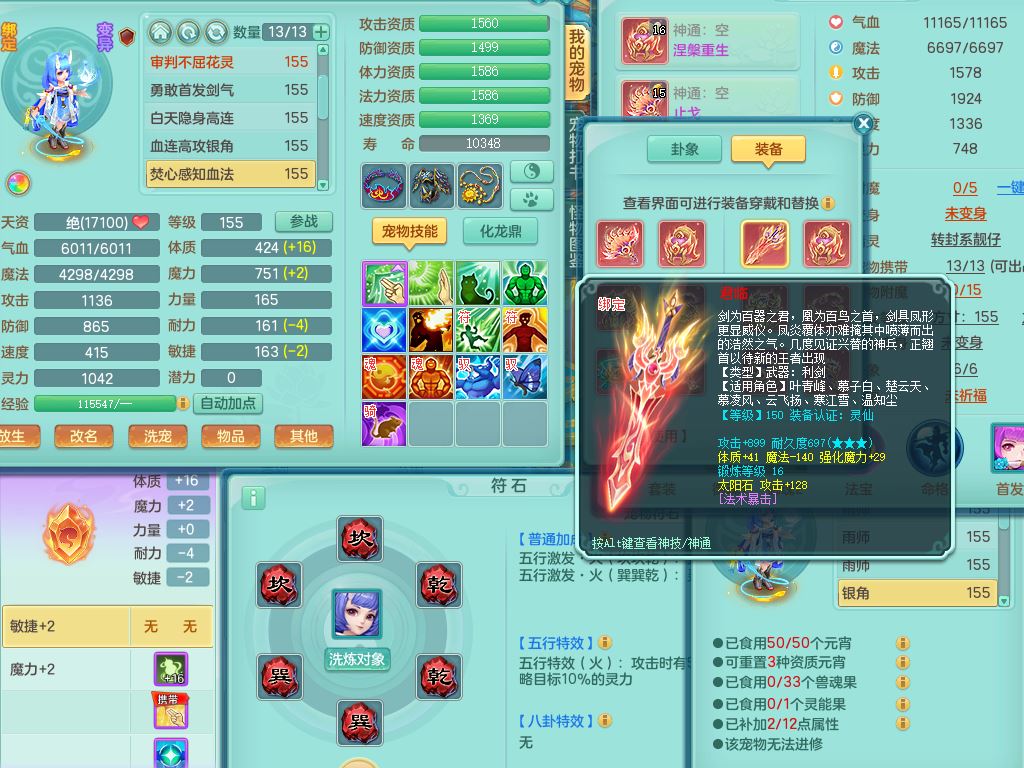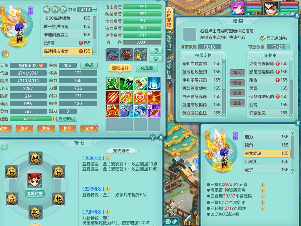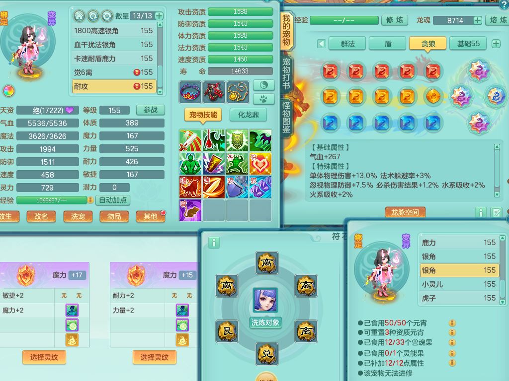 rj10262任剑逍遥159男方寸精灵舞,1内丹青蛇3特殊(焚心/影袭/藕断兽决)11只满果子5觉醒2个纯6字,愤怒5特,单加愤怒Y腰带,法系单加法爆武器,单加Y衣服,253单加Y项链,鼎5.5,2套符石,永久头饰,双人坐骑