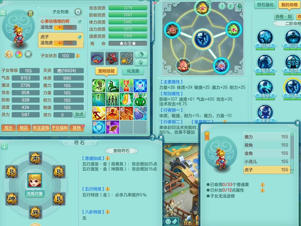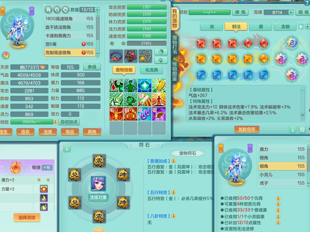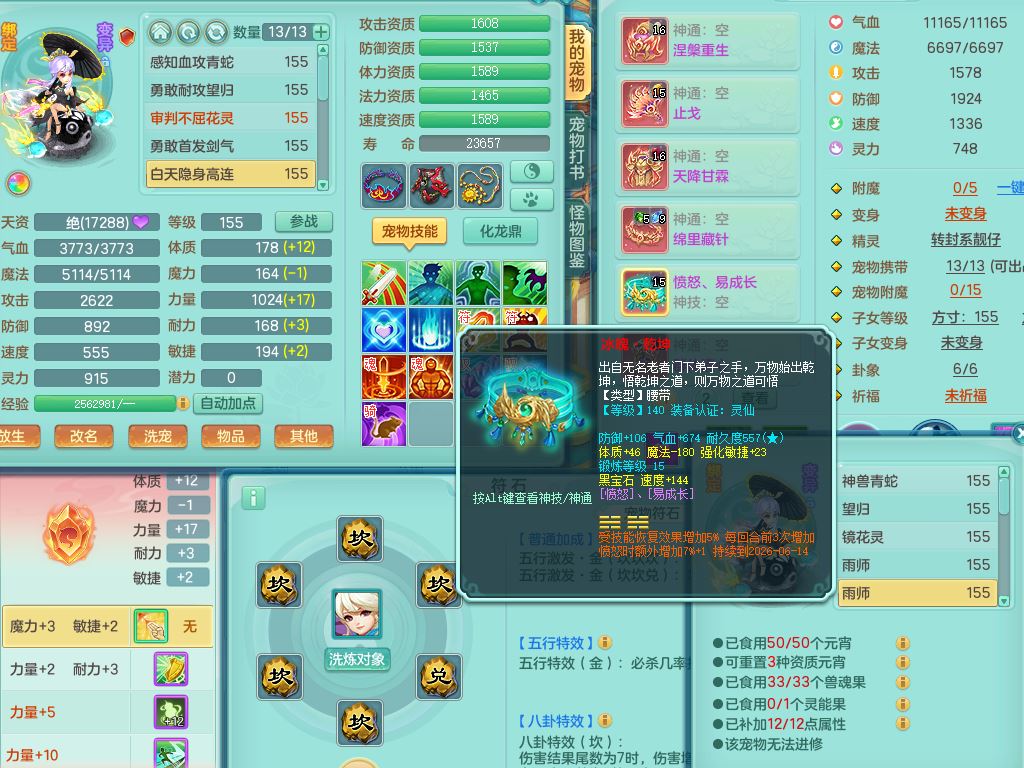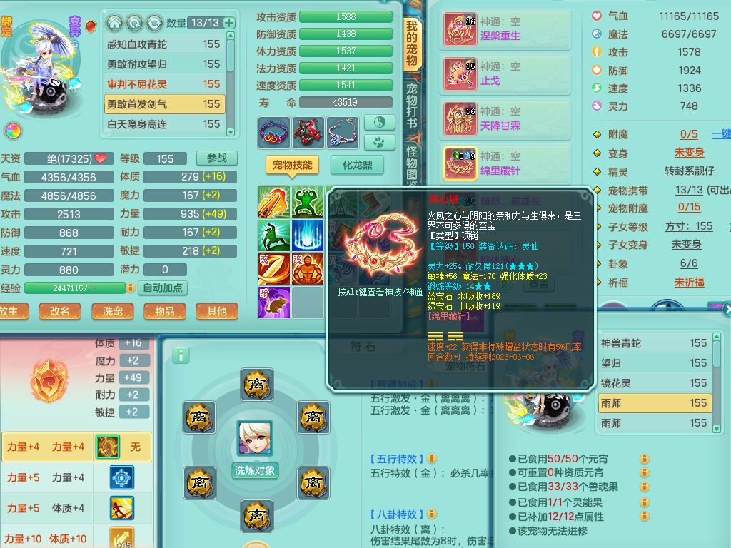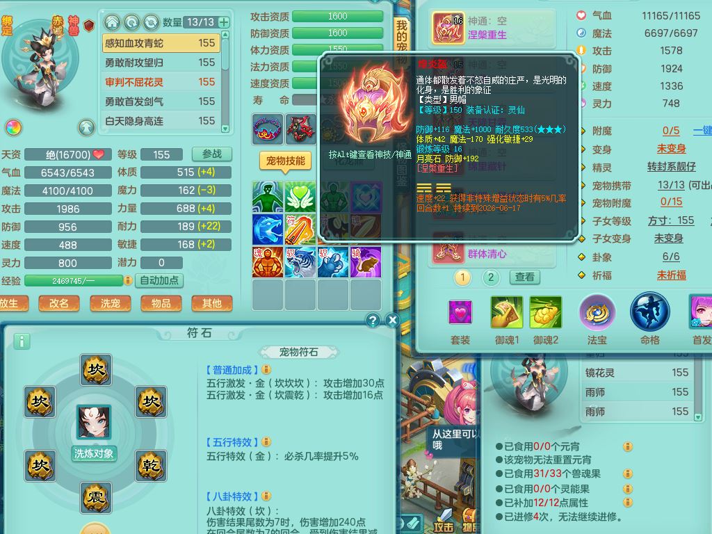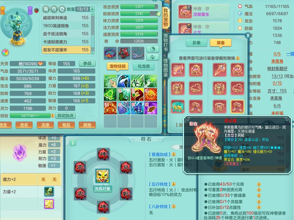 rj10262任剑逍遥159男方寸精灵舞,1内丹青蛇3特殊(焚心/影袭/藕断兽决)11只满果子5觉醒2个纯6字,愤怒5特,单加愤怒Y腰带,法系单加法爆武器,单加Y衣服,253单加Y项链,鼎5.5,2套符石,永久头饰,双人坐骑