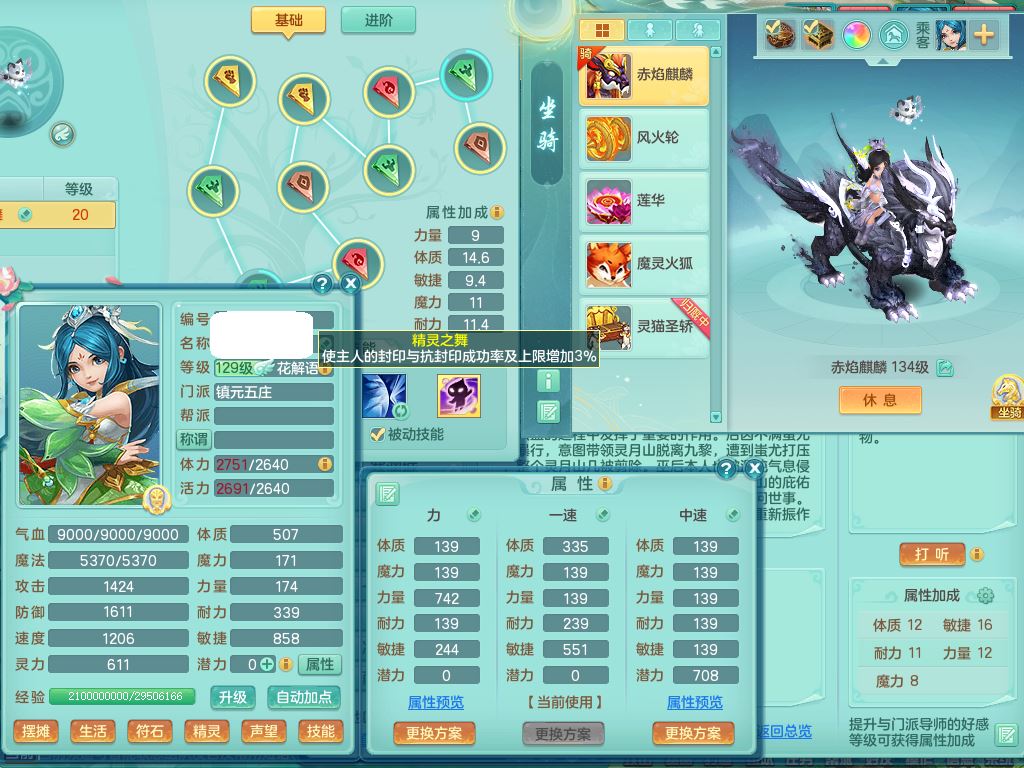 jx10295锦绣河山129女五庄精灵舞,1内丹龙2内丹神1皮,12只满果子7觉醒4个纯6字,10红星辰之拥,封印群体守备头,药师慈航项链,愤怒Y,迅捷Y,物理719单加必杀武器,Y破血衣服,Y精准头,鼎4.0+56,2套符石,庭院159,永久头饰精灵皮肤,61仙兽灵,27内丹碎片,宠排在榜,2只双人坐骑