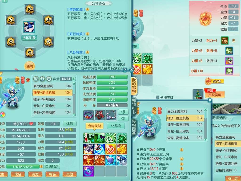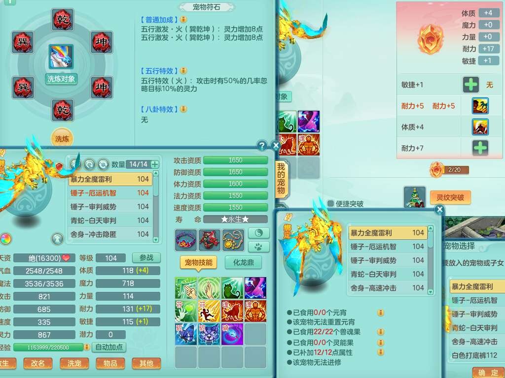 S22187生日快乐99男天宫,1龙没内,3内胆神,1破镜,8只觉醒(3只潜龙BB,化龙鼎满足,符石只差3个附加),4宠皮,法爆单加34武器,五雷头,匠心易成长单加衣服,163易成长单加33项链,法缭鞋子,物理双破甲,破甲群体守备单加34头,易成长必杀武器,崩山衣服神佑项链都有,2.5基础鼎+42攻+168血,4个纯六字,2个五字,23只满果子,宠排在榜,仓库30神兽内丹碎片,3个坐骑,暴龙洪荒+西瓜冰武器皮肤。带1个153奶粉。