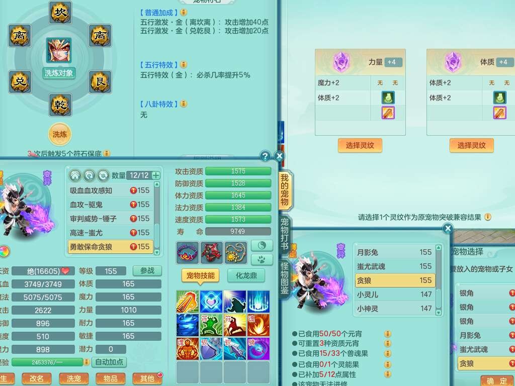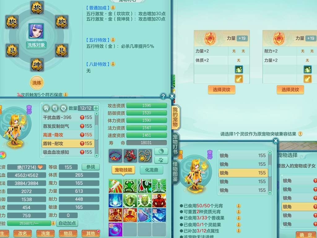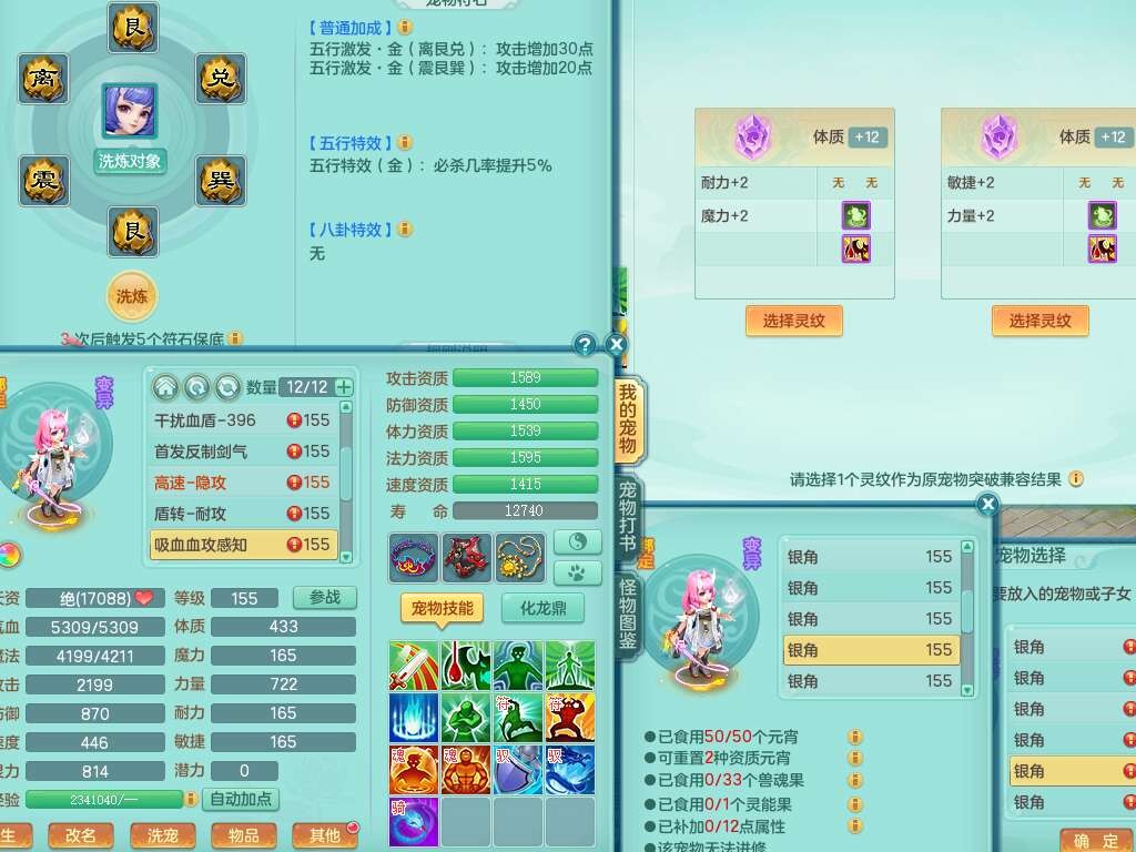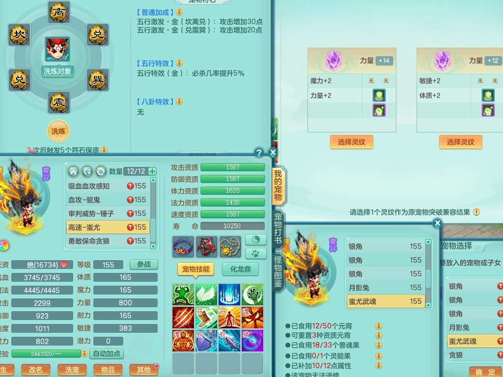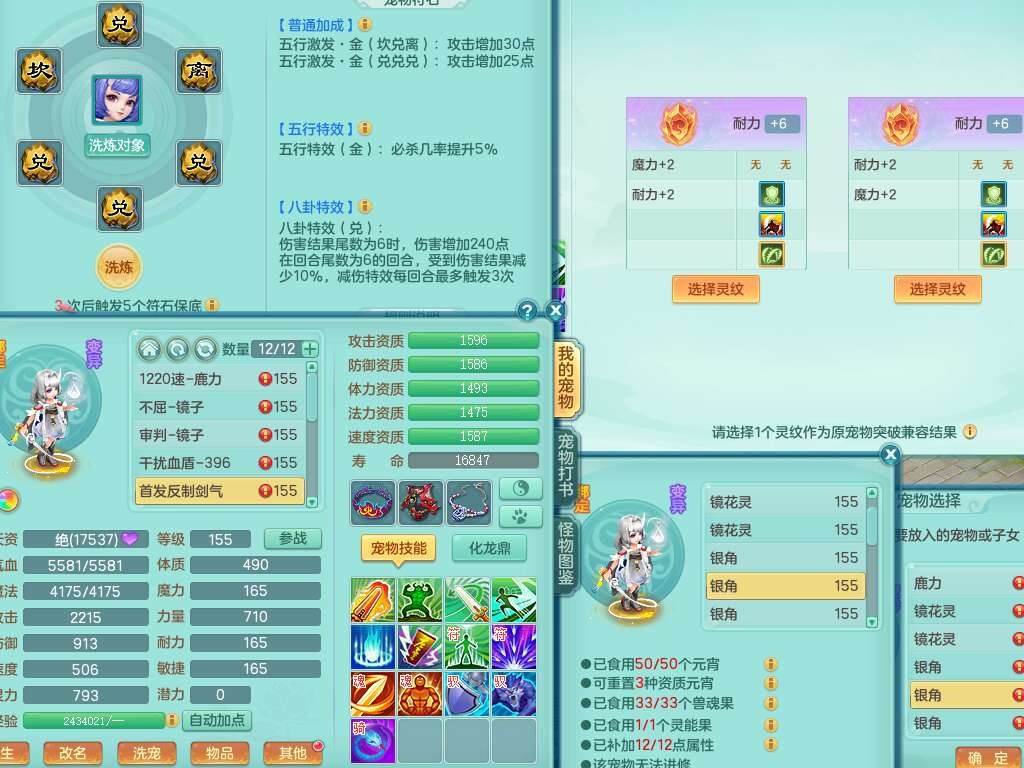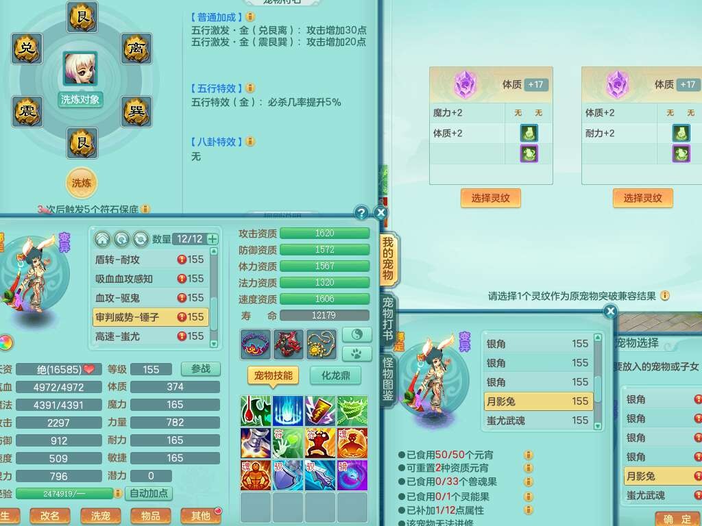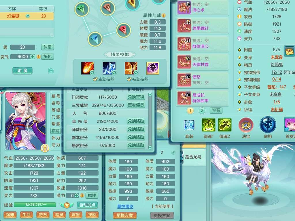 K22178龙腾九州三开号,159女盘丝,精灵舞,2只六技能镜花灵,愤怒单加56腰带,易成长群体卸甲单加57鞋子,五特,有套物理装备,崩山单加53头,923狂暴单加武器,破血单加50衣服,5.0基础鼎,1只满果子,双人坐骑。➕159女普陀,精灵歌,1神兽+19个神兽内丹碎片,2只觉醒,2只六技能镜花灵,3特殊(祈雨,焚心,飞花),回春武器,仓库有封锁武器,6.0基础鼎+70攻,月夜幽狐坐骑,有39个仙兽蛋。➕159男方寸,精灵舞,1只六技能镜花灵,愤怒5特,4.5基础鼎。