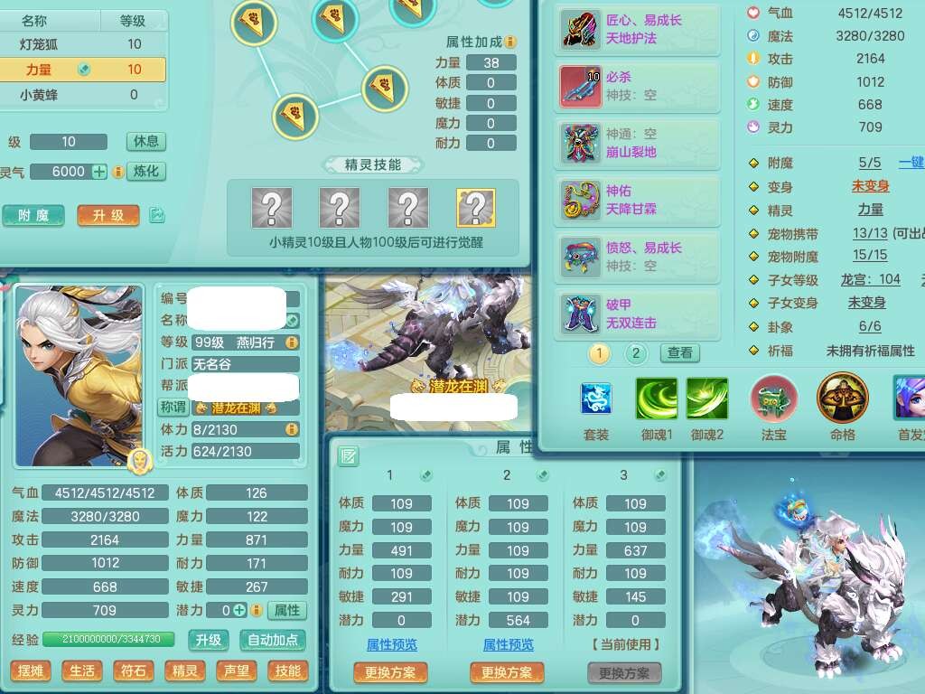 p22170普天同庆99男无名谷,准龙号(背包71仙兽蛋,2内胆神,【11只觉醒,已潜龙】,1宠皮,满攻必杀单加32武器,三红匠心易罗汉头,崩山单加35衣服,神佑慈航链子,愤怒易腰带,破甲破血鞋子,五雷单加31衣服,8个纯六字,18只满果子,背包53神兽内丹碎片,宠排在榜,双人坐骑。➕99男万兽,1内胆神,1只觉醒,背包65仙兽蛋,541必杀易成长武器,迅捷慈航单加鞋子,仓库有161易成长单加链子,回春慈航武器,愤怒群体激励腰带,535击退五雷单加武器,530法暴蓄力一击单加31武器,法缭烽火鞋子,易成长五雷单加头,全门派可玩,2.5基础鼎,综合11只满果子,双人白马。➕129女普陀精灵歌,愤怒笑里单加40腰带,六特,4.0基础鼎,4只满果子,带557W银币。