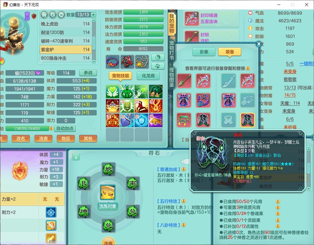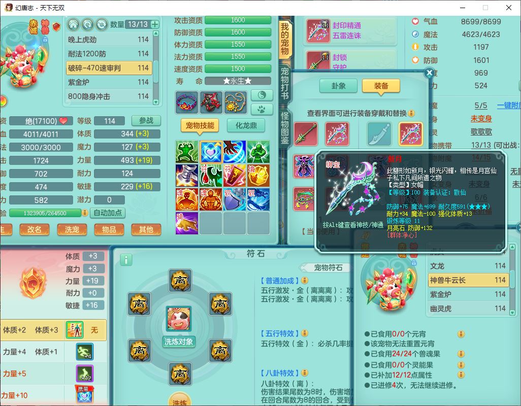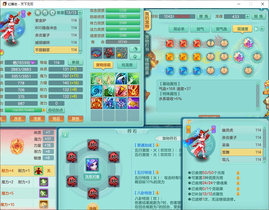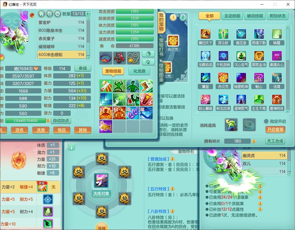 tx10307天下无双109女五庄【潜龙号】精灵舞,1内(破境)1青蛇(无内)1建木2羽袭1金炉1童子,11觉醒12六字2五字6四字16只满果子,11红星辰之拥装备,封印精通五雷帽子,封锁守护武器,神佑笑里项链,愤怒四海腰带,迅捷玉清鞋子,鼎2.5+42+168,2套符石,庭院169房屋158,21个仙兽灵,41个内丹碎片,20个神兽内丹,2坐骑