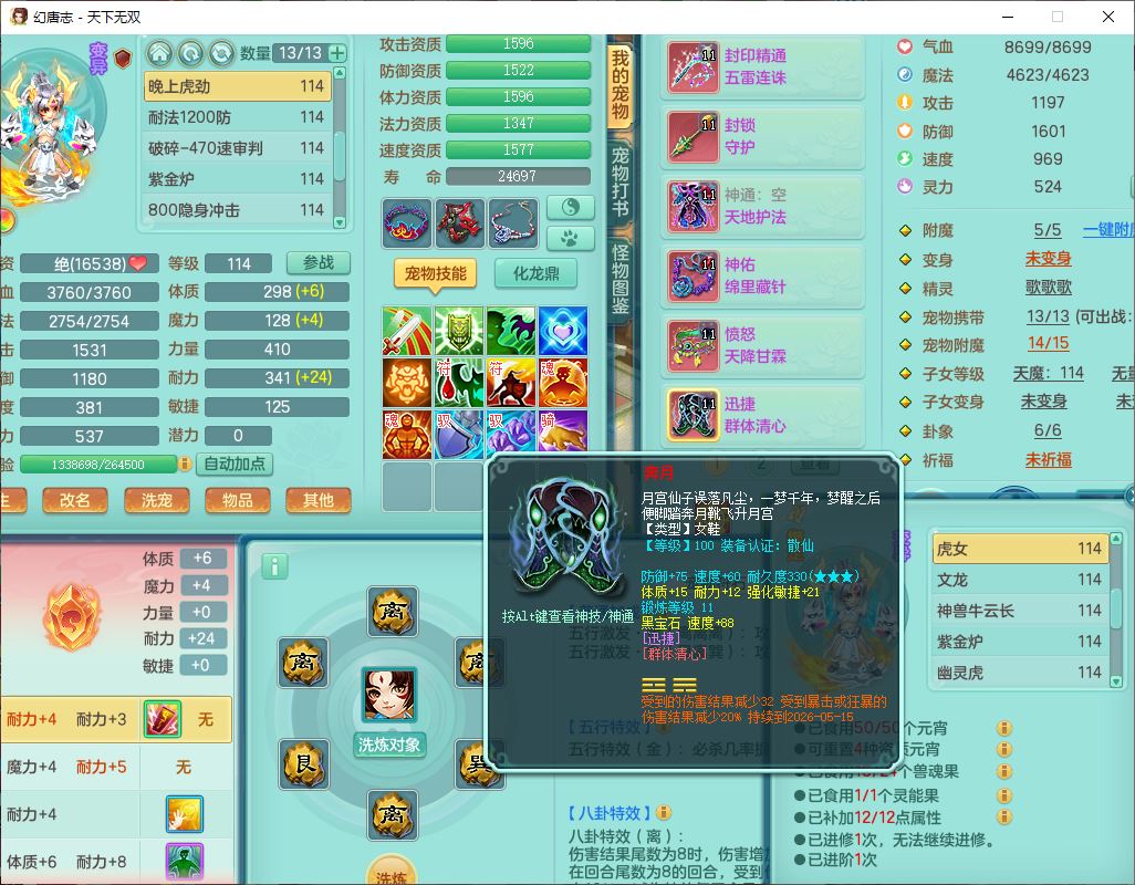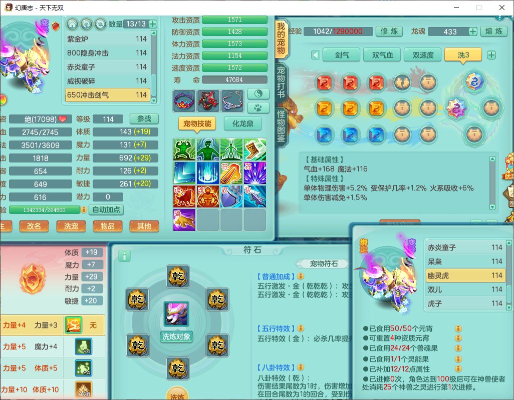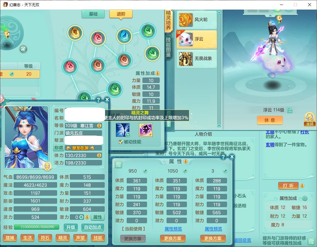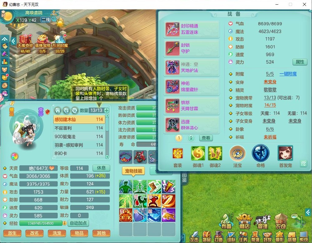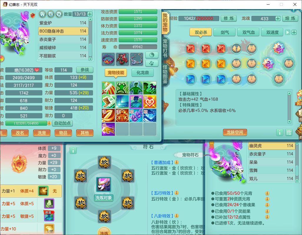 tx10307天下无双109女五庄【潜龙号】精灵舞,1内(破境)1青蛇(无内)1建木2羽袭1金炉1童子,11觉醒12六字2五字6四字16只满果子,11红星辰之拥装备,封印精通五雷帽子,封锁守护武器,神佑笑里项链,愤怒四海腰带,迅捷玉清鞋子,鼎2.5+42+168,2套符石,庭院169房屋158,21个仙兽灵,41个内丹碎片,20个神兽内丹,2坐骑