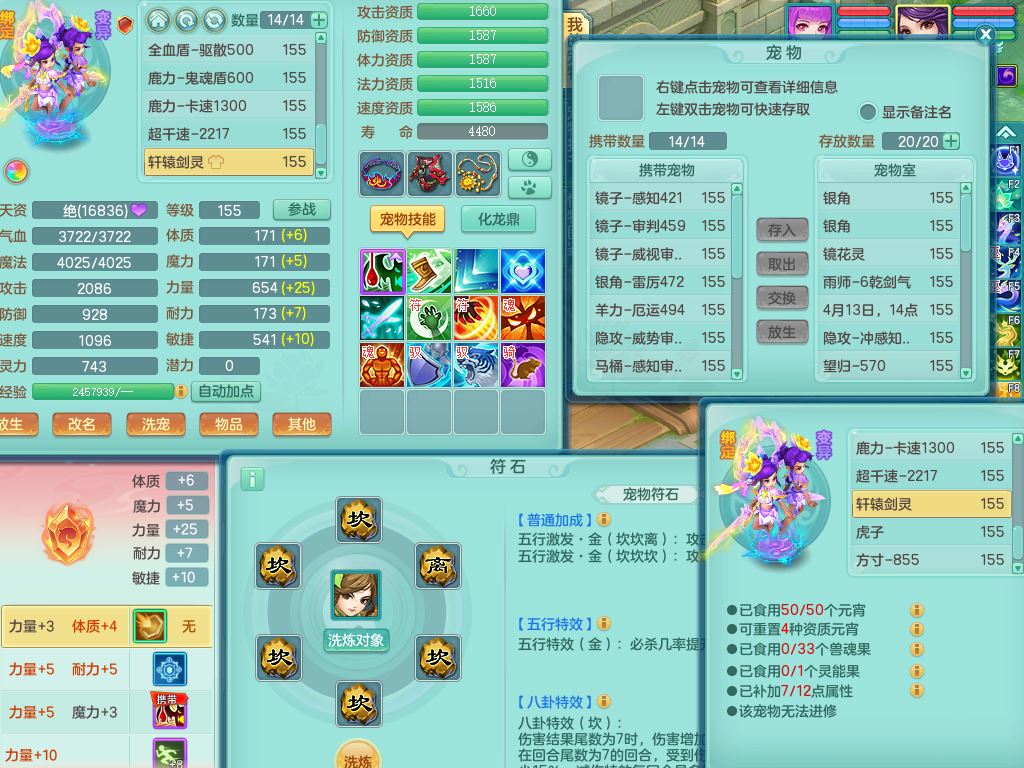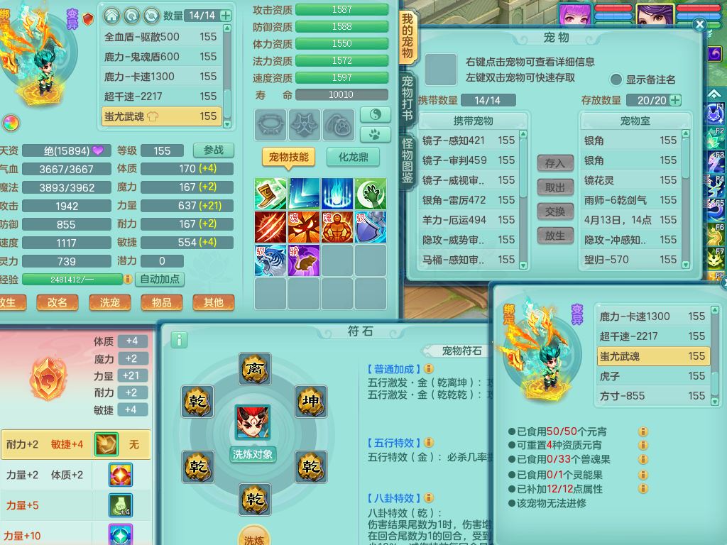 qq10298七窍玲珑159女灵月精灵慑,1内丹青蛇3特殊(雷厉/逆龙/冲锋)5镜花灵2龙姬,10只满果子11觉醒6个纯6字,10红愤怒6特,Y笑里头,幸运四海衣服,愤怒晶清腰带,迅捷流云鞋,仓库回春武器,封印头,鼎5.5+70,52仙兽灵24内丹碎片,双人坐骑