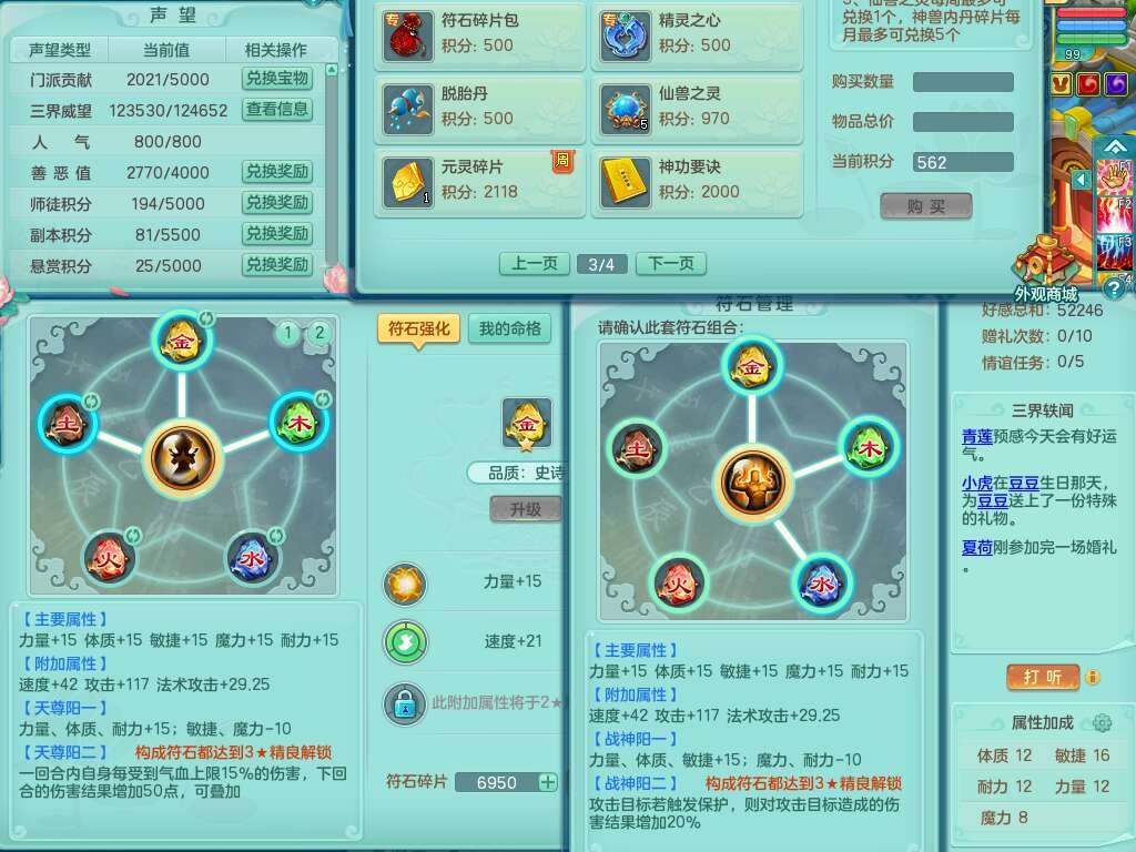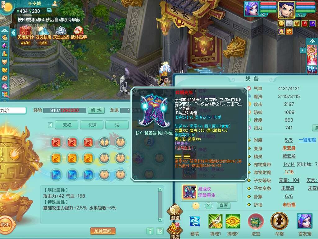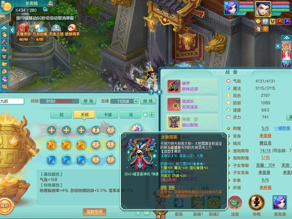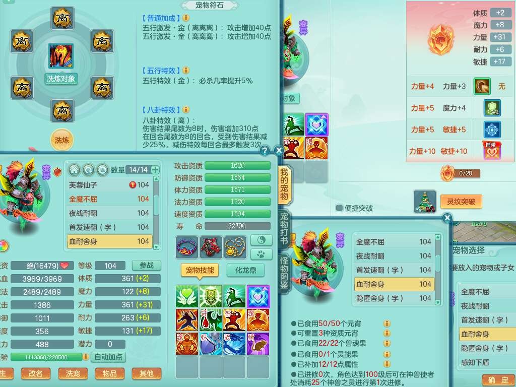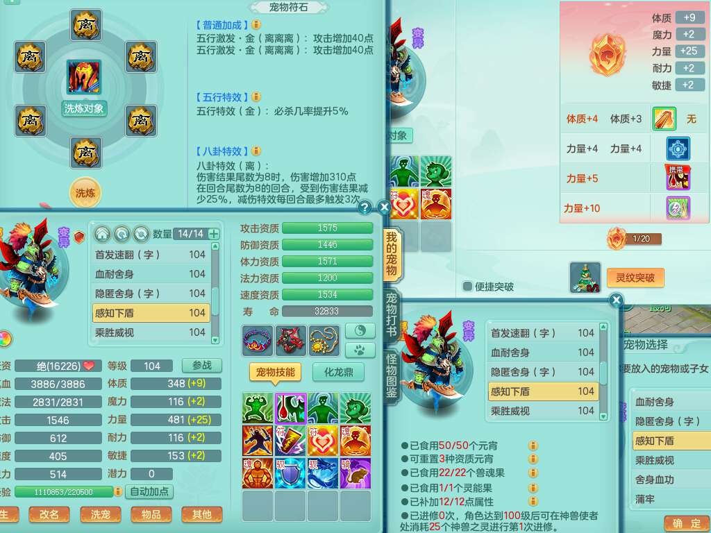 S22167今年勇99男力天宫,1龙无内,2内胆神,1破镜,【11只觉醒,已潜龙】,破甲群体迟滞头,556易成长破血单加33武器,崩山单加衣服,神佑单加35链子,愤怒易腰带,易成长慈航单加32鞋子,160易成长单加链子,崩山单加32鞋子,2.5基础鼎,7个纯六字,5个5字,20只满果子,背包49神兽内丹碎片,宠排在榜,双人坐骑,月卡还有85天。